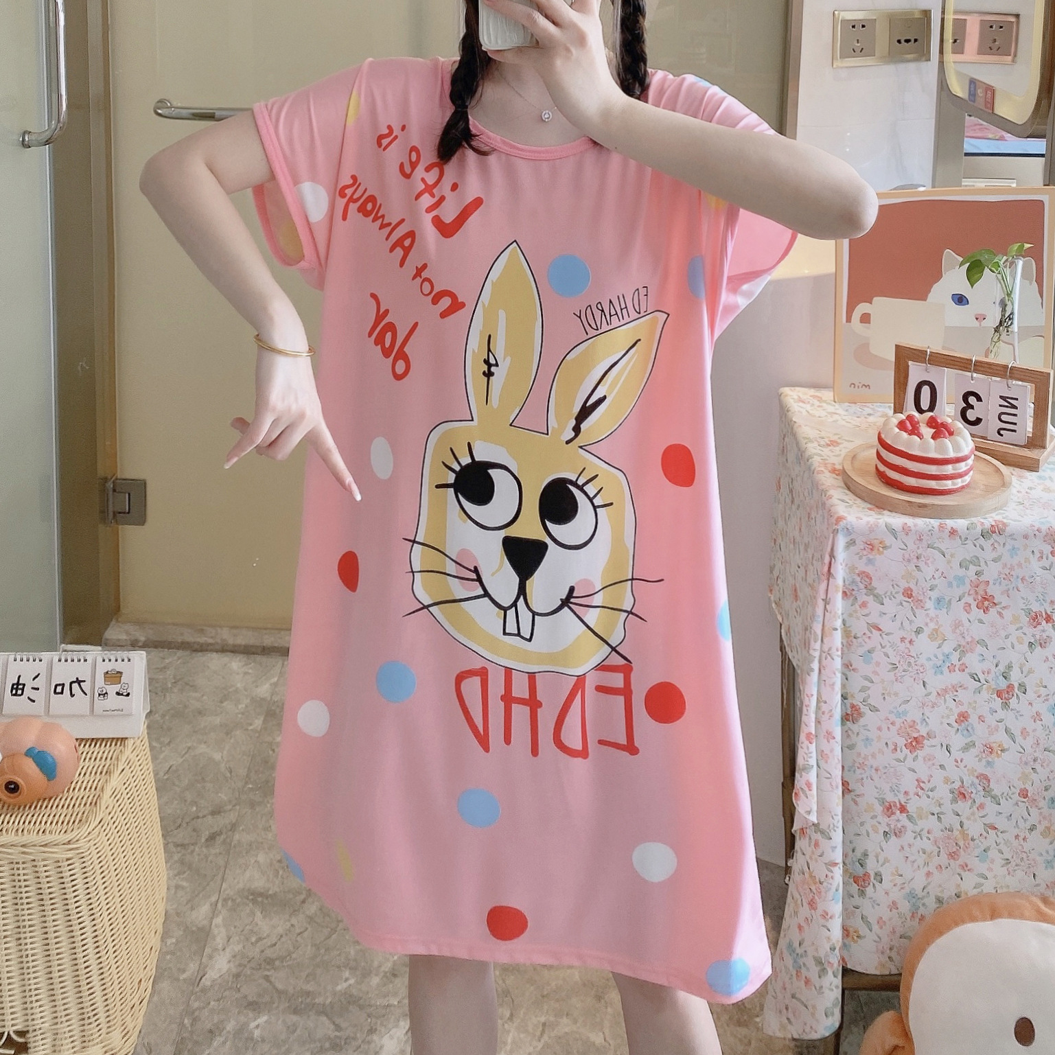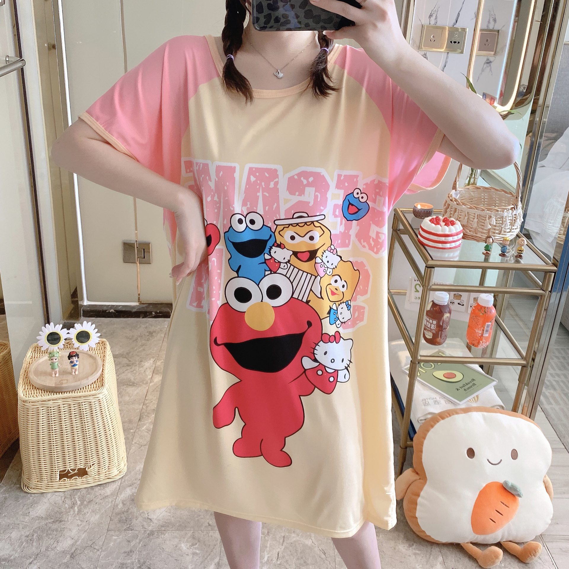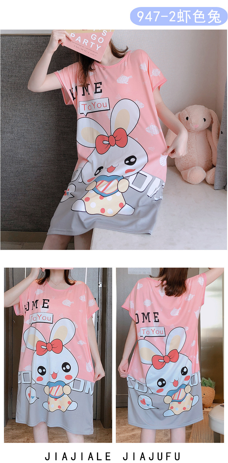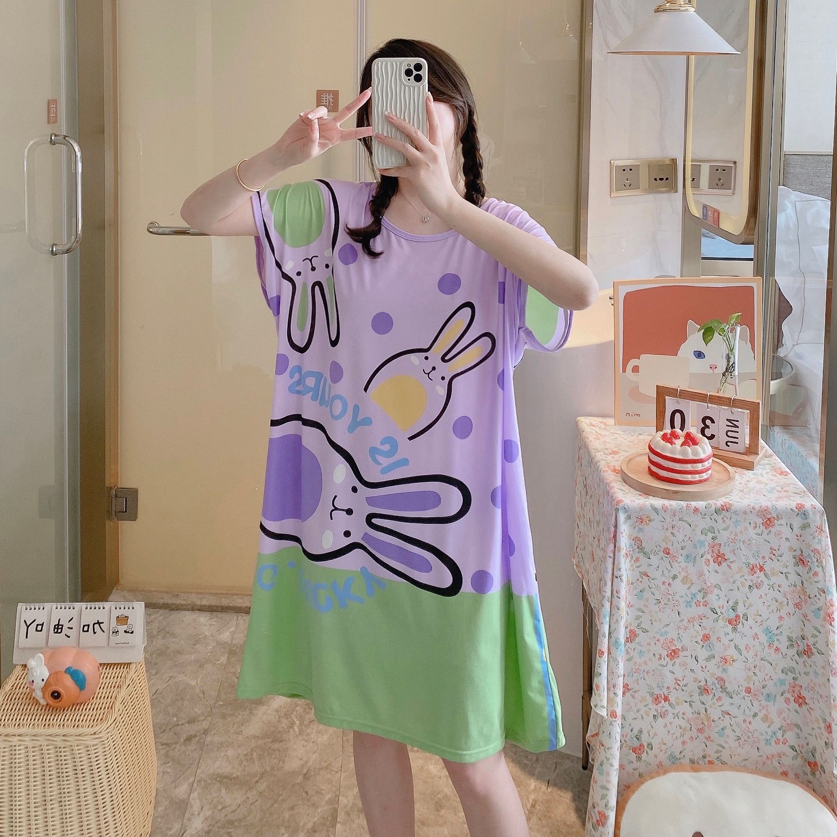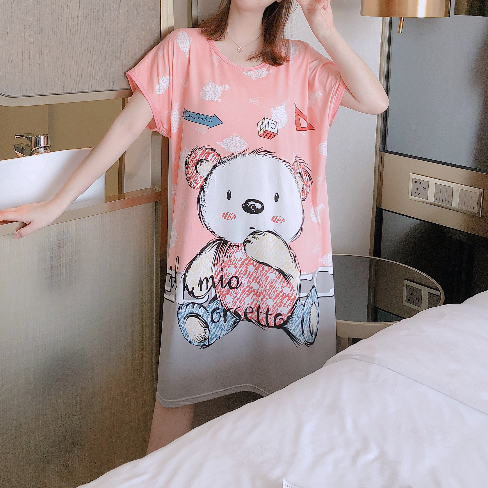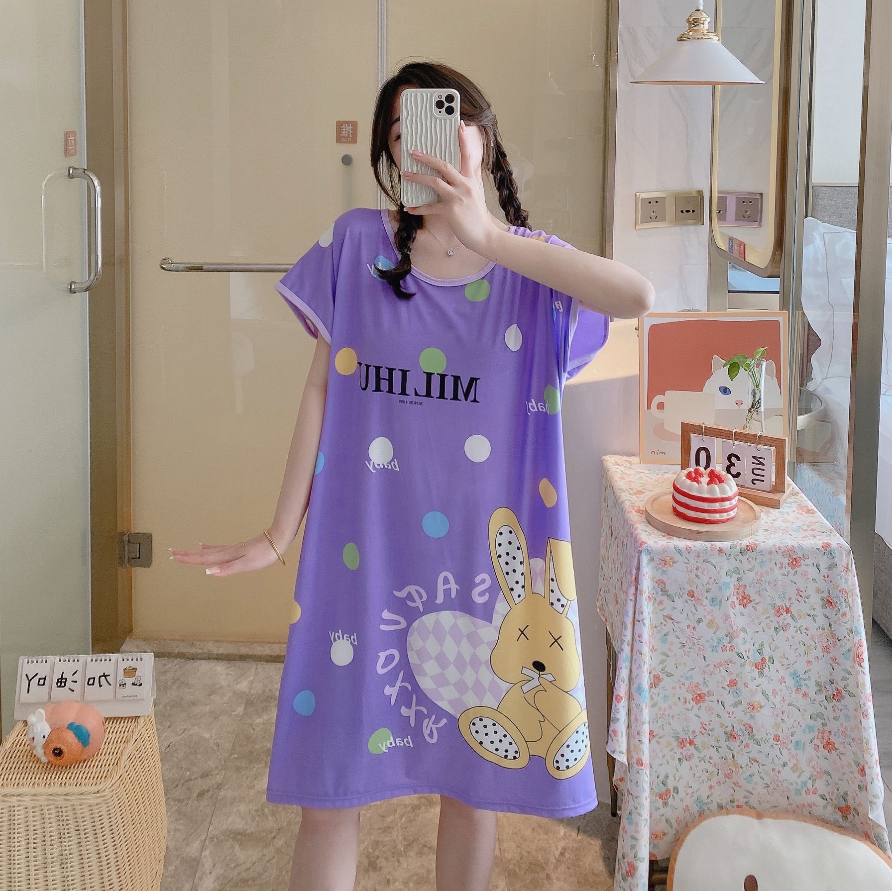 실제 비디오 동남아 싼 느슨한 증가 180 진 두꺼운 여름 짧은 소매 여성 잠옷 홈 착용 잠옷스토어 가기