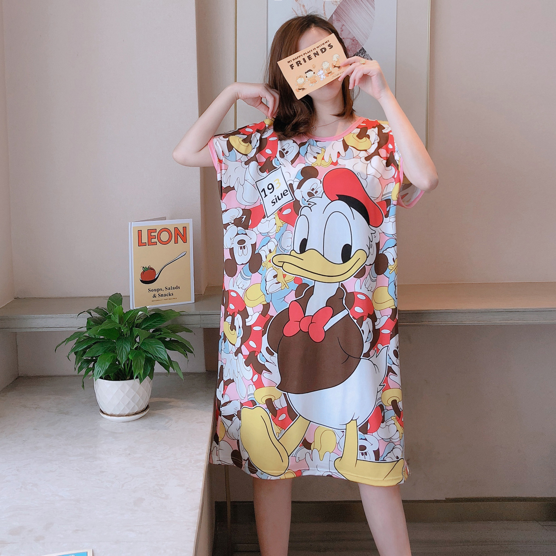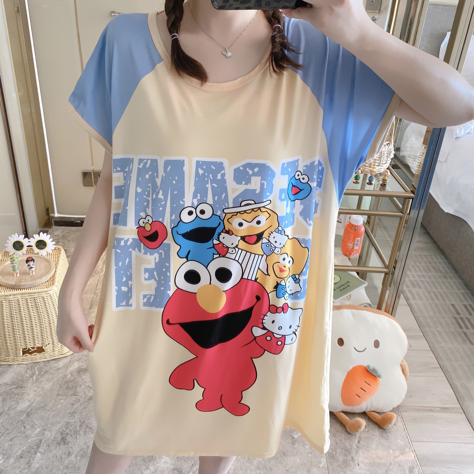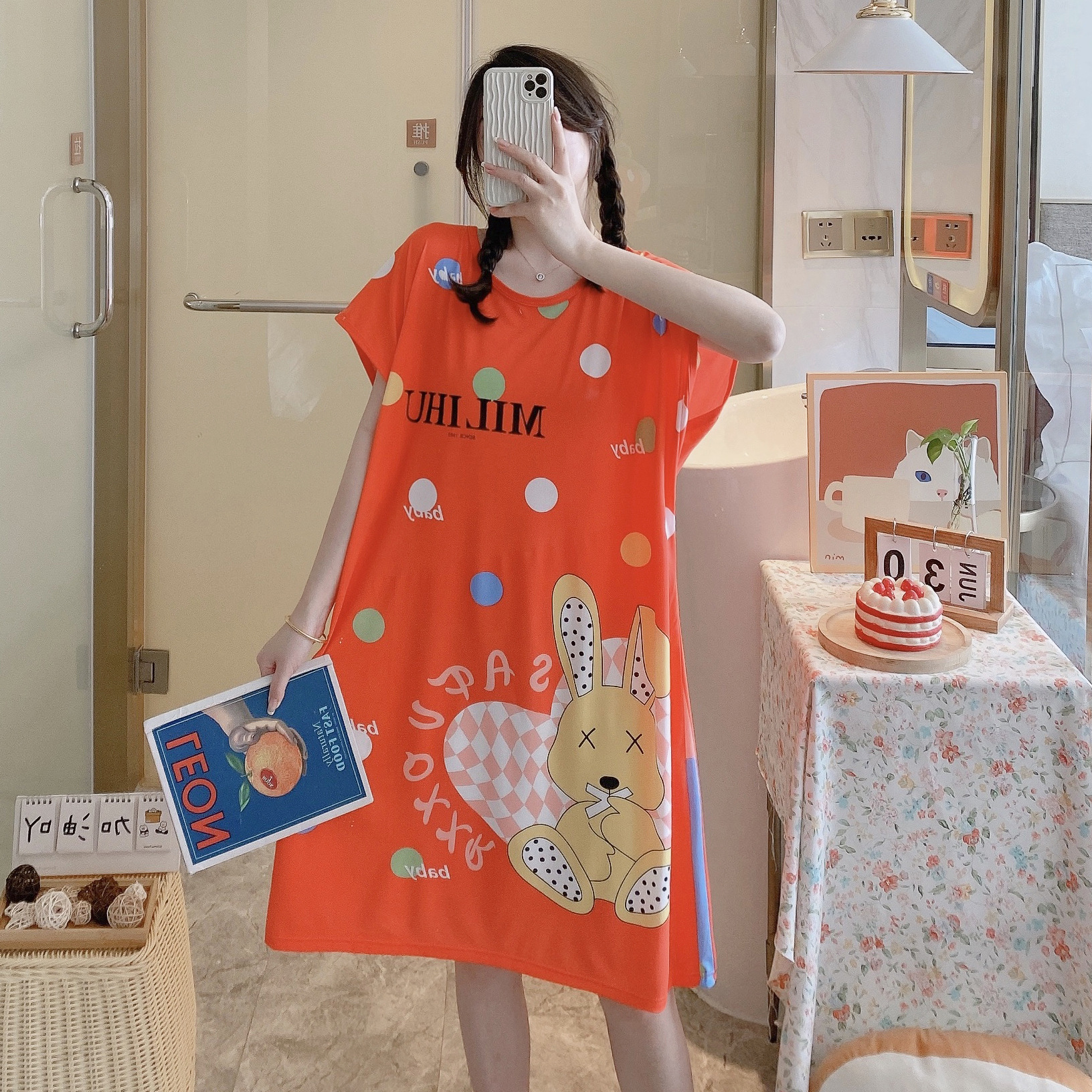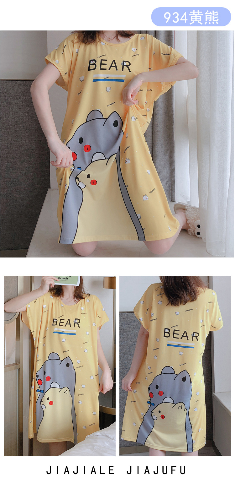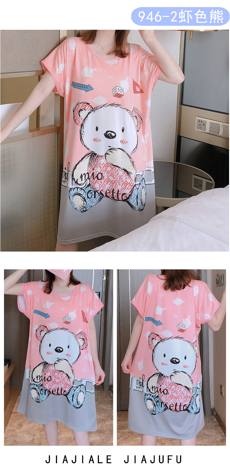 실제 비디오 동남아 싼 느슨한 증가 180 진 두꺼운 여름 짧은 소매 여성 잠옷 홈 착용 잠옷스토어 가기