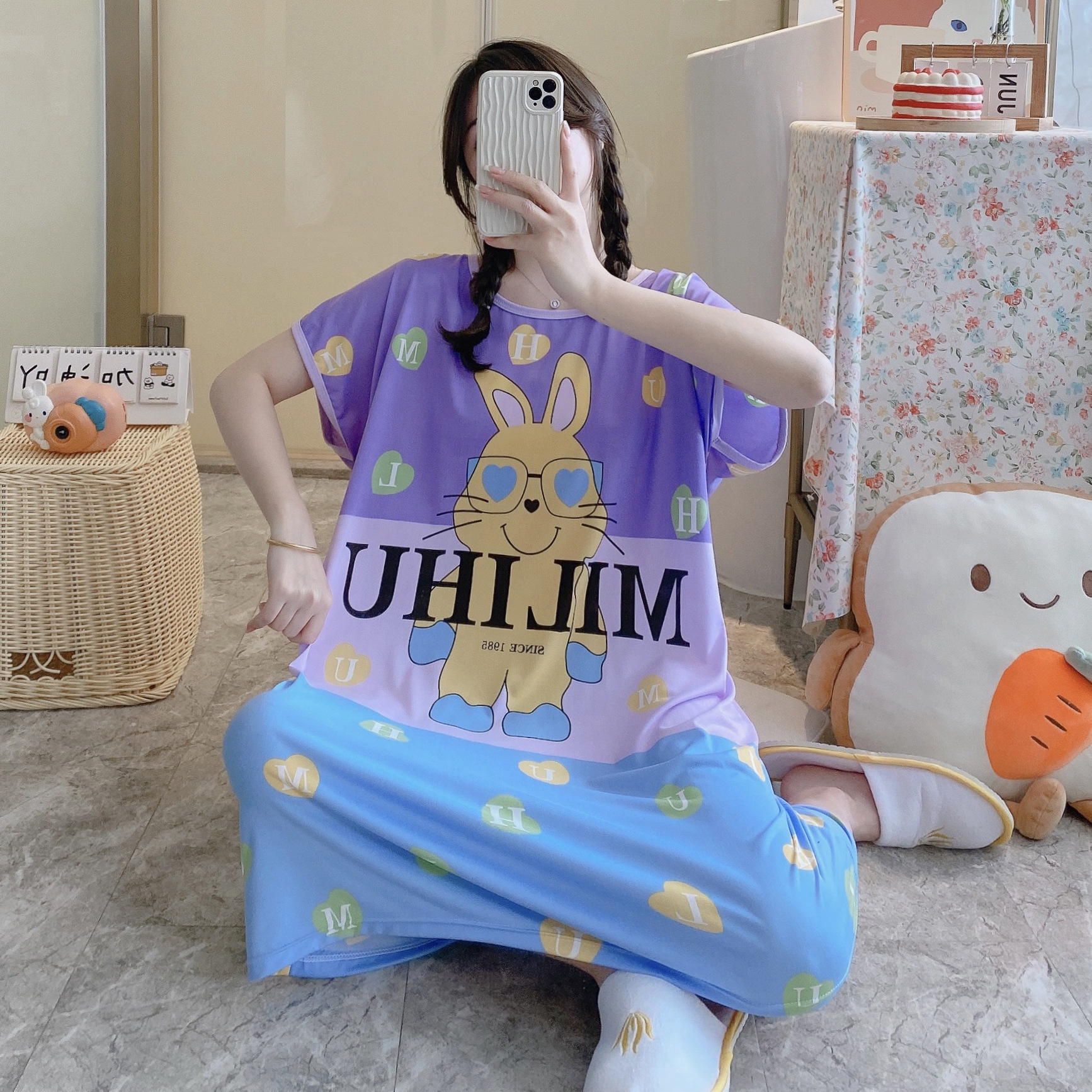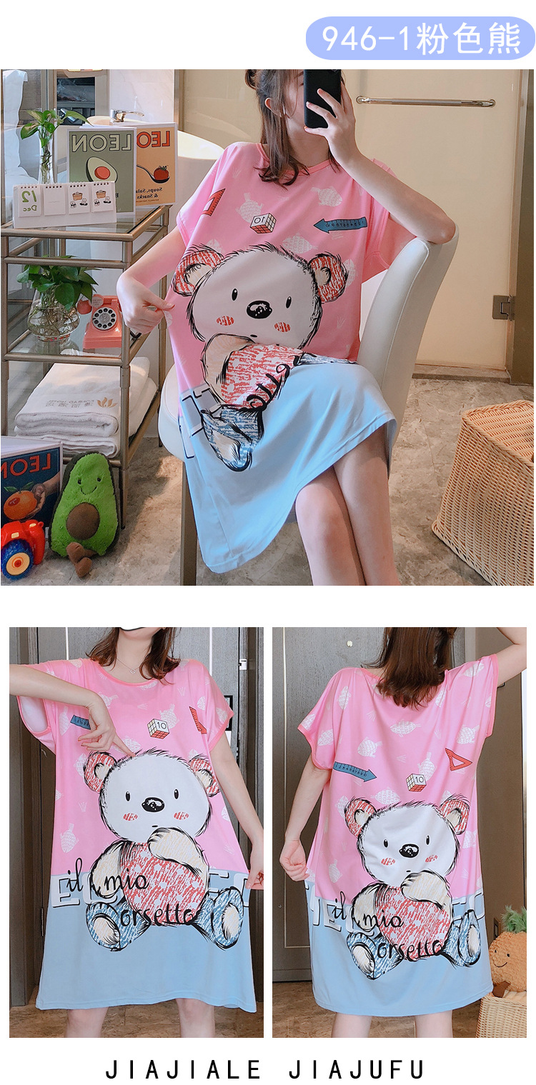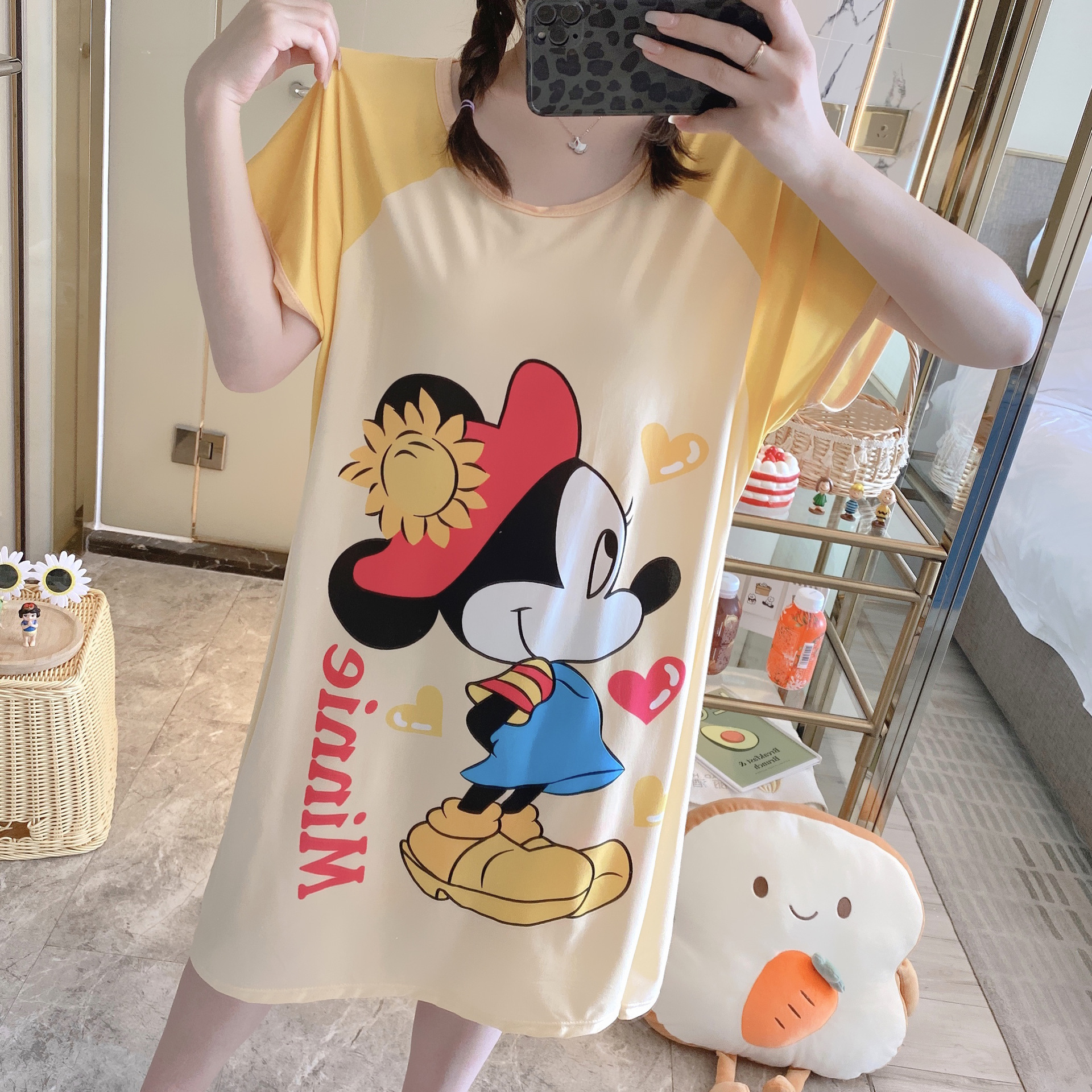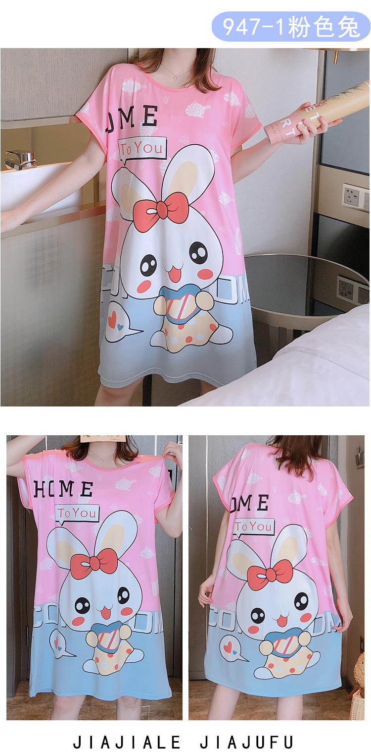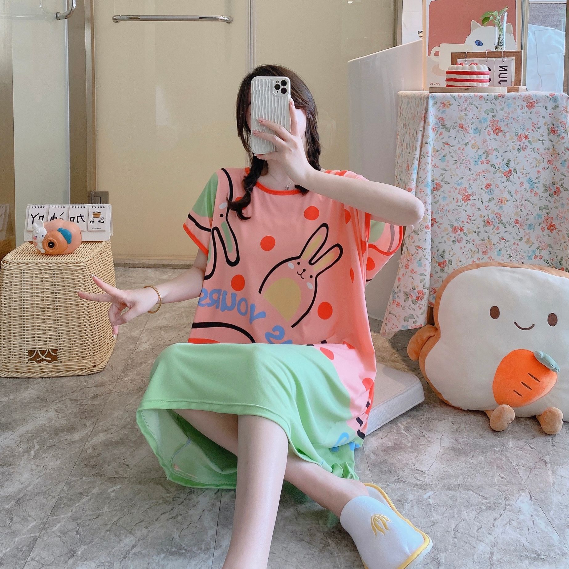 실제 비디오 동남아 싼 느슨한 증가 180 진 두꺼운 여름 짧은 소매 여성 잠옷 홈 착용 잠옷스토어 가기