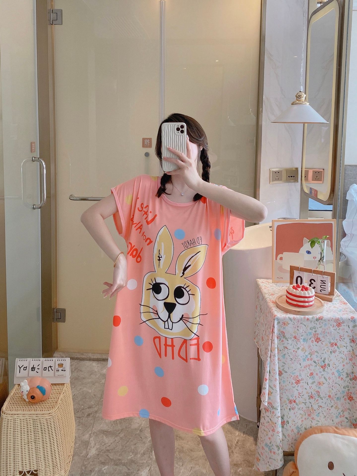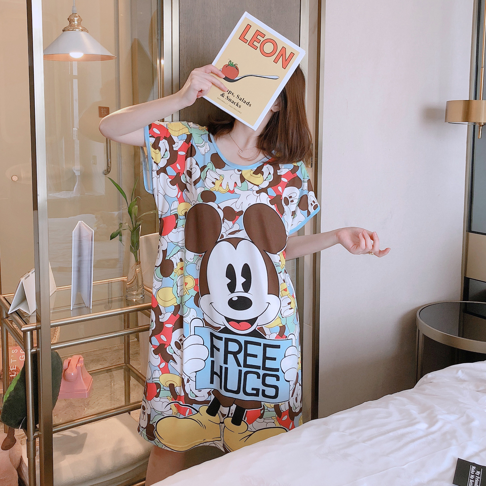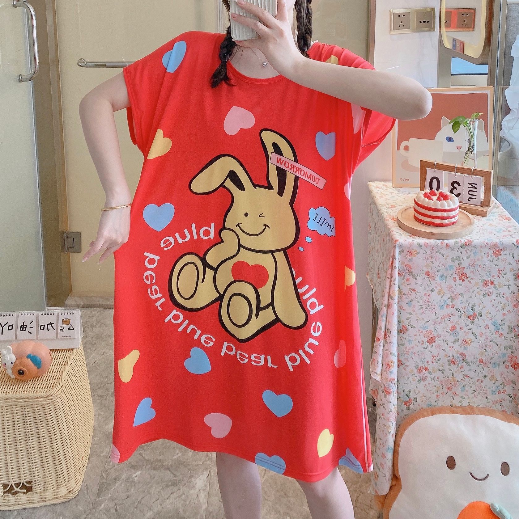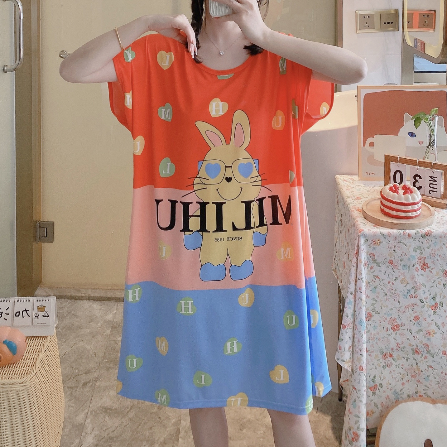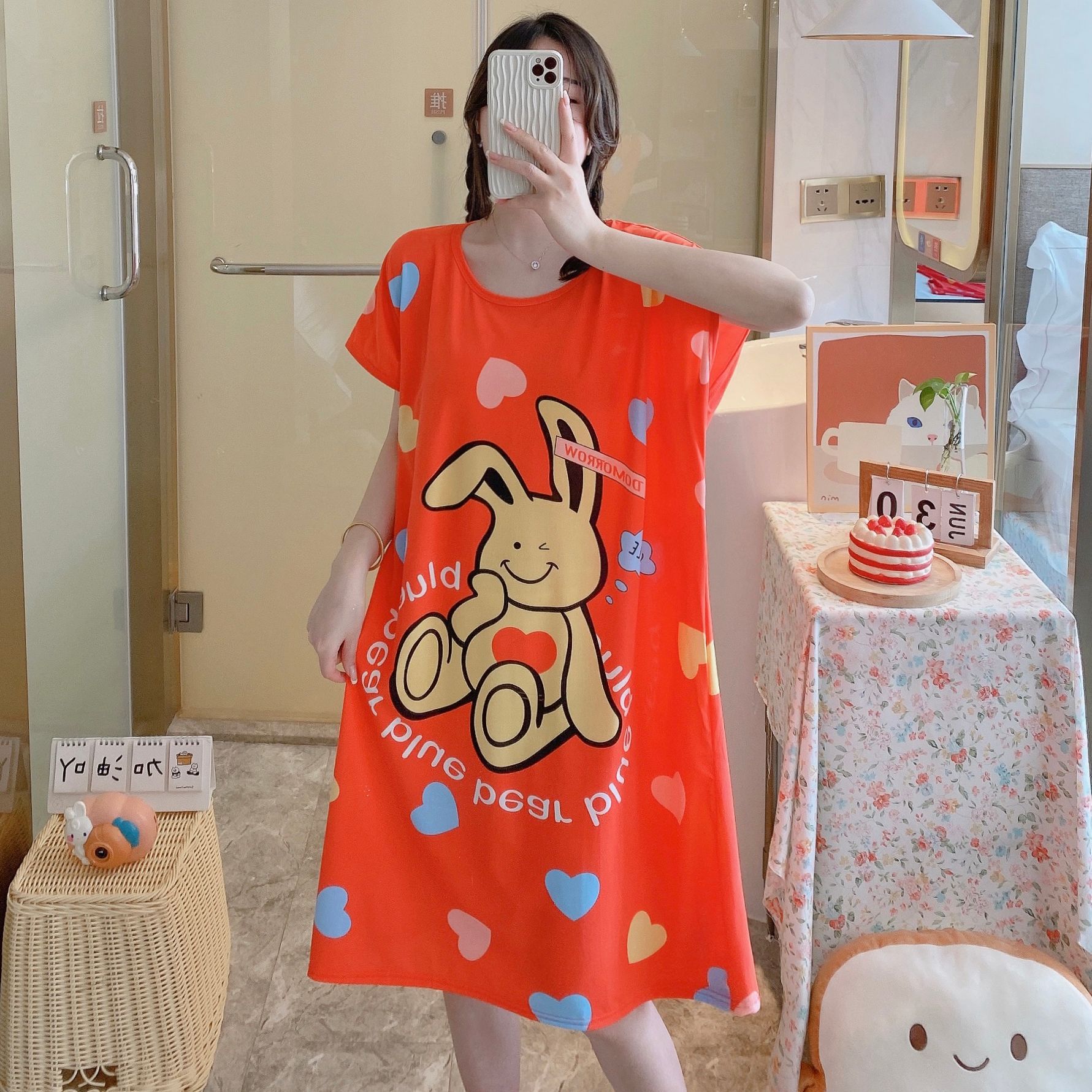 실제 비디오 동남아 싼 느슨한 증가 180 진 두꺼운 여름 짧은 소매 여성 잠옷 홈 착용 잠옷스토어 가기
