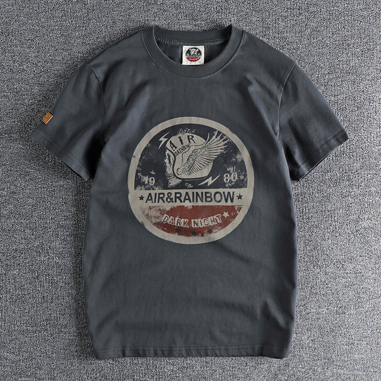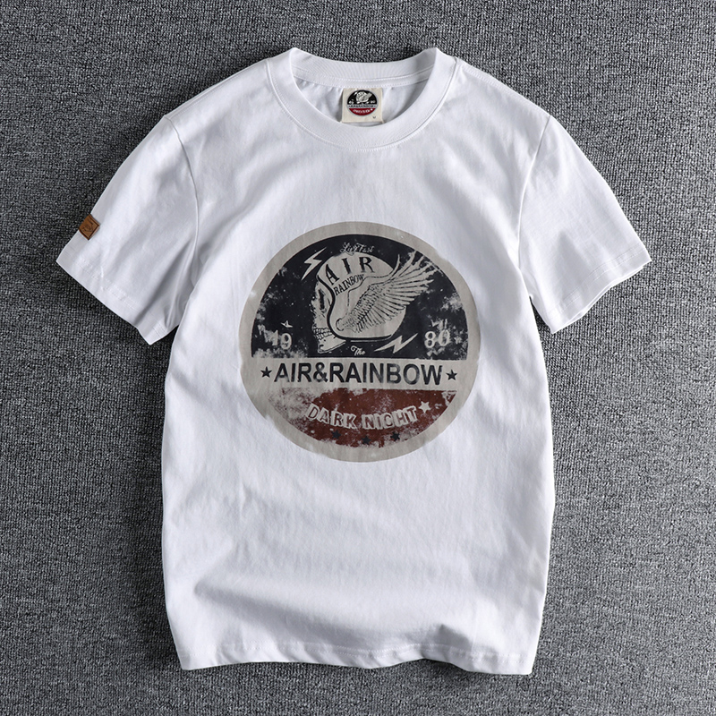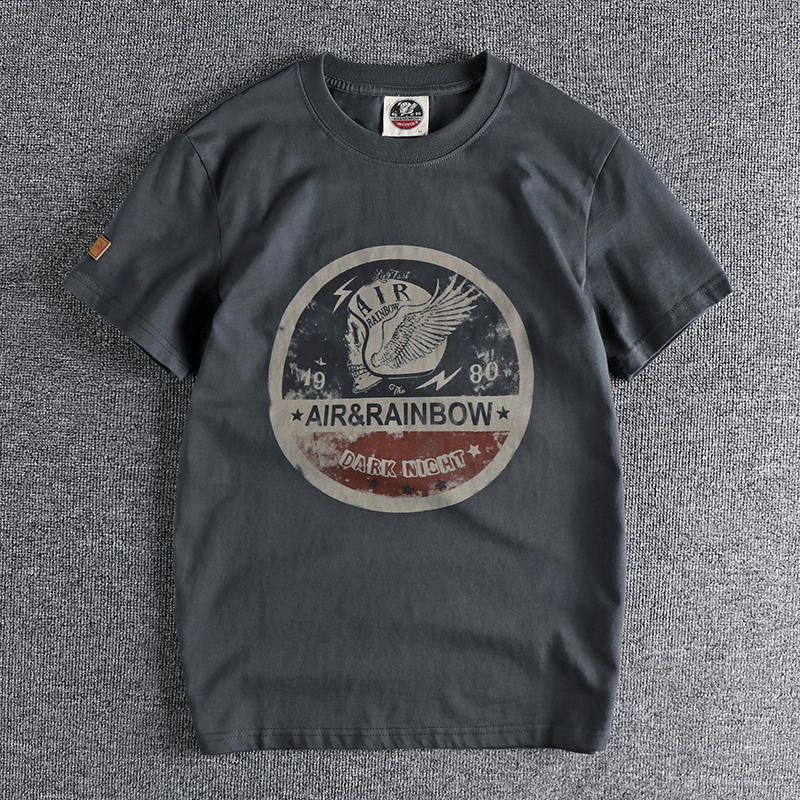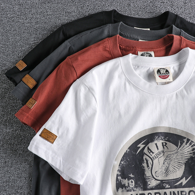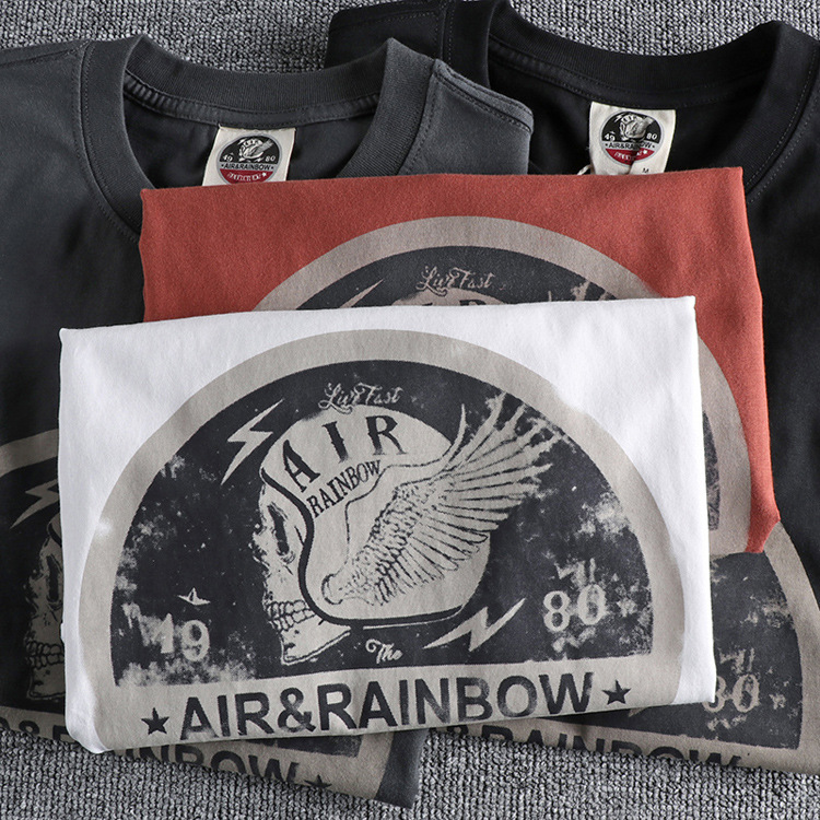 220g 오데일 면 반팔 티셔츠 남성용 아메리칸 레트로 프린트 바이커 해골 남성 티셔츠 여름 반팔 티셔츠스토어 가기