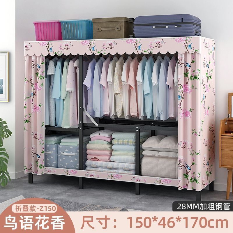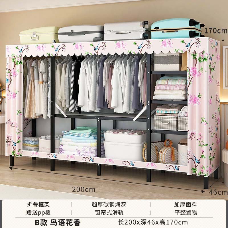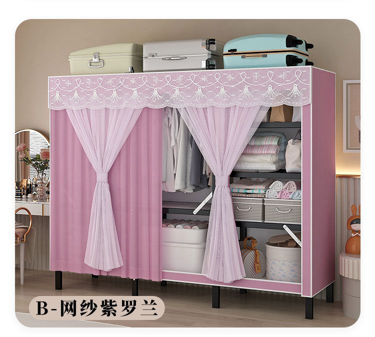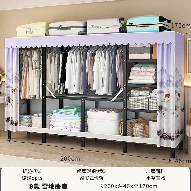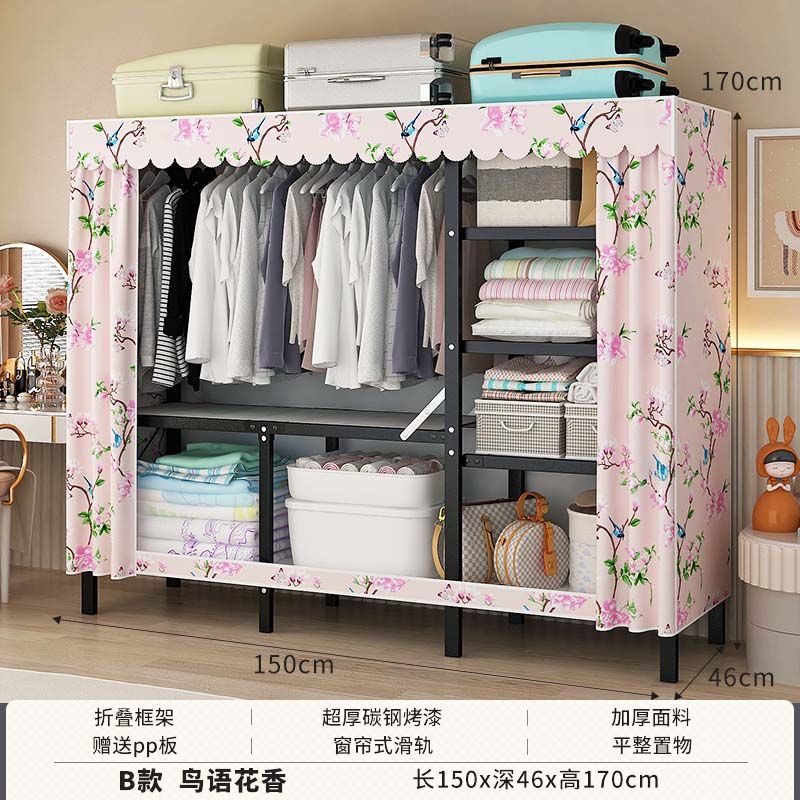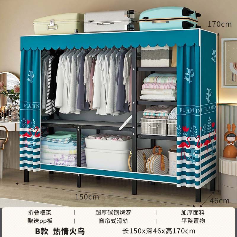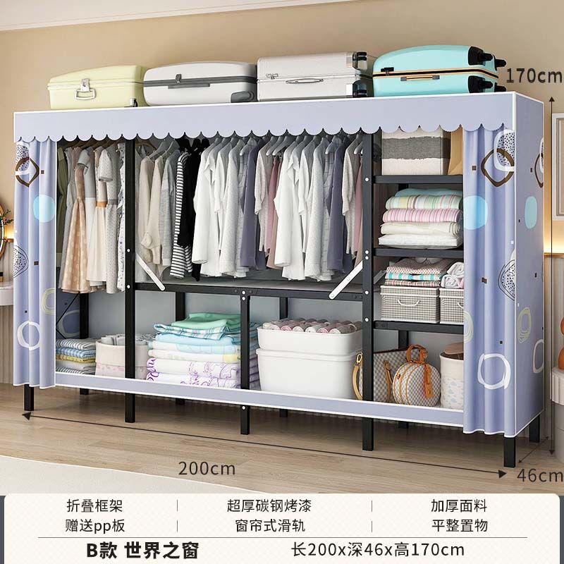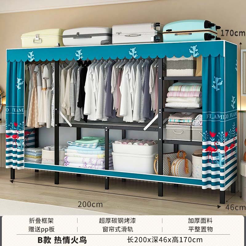 옷장 설치 무료 접이식 간단한 옷장 가정용 침실 임대 룸 강화 강철 프레임 구조 보관 옷장