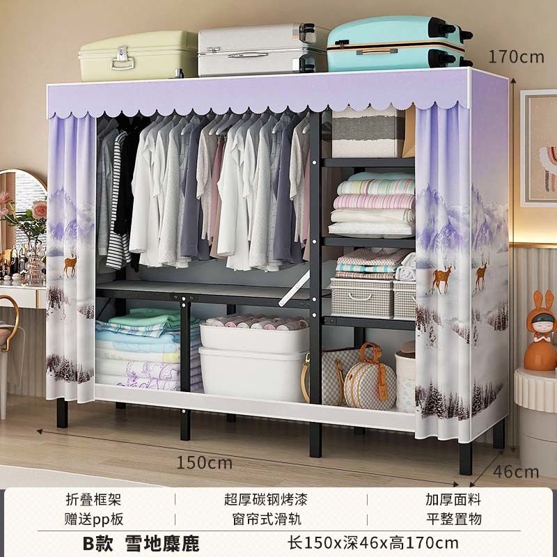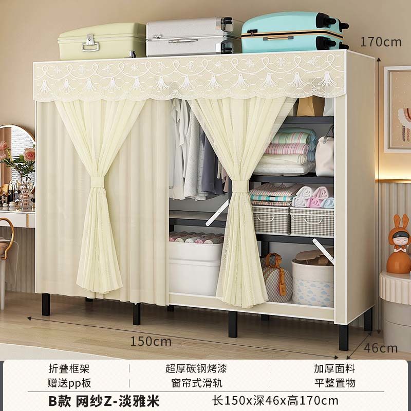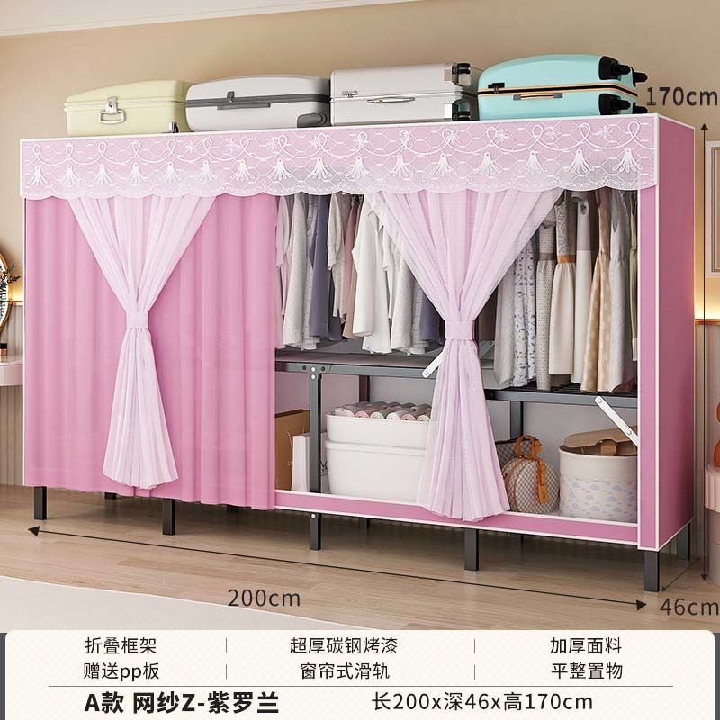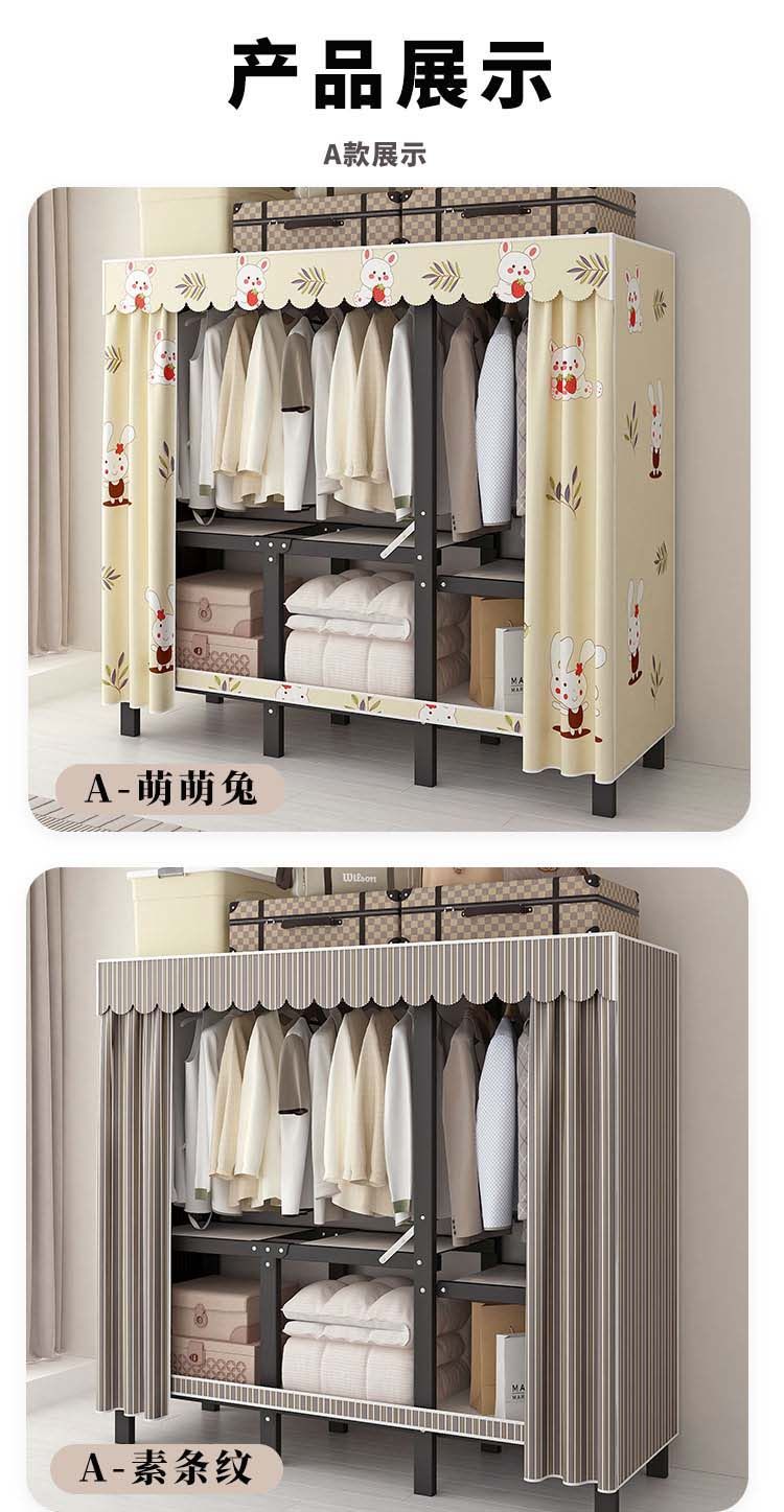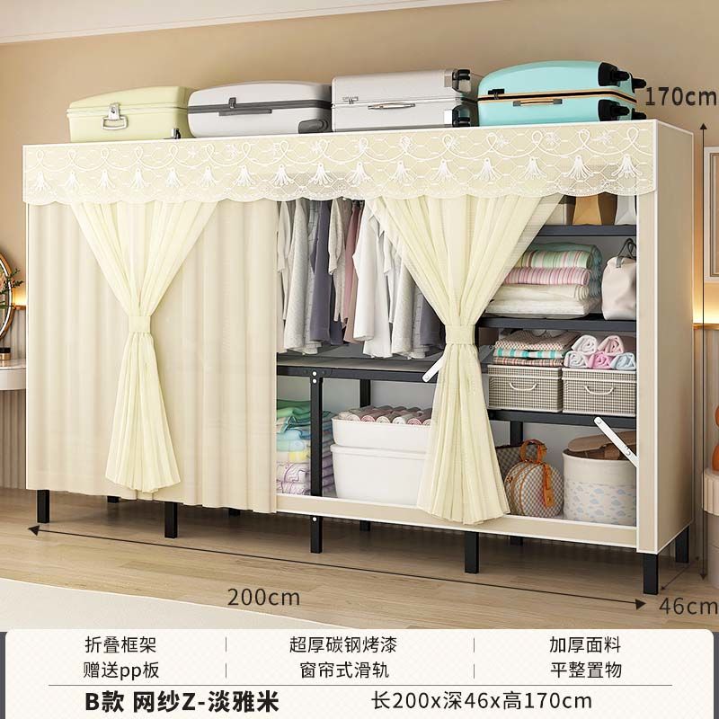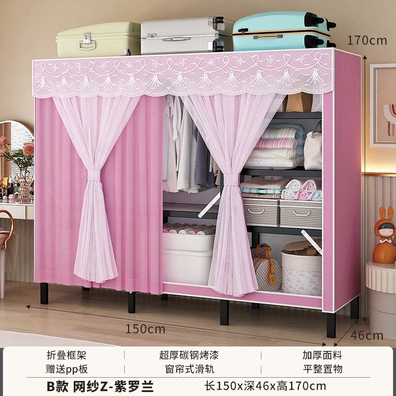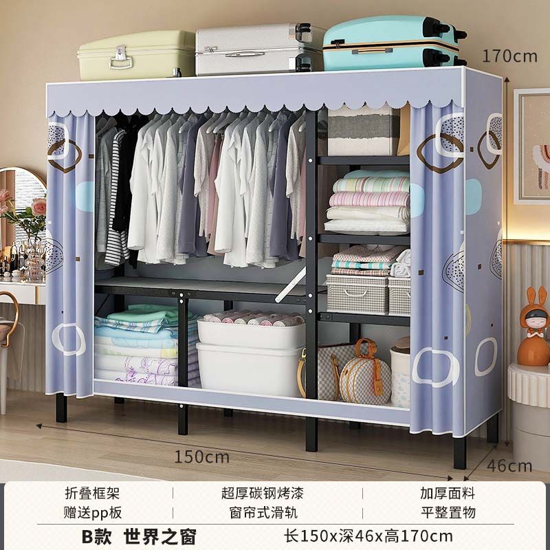 옷장 설치 무료 접이식 간단한 옷장 가정용 침실 임대 룸 강화 강철 프레임 구조 보관 옷장