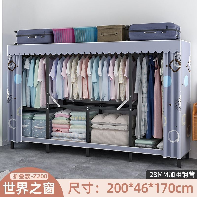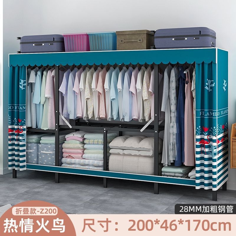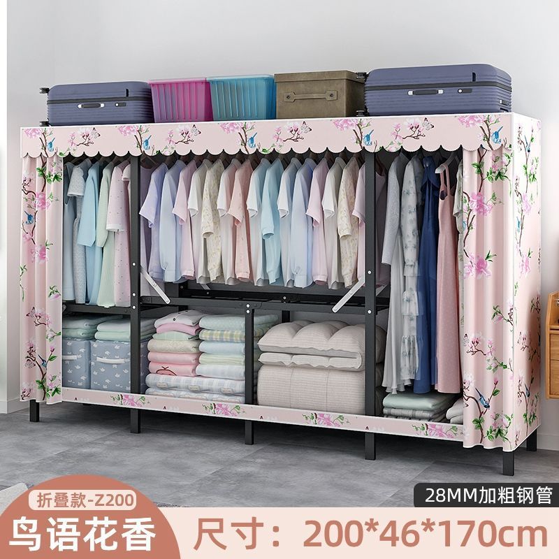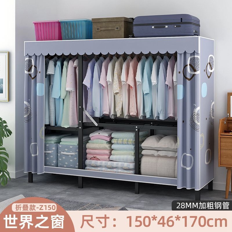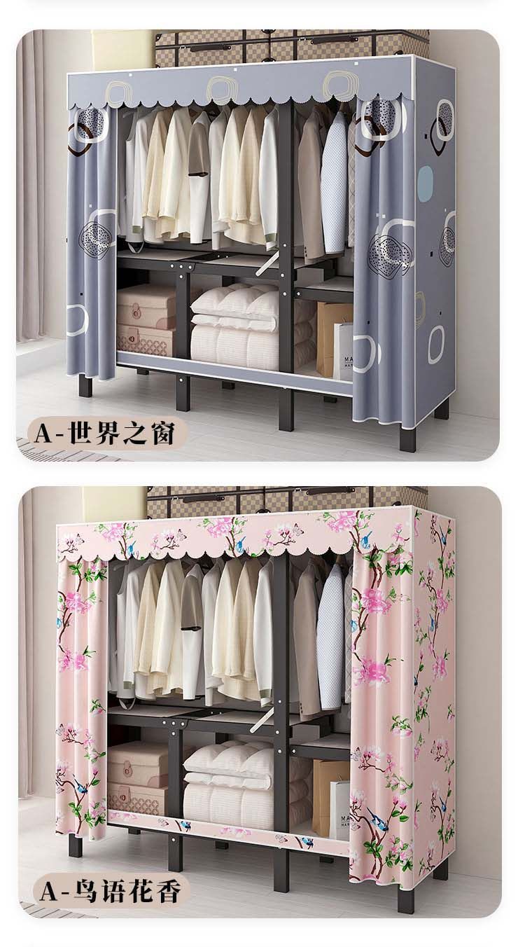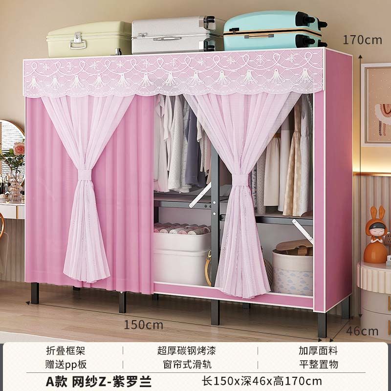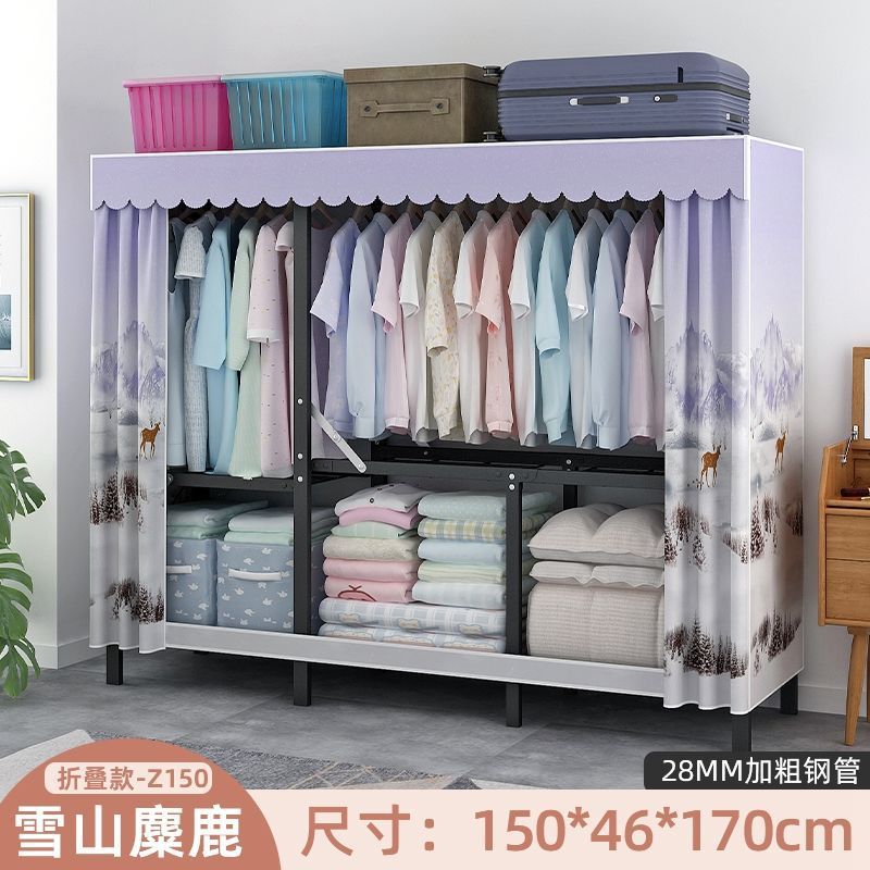옷장 설치 무료 접이식 간단한 옷장 가정용 침실 임대 룸 강화 강철 프레임 구조 보관 옷장