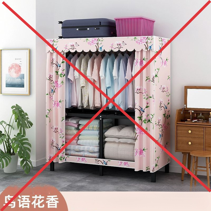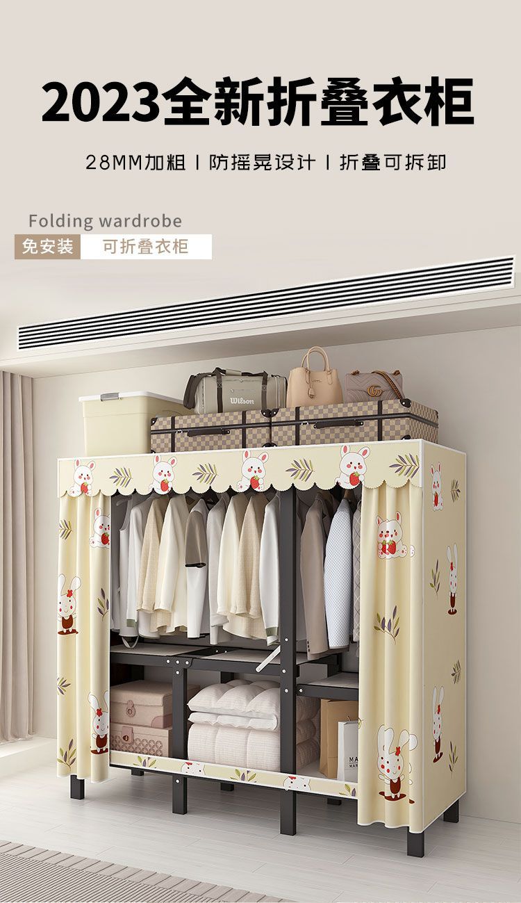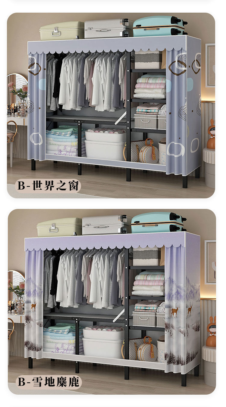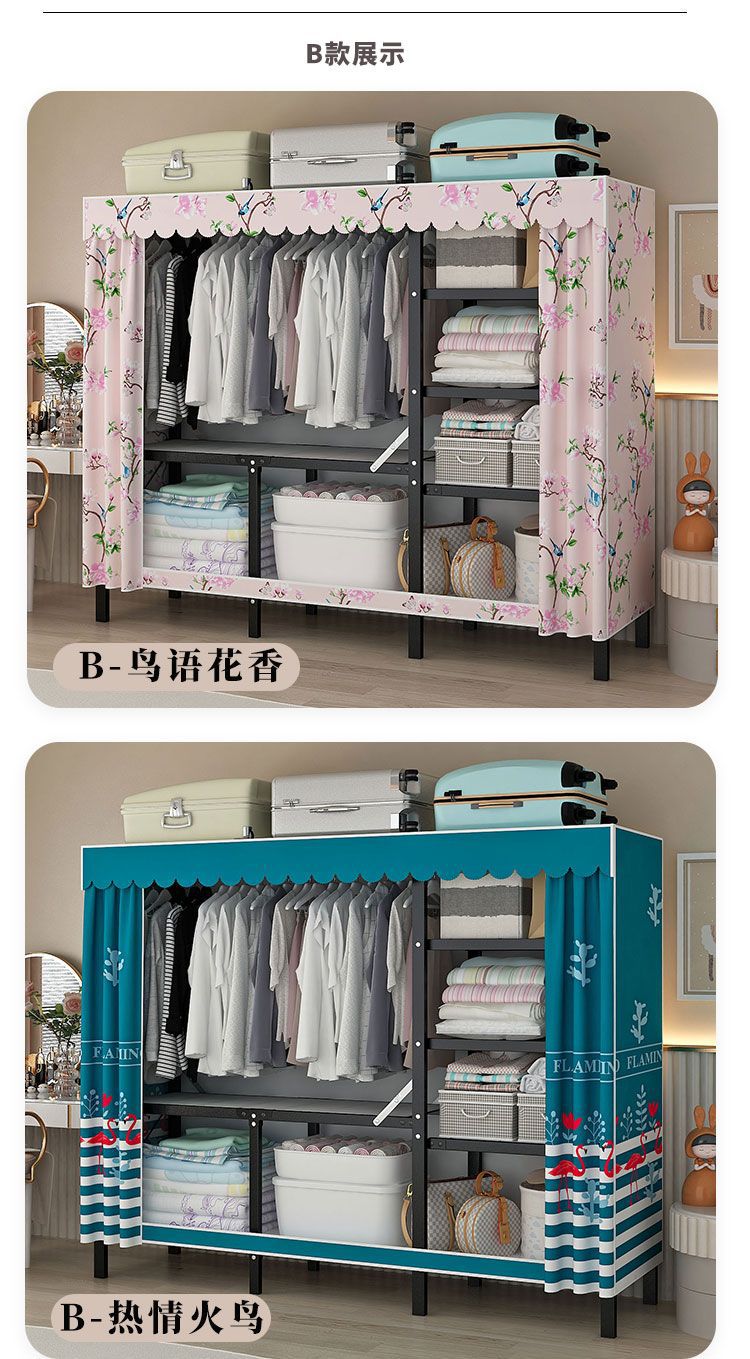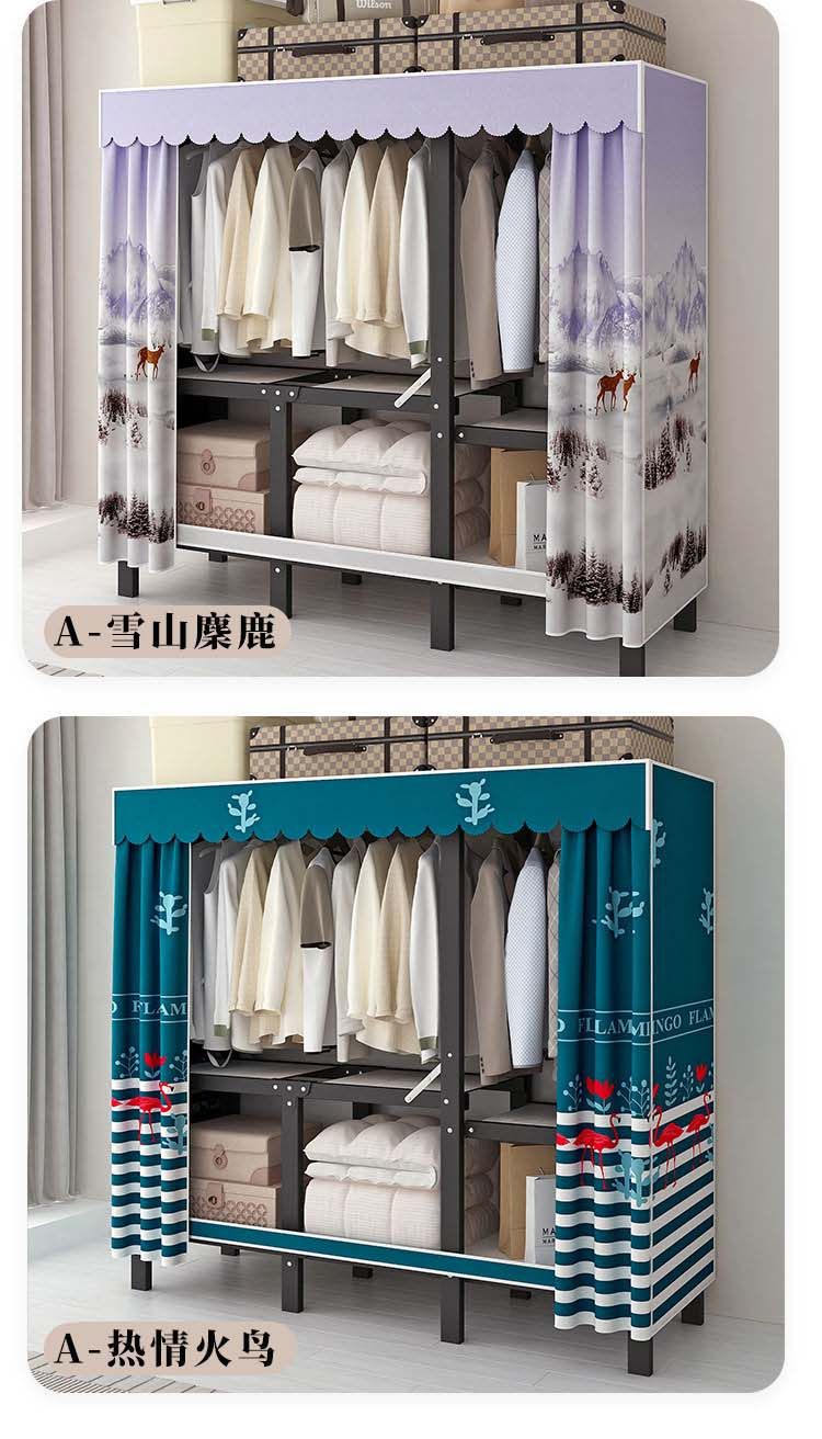 옷장 설치 무료 접이식 간단한 옷장 가정용 침실 임대 룸 강화 강철 프레임 구조 보관 옷장