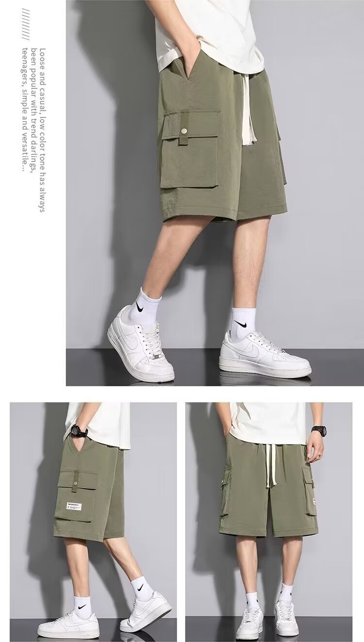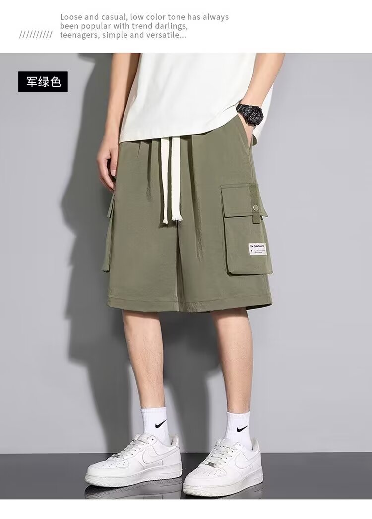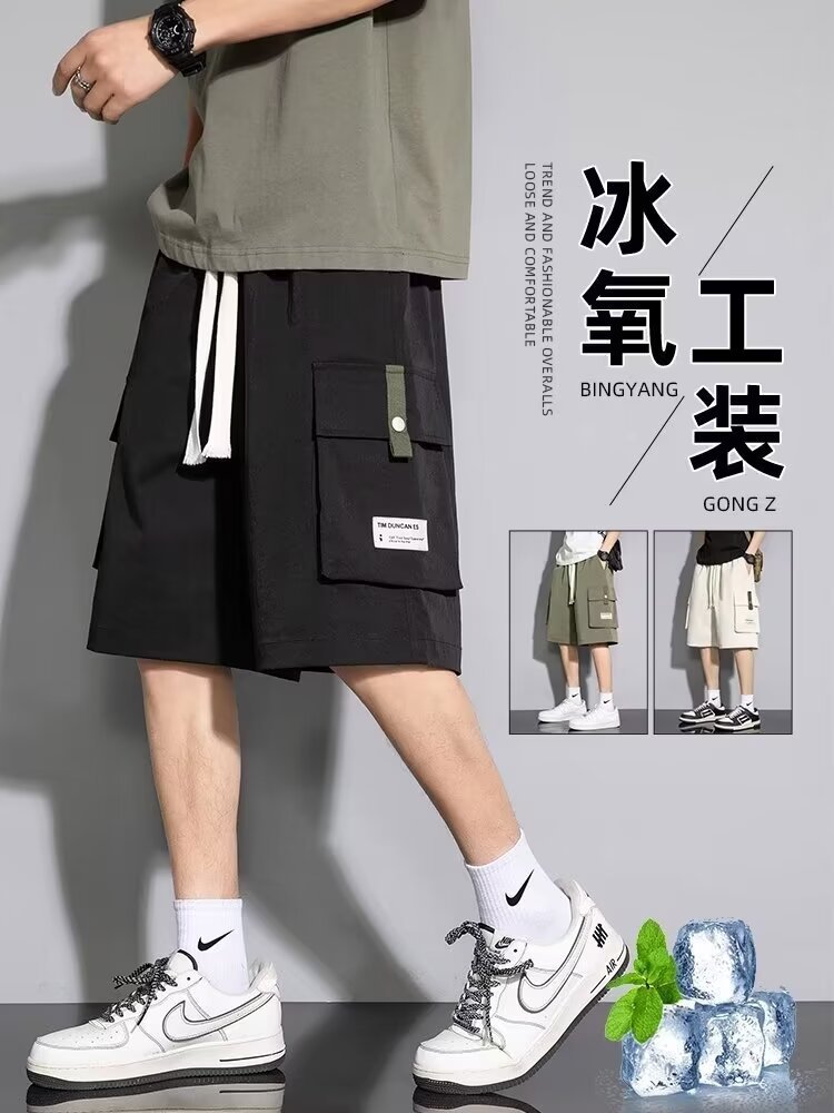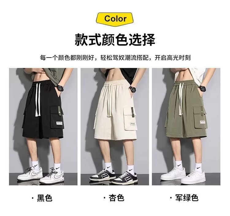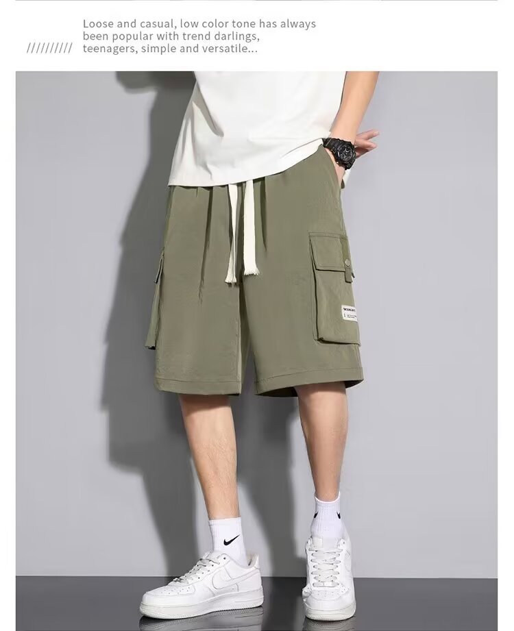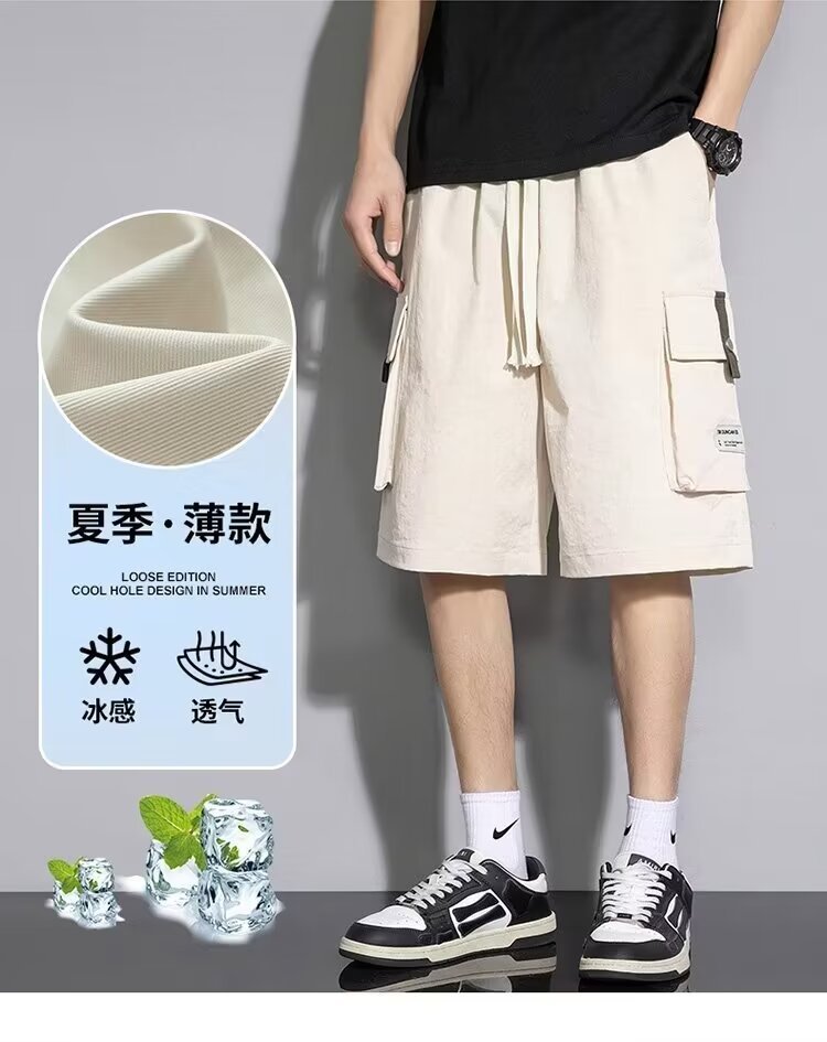솔리드 컬러 크록 반바지 남성 여름 아이스 실크 얇은 트렌디 브랜드 느슨한 대형 바지 여름 미국 스타일 남성 바지스토어 가기