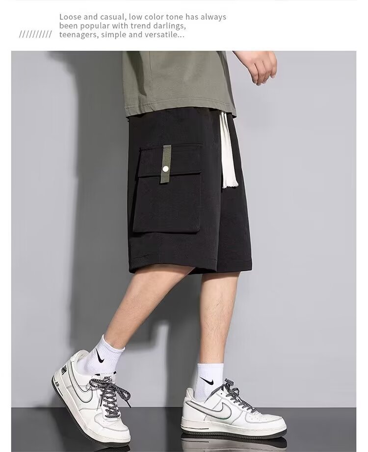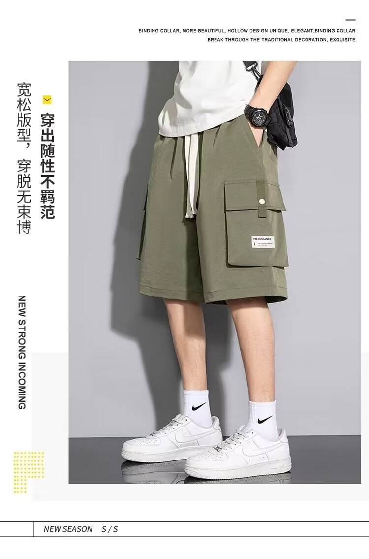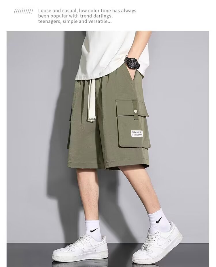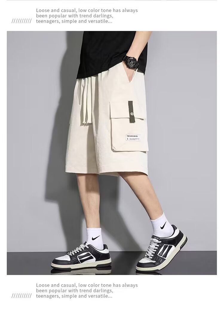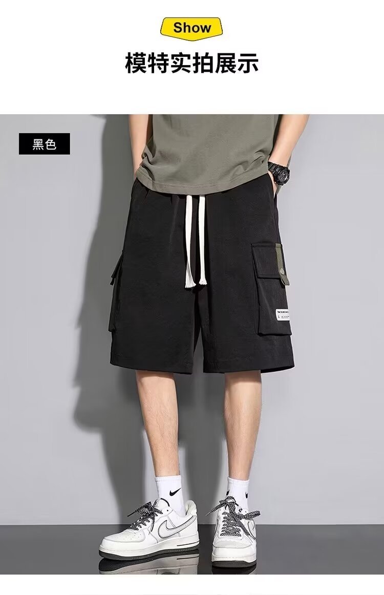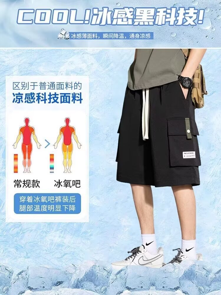 솔리드 컬러 크록 반바지 남성 여름 아이스 실크 얇은 트렌디 브랜드 느슨한 대형 바지 여름 미국 스타일 남성 바지스토어 가기