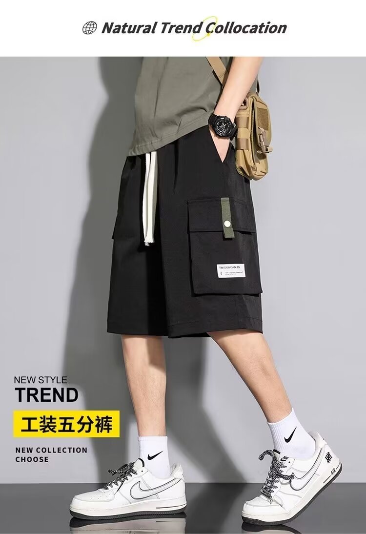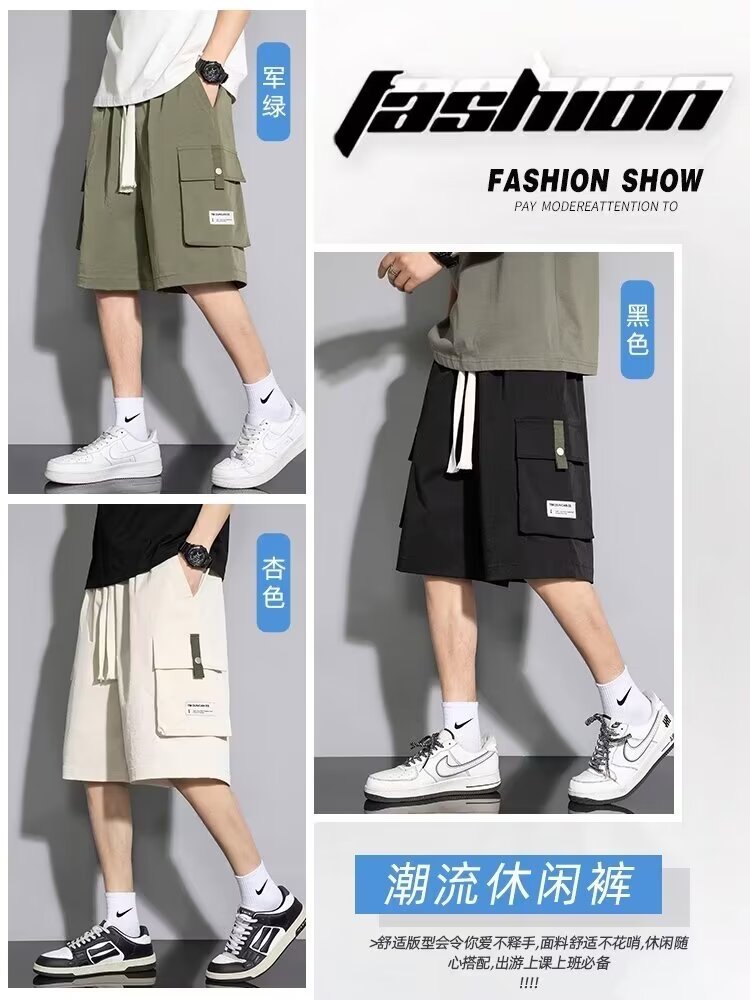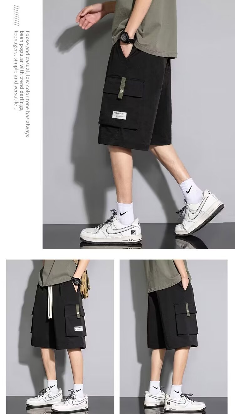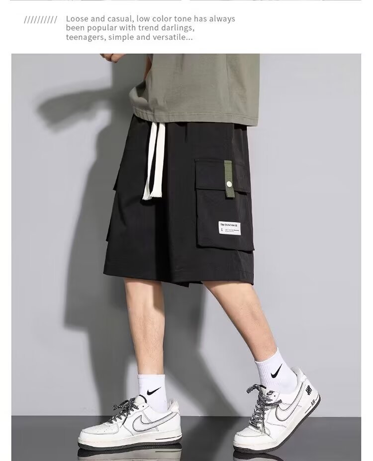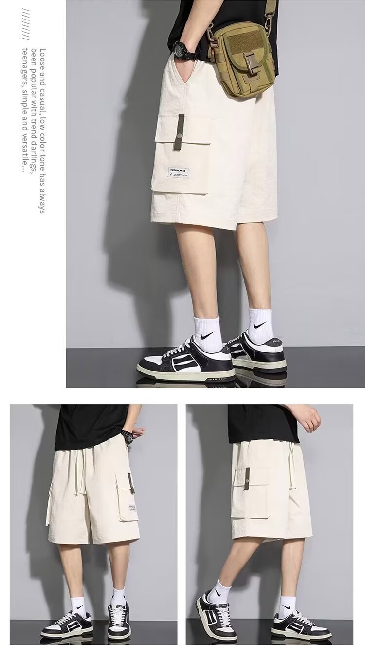 솔리드 컬러 크록 반바지 남성 여름 아이스 실크 얇은 트렌디 브랜드 느슨한 대형 바지 여름 미국 스타일 남성 바지스토어 가기