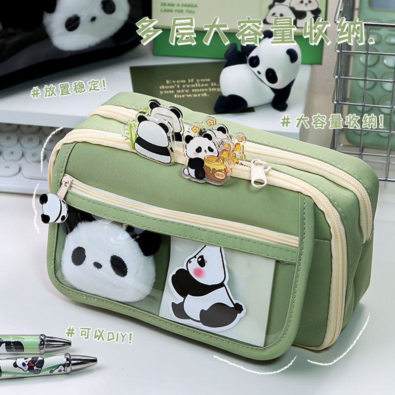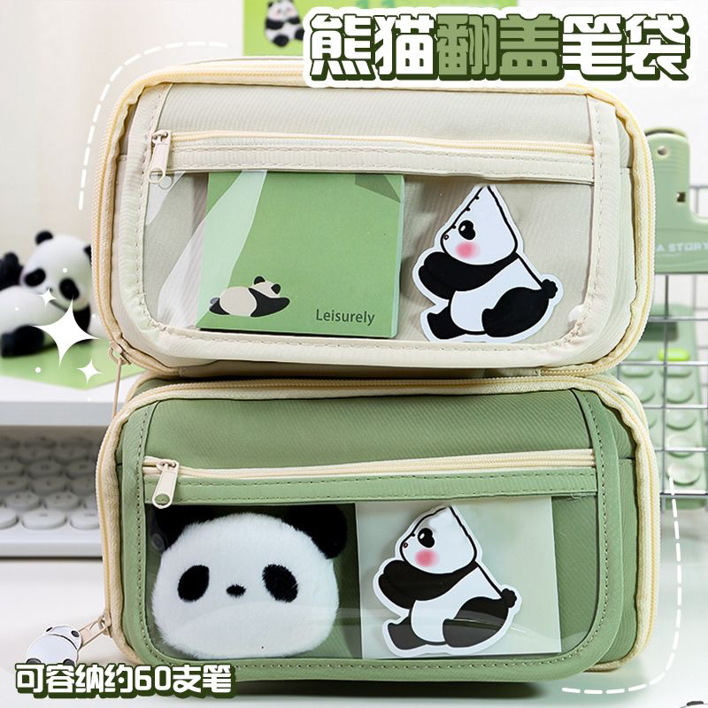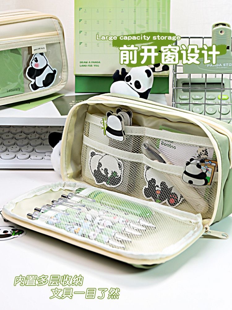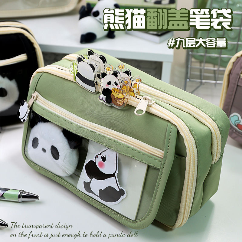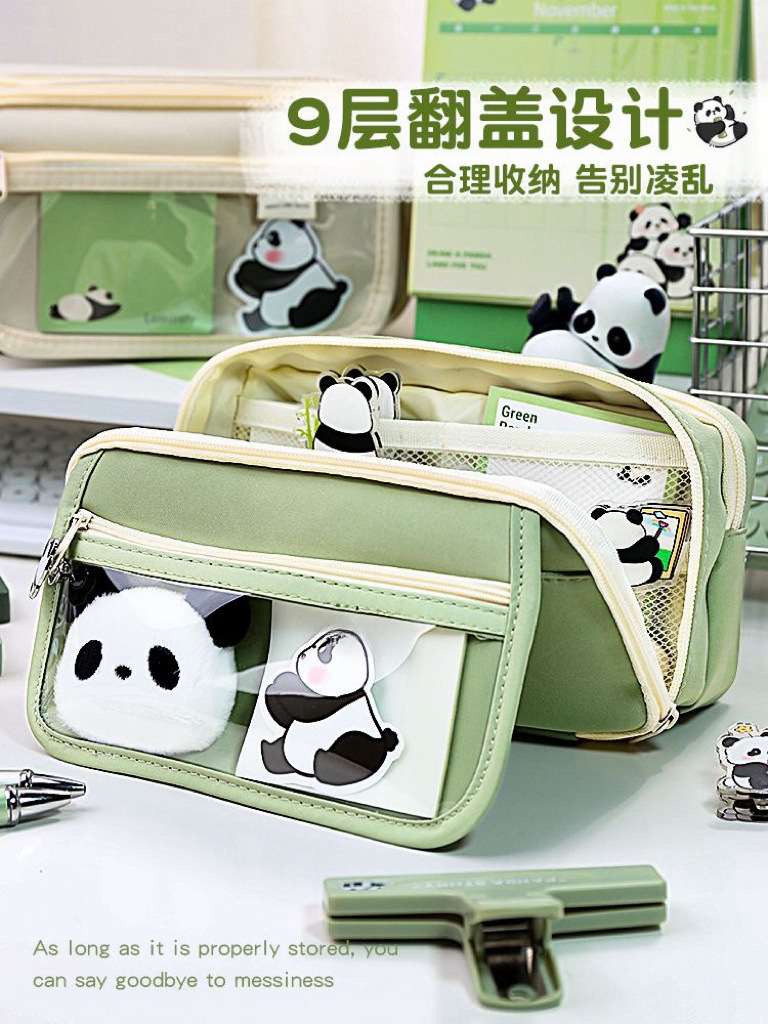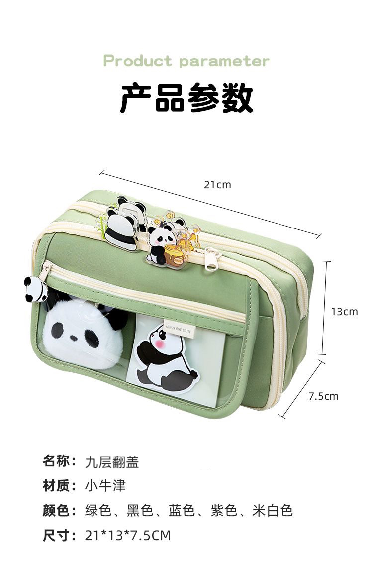 팬더 연필 케이스 대용량 9 층 플립 만화 중학교 및 초등학생을위한 다기능 투명 간단한 문구 연필 케이스스토어 가기