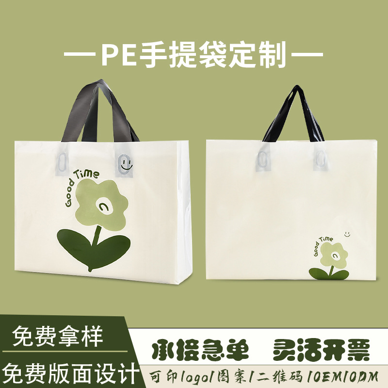 PE 플라스틱 핸드백, 맞춤형 의류 매장 쇼핑백, 선물 가방, 여성복 및 화장품 핸드백, 로고 인쇄 가능