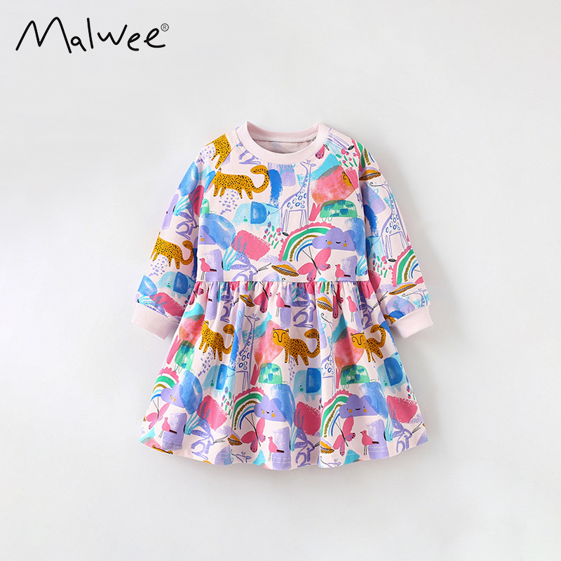 말위 소녀 공주 원피스 가을 새로운 유럽과 미국 어린이 캐주얼 소녀 둥근 목 긴 소매 바닥 치마스토어 가기