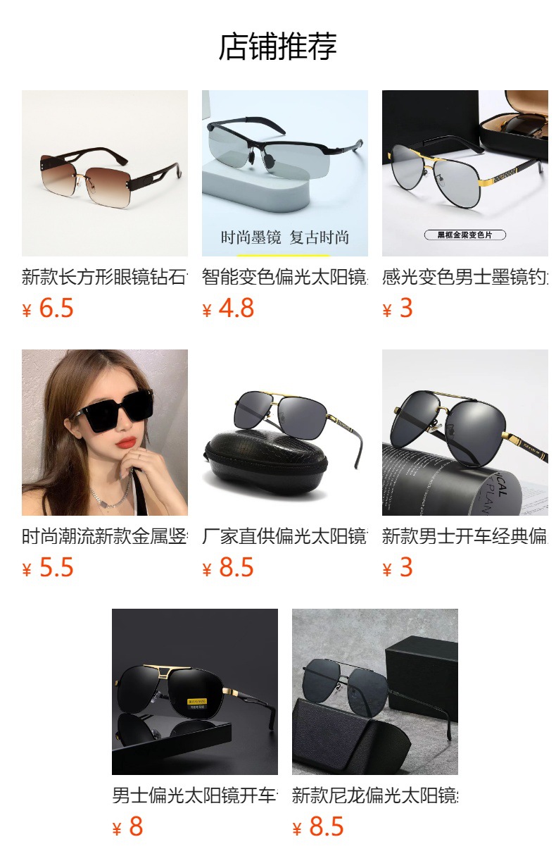 새로운 스타일의 프레임리스 트렌디 한 선글라스 남성 운전자 낚시 선글라스 안티 자외선 안경 여성 운전스토어 가기
