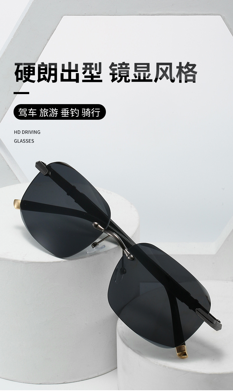 새로운 스타일의 프레임리스 트렌디 한 선글라스 남성 운전자 낚시 선글라스 안티 자외선 안경 여성 운전