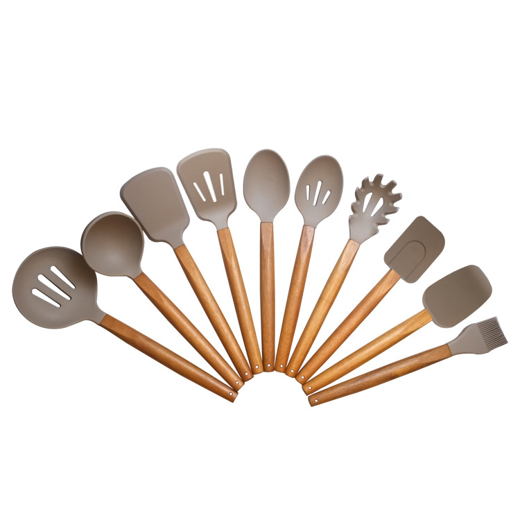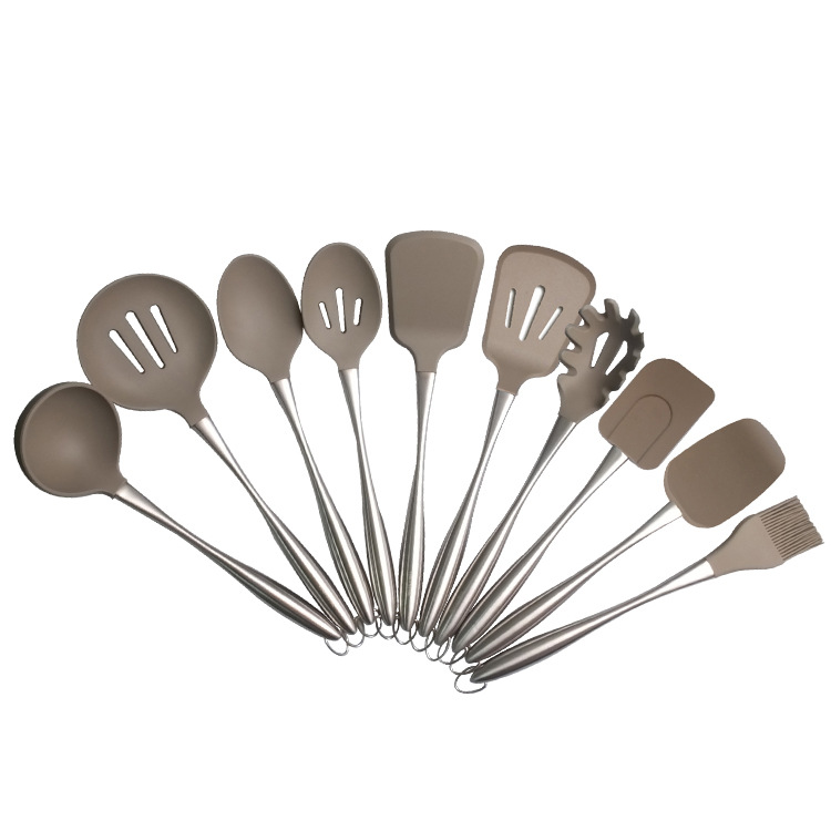 국경 간 실리콘 삽 10 조각 세트 스테인레스 스틸 핸들 실리콘 주방 용품 세트 아마존 요리 도구 낚시 울타리 숟가락 삽스토어 가기