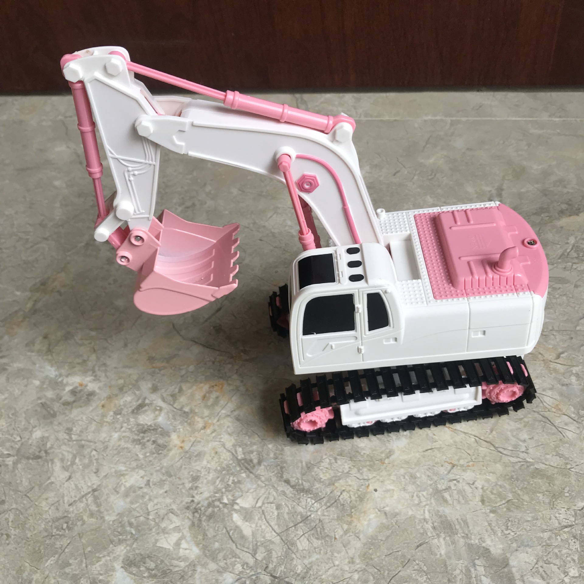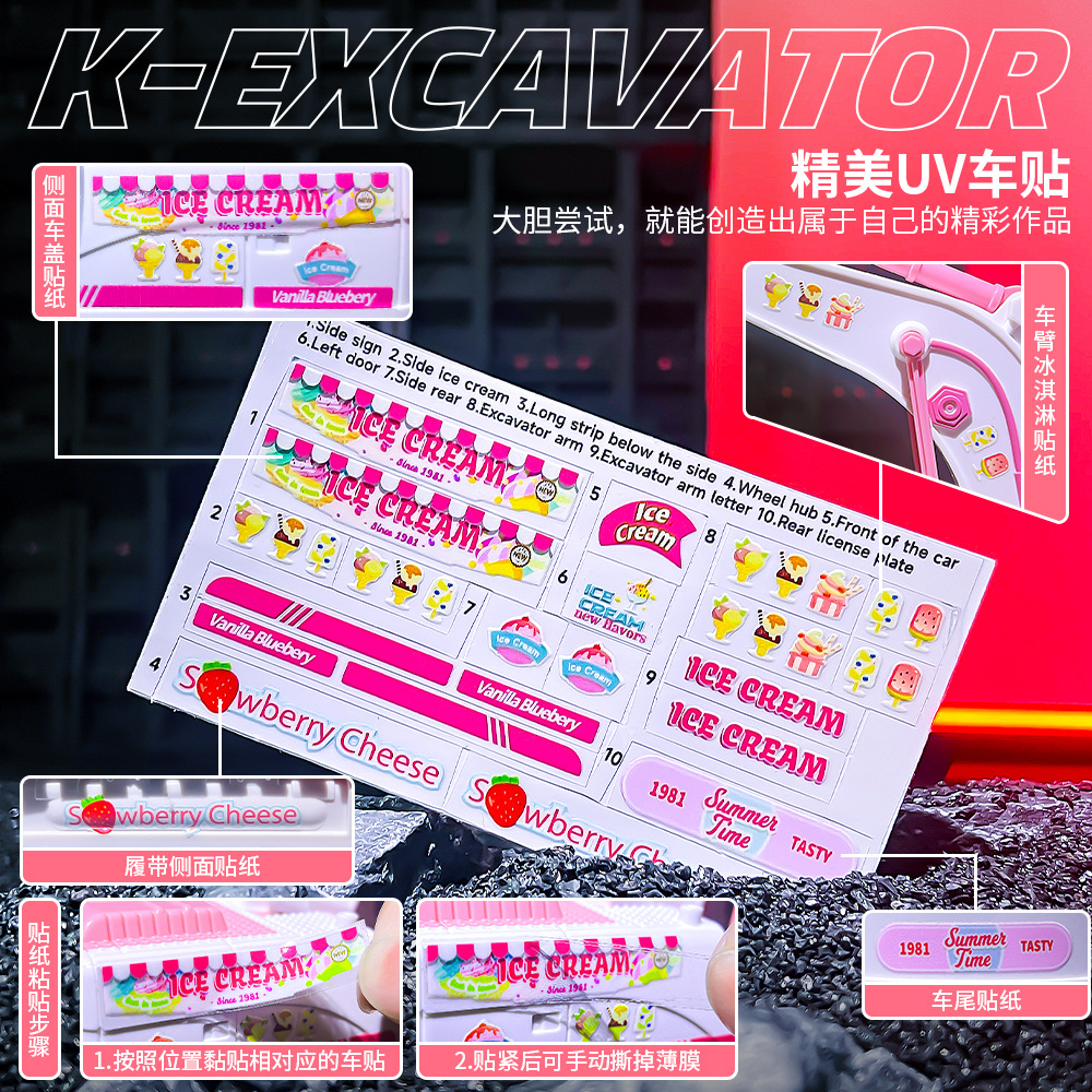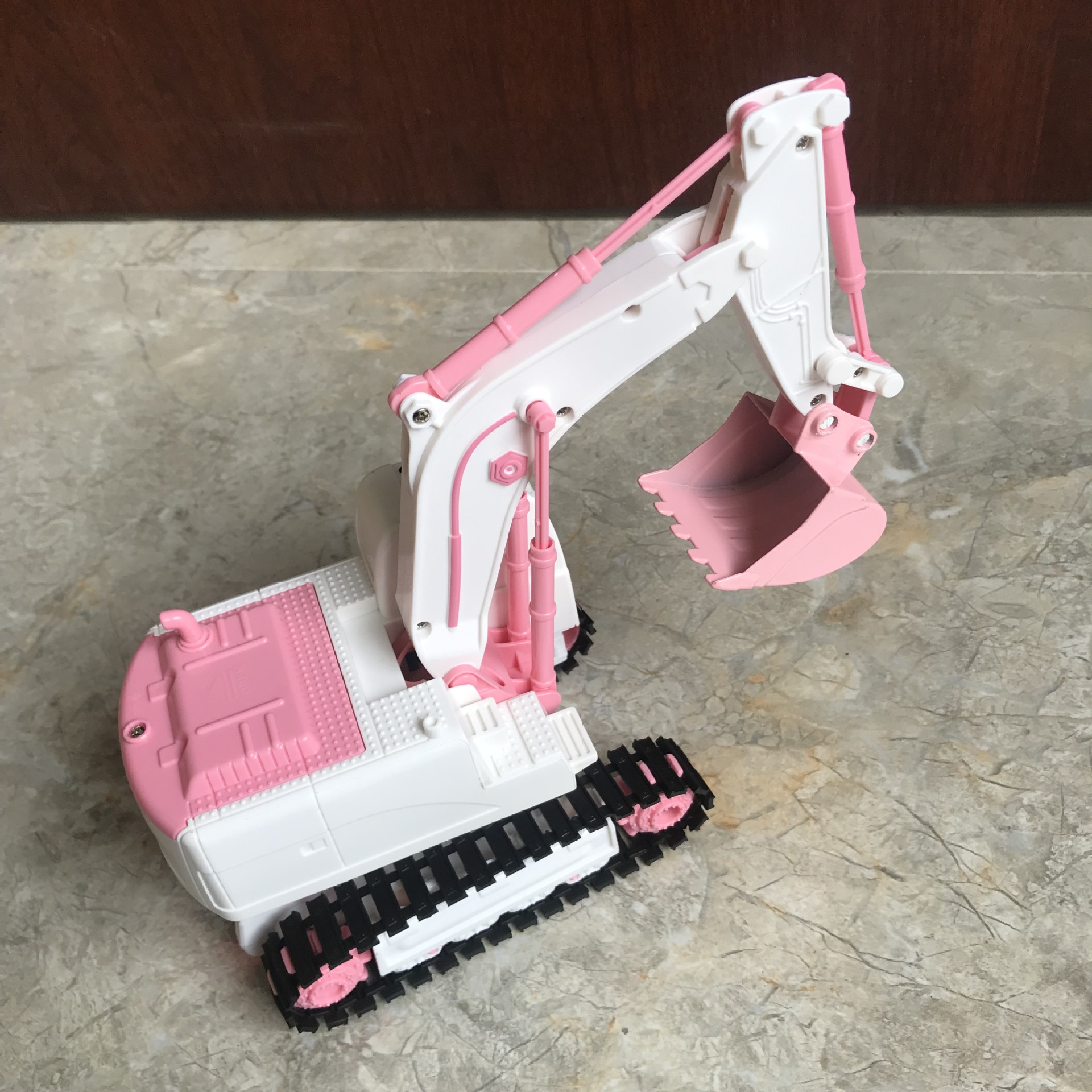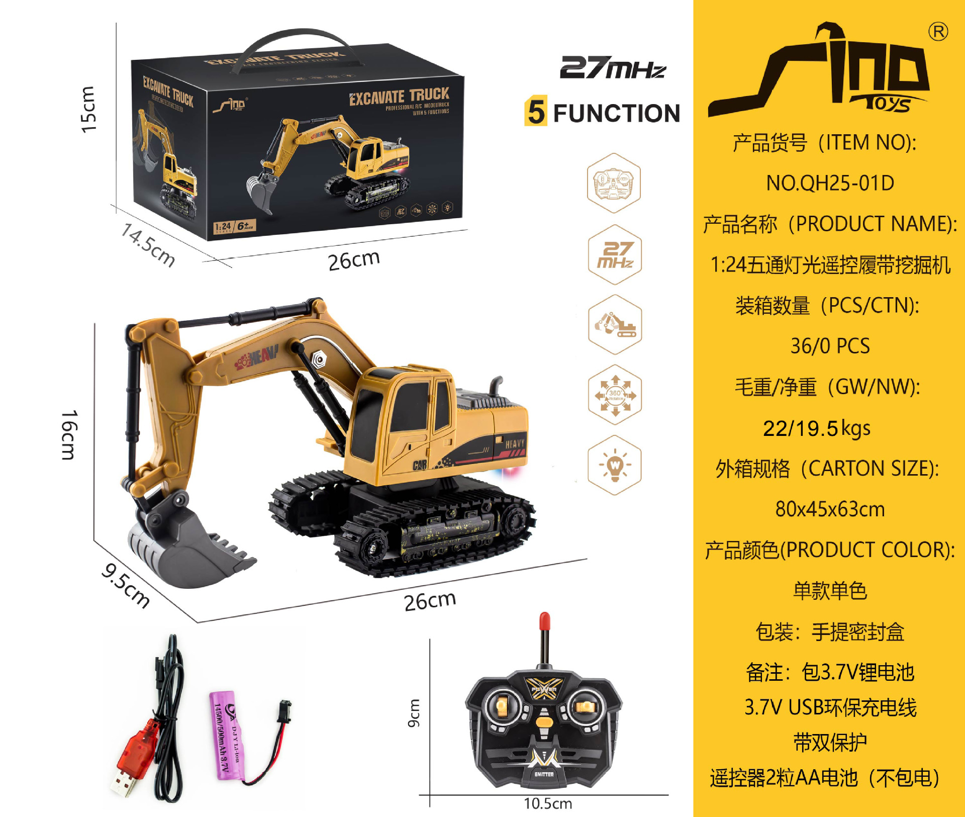 产品功能:前进后退,左转右转,挖臂向上同时伸展,挖臂向下收缩,灯光,音乐,一键演示