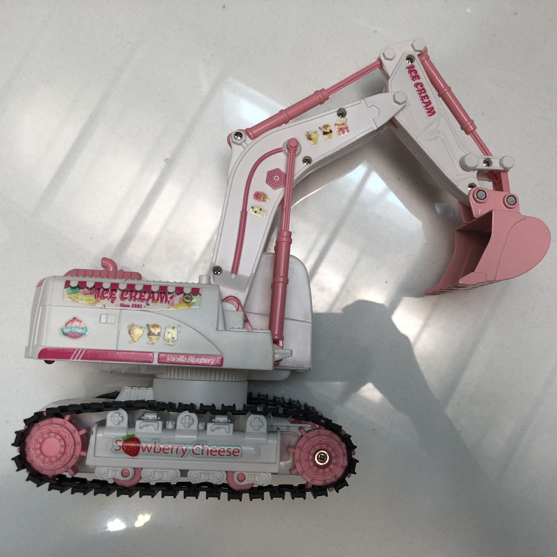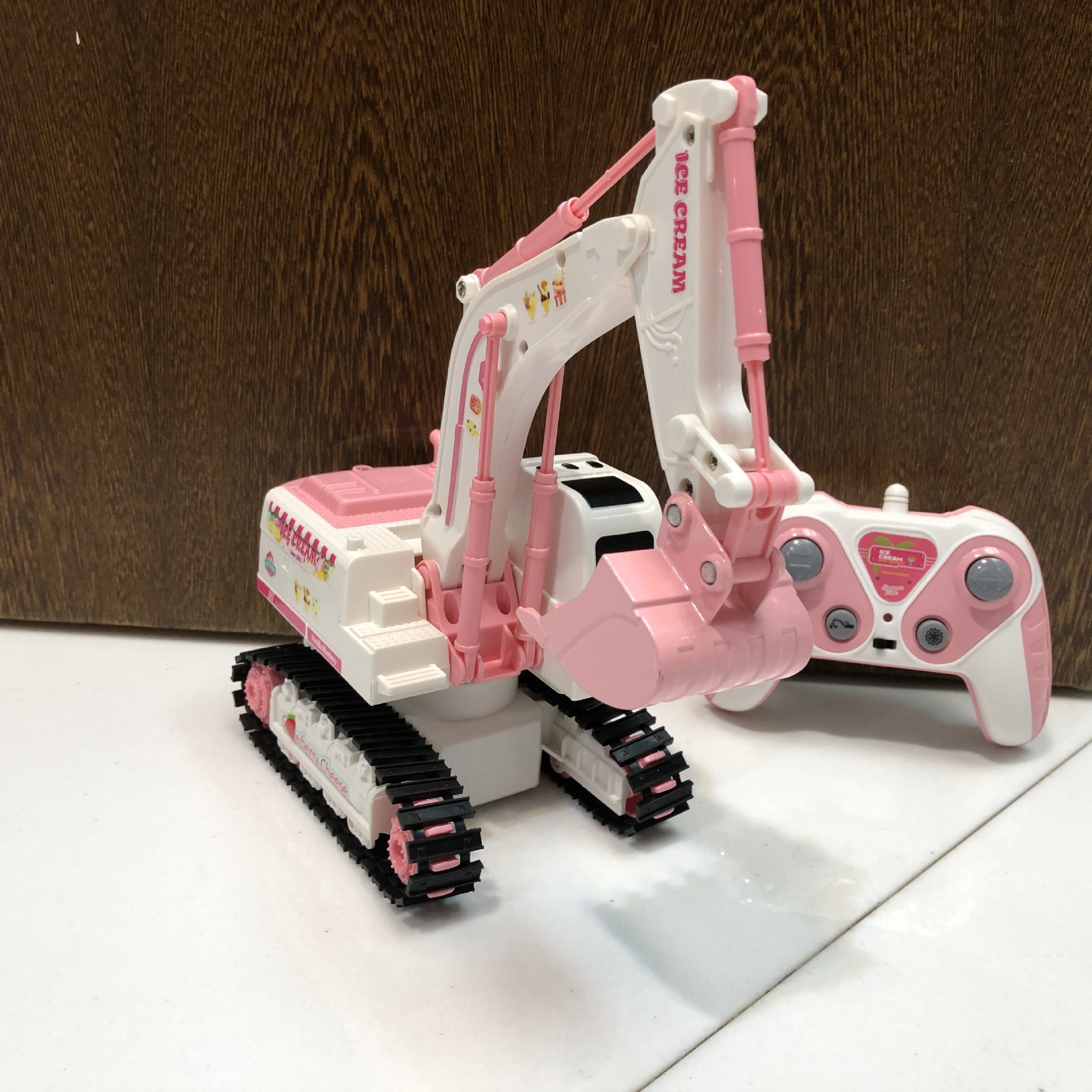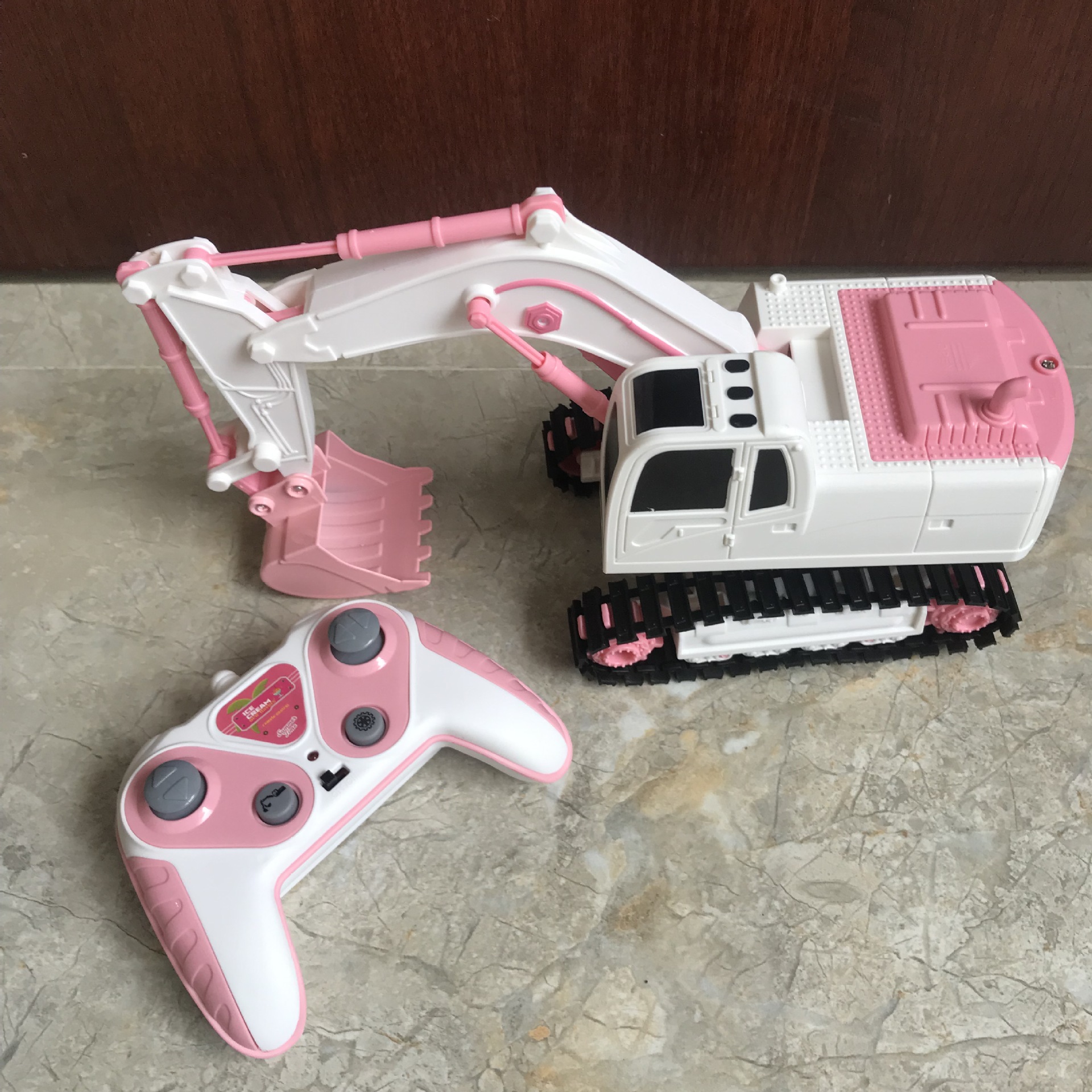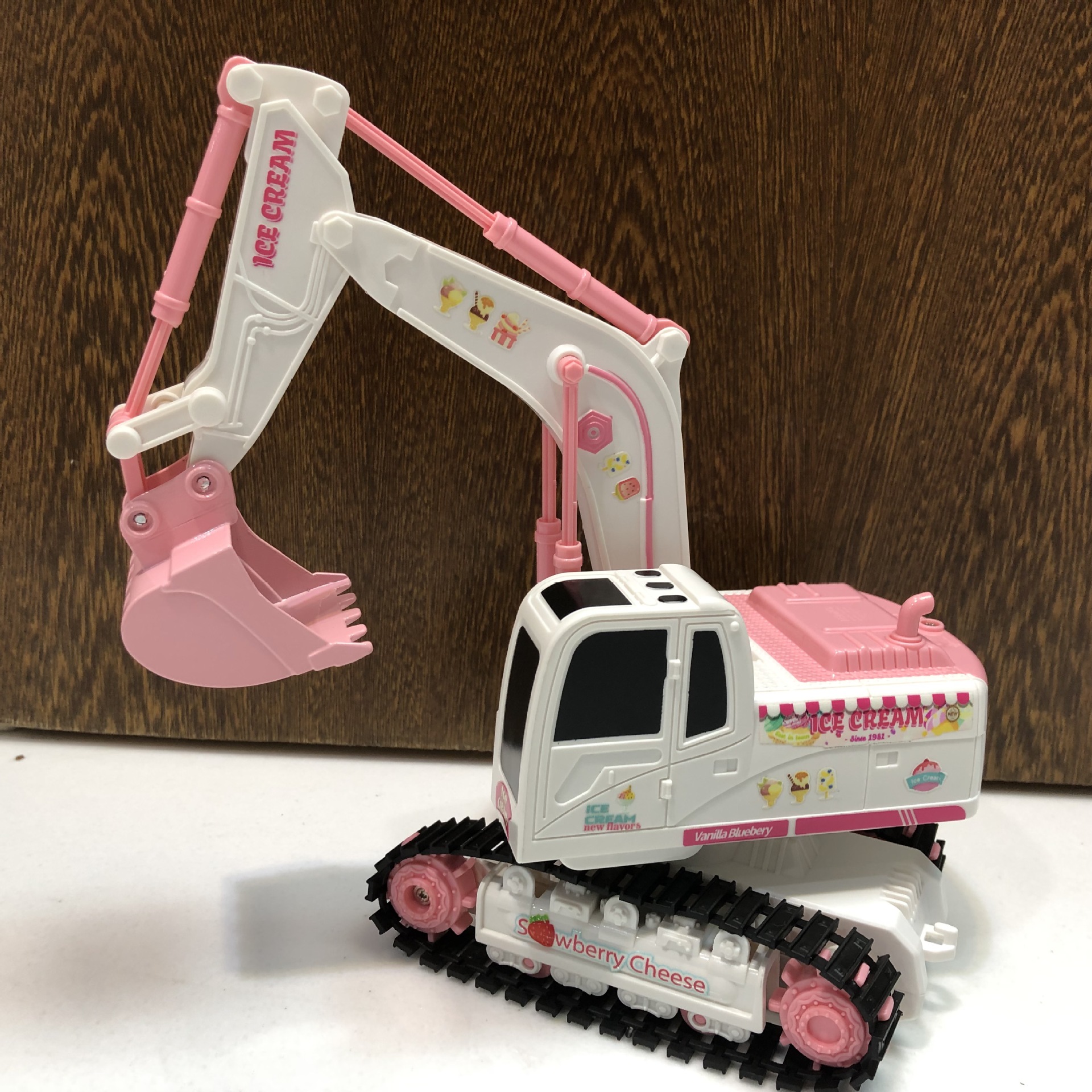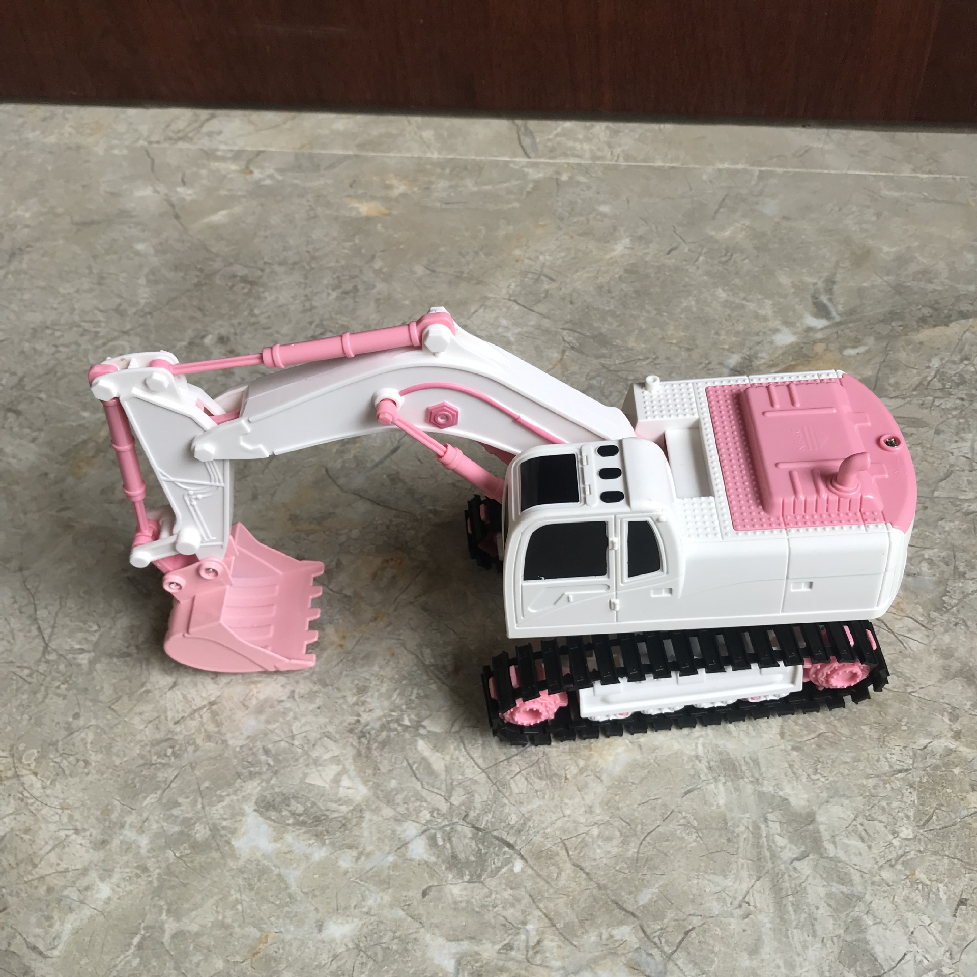 产品功能:前进后退,左转右转,挖臂向上同时伸展,挖臂向下收缩,灯光,音乐,一键演示