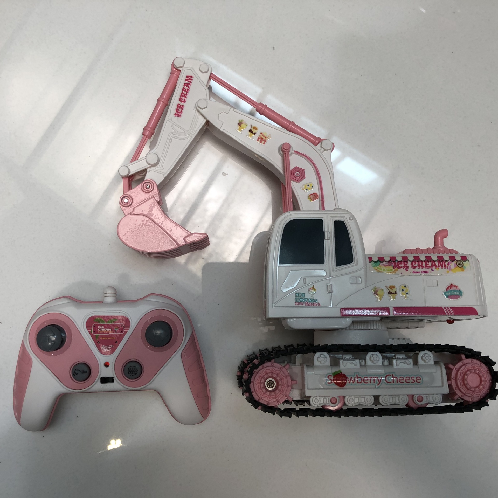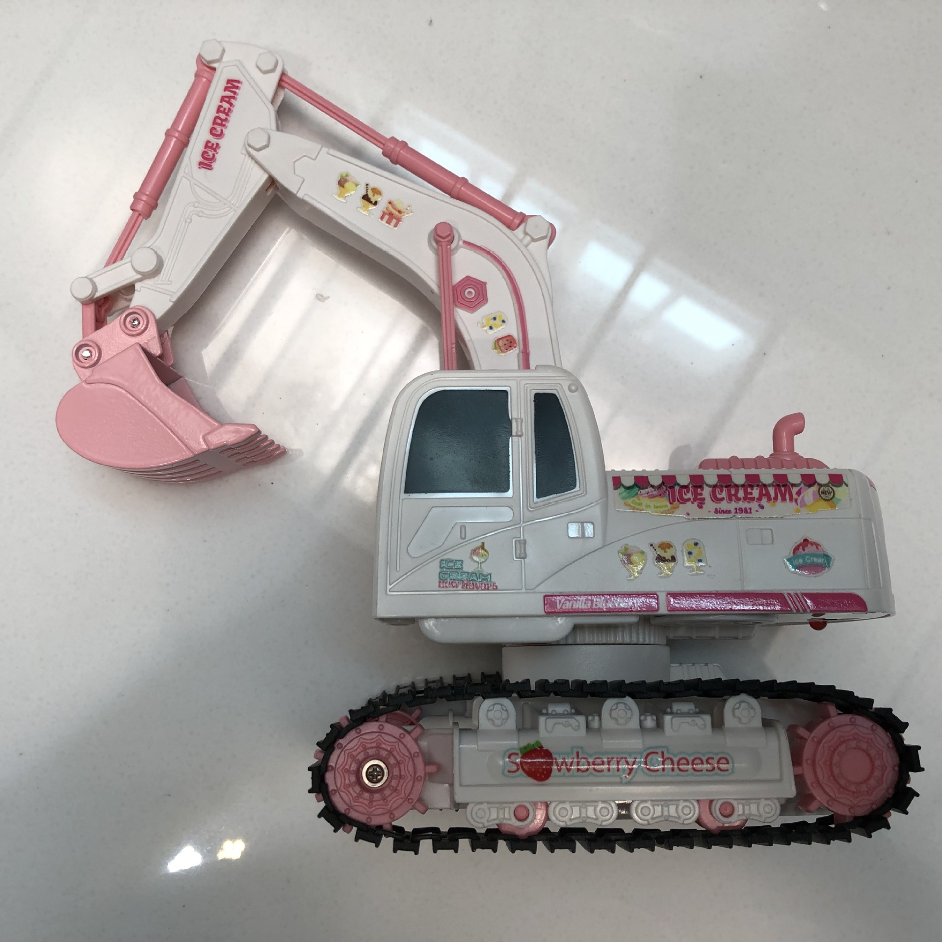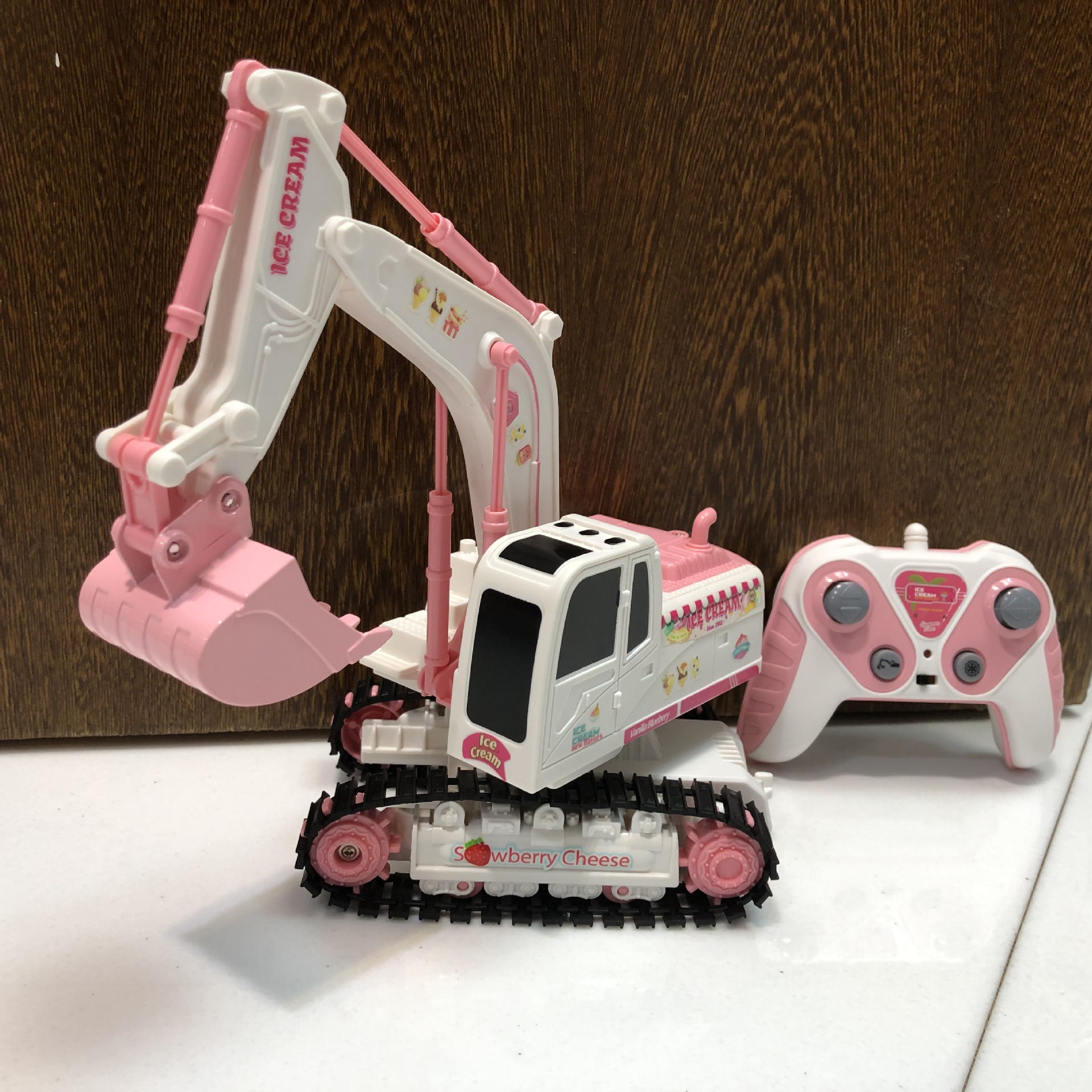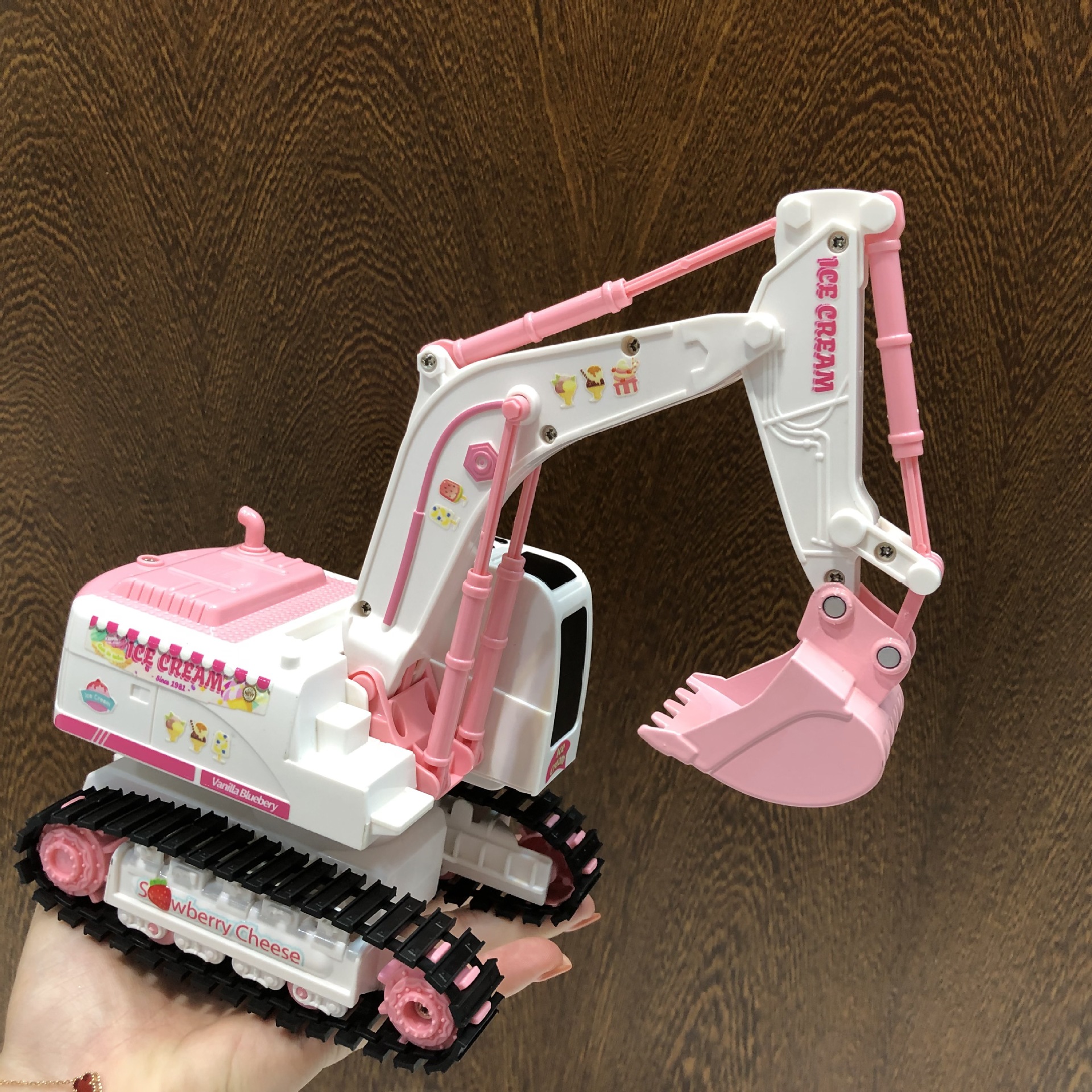 产品功能:前进后退,左转右转,挖臂向上同时伸展,挖臂向下收缩,灯光,音乐,一键演示