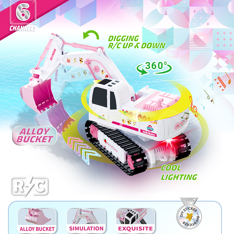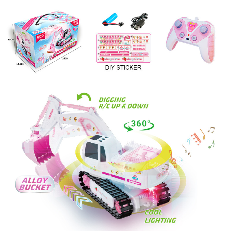 QH2024-2D 1:24 2.4G对频 六通遥控灯光音乐合金挖机 (挖斗合金)
