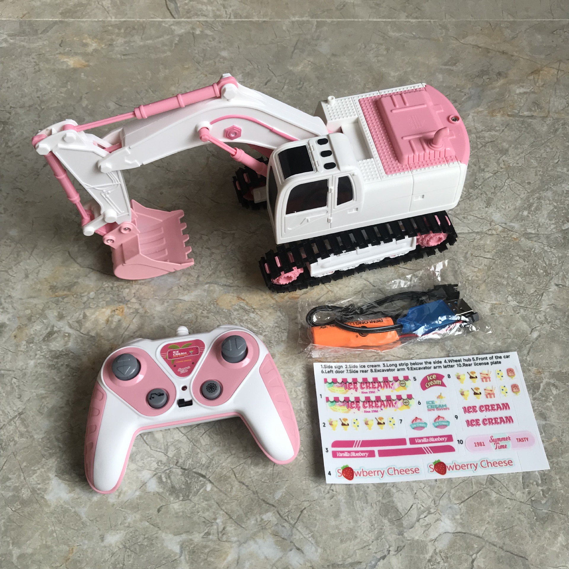 产品配置: 配DIY水晶车贴(有教贴视频);车身包3.7V锂电池+USB环充电线。 遥控器不包电:使用用2粒AA五号电池(需自备)