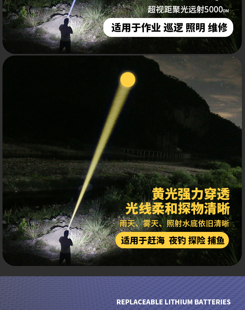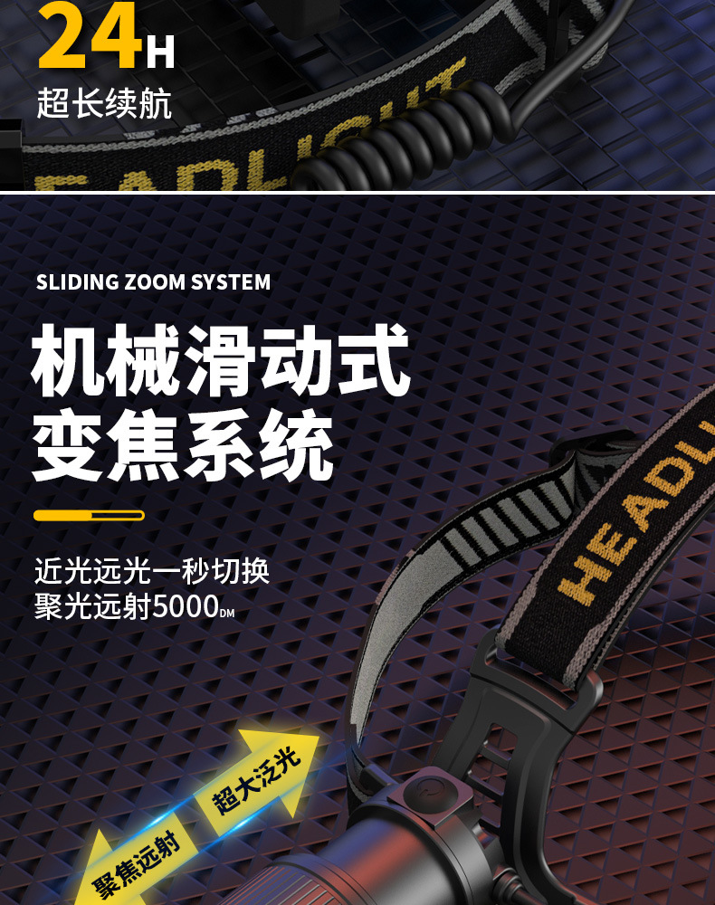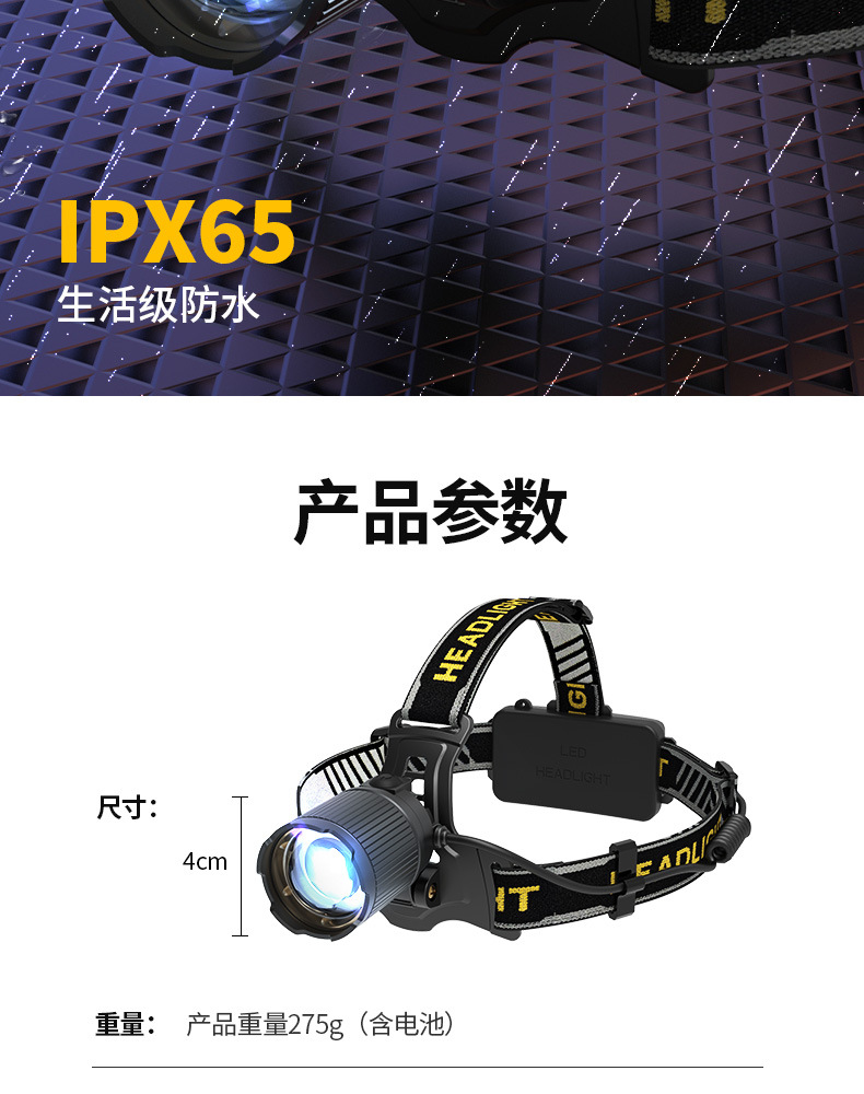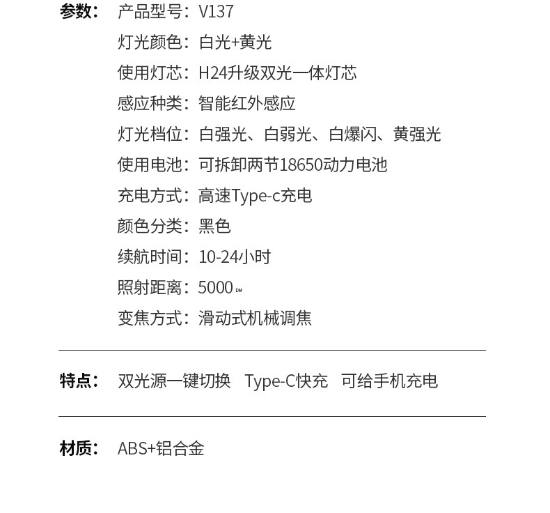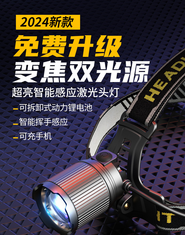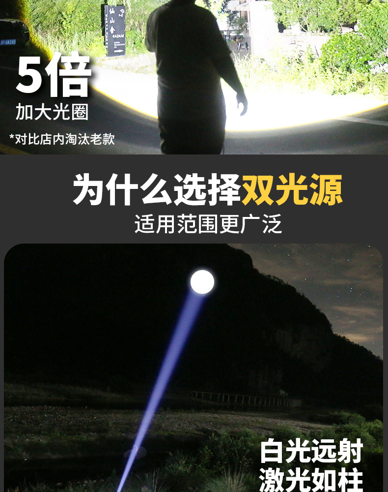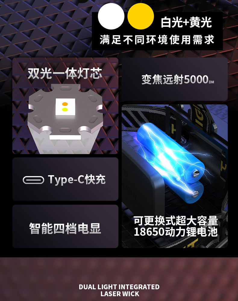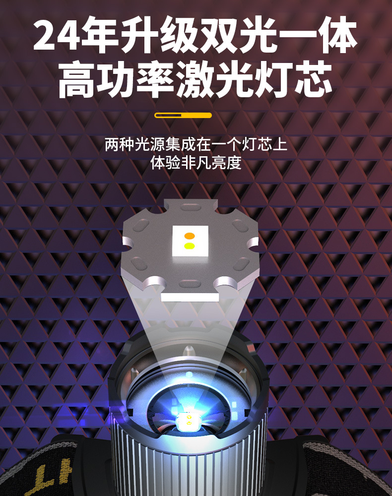 • [흰색 + 노란색 이중 레이저] 배터리가 없는 단일 헤드램프