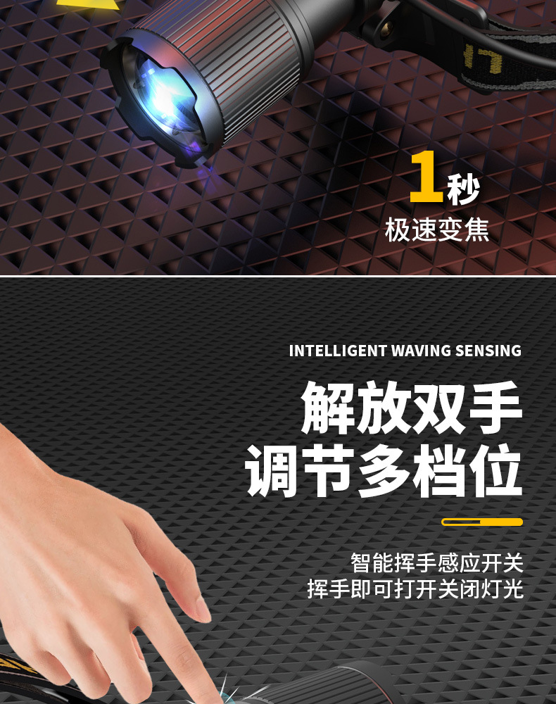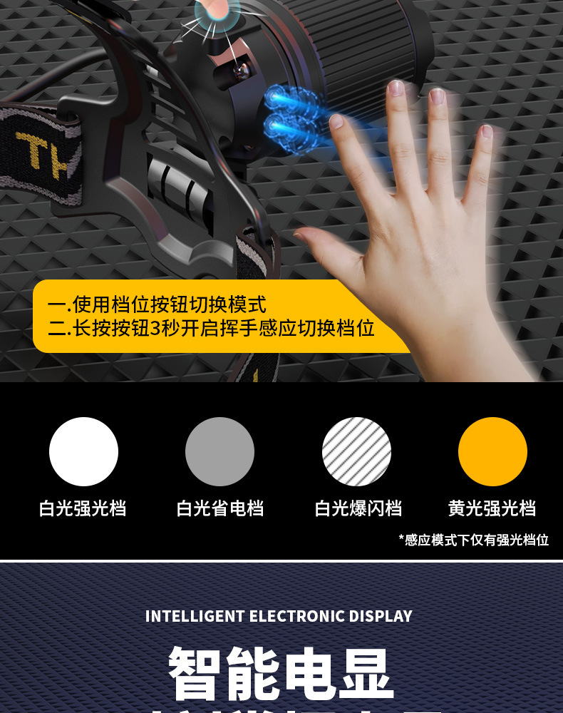 야외 강한 노란색 빛 헤드 라이트 듀얼 리튬 전기 토치 충전식 슈퍼 밝은 긴 수명 LED 야간 낚시 특수 센서