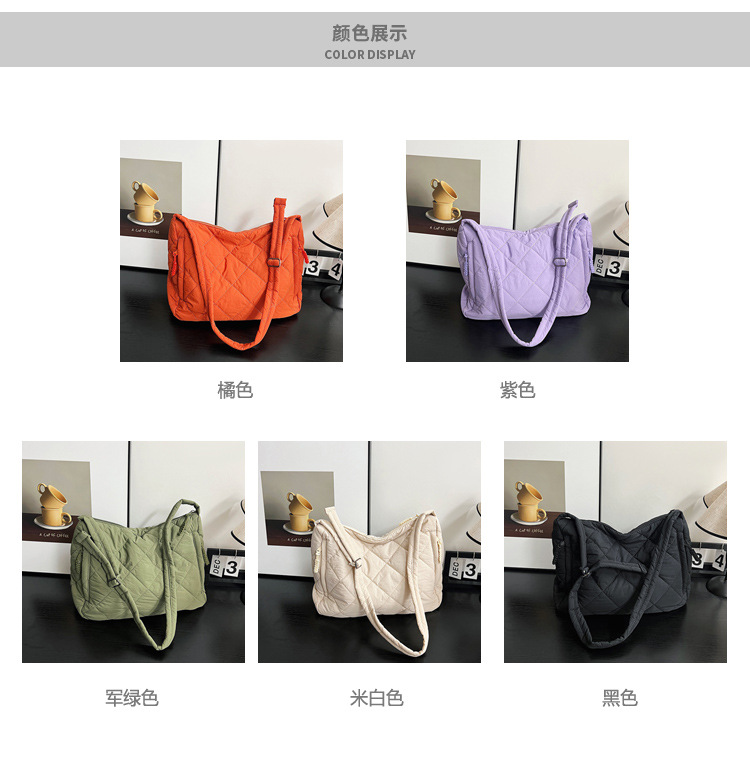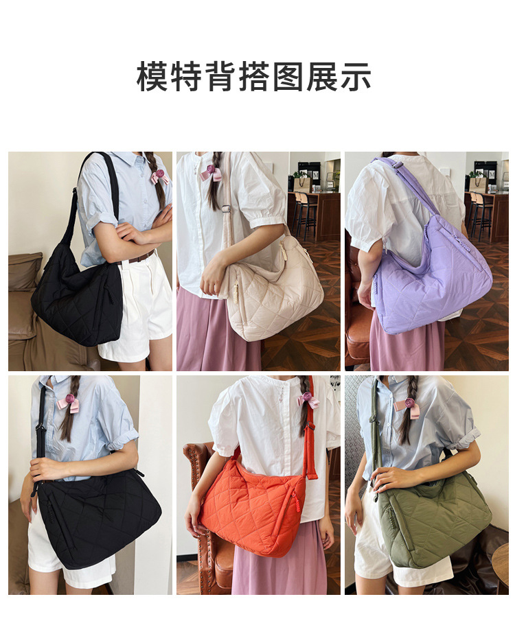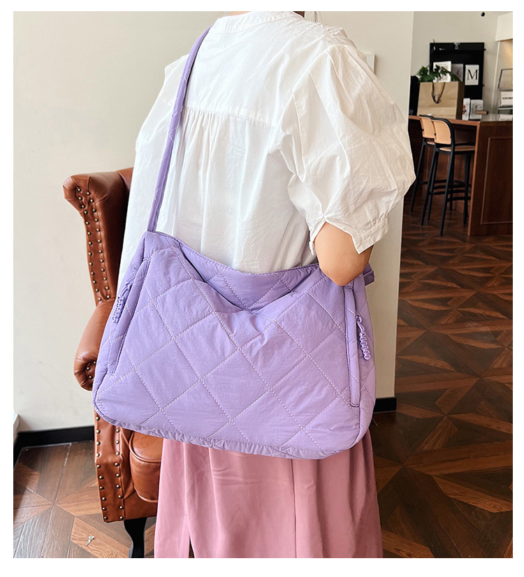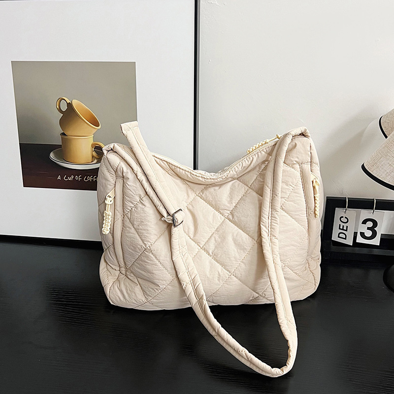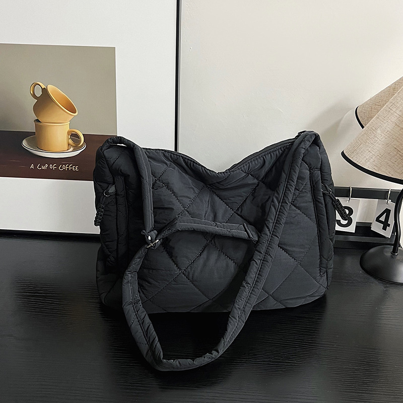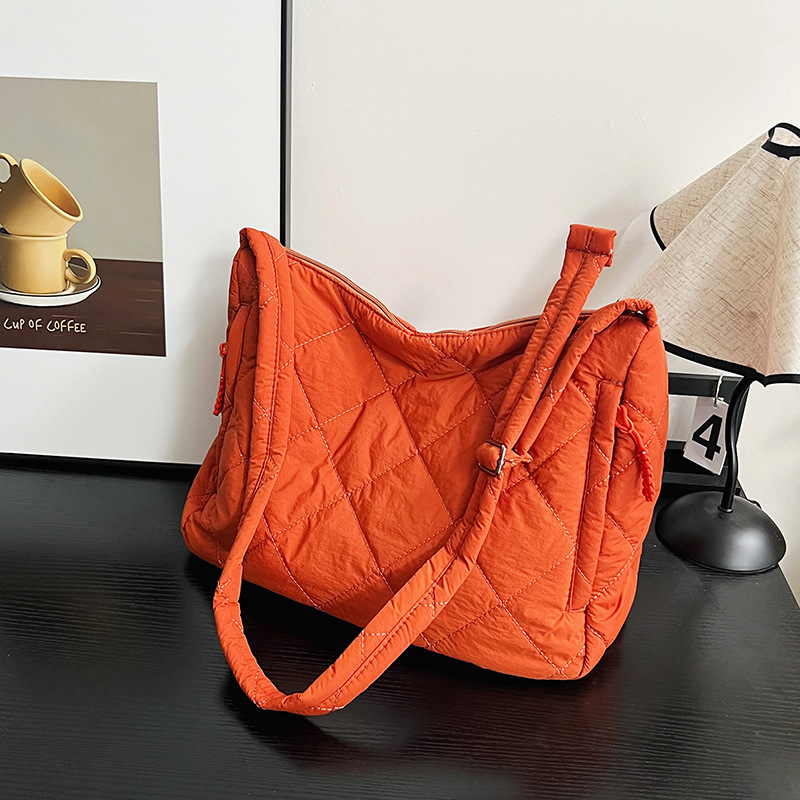 크로스보더 가을 겨울 면 소재 가방, 토트백, 대용량 크로스백, 다이아몬드 패턴, 틈새시장, 다용도 핸드백, 라이트 럭셔리 다이아몬드 패턴스토어 가기