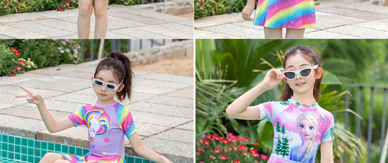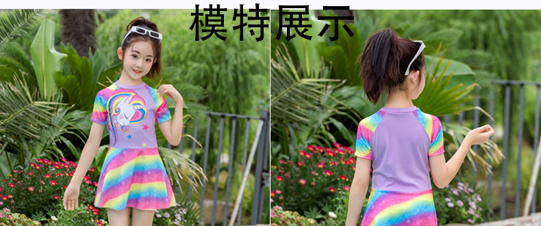 어린이 수영복 소녀 스플릿 스커트 대형 어린이 수영복 여자 수영복 공주 레인보우 말 어린이 수영복스토어 가기