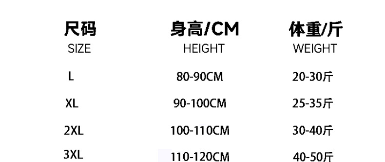 • 3XL: 110-120cm/ 25kg