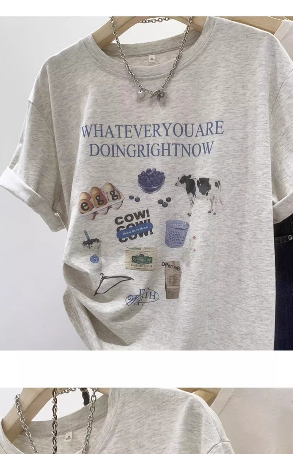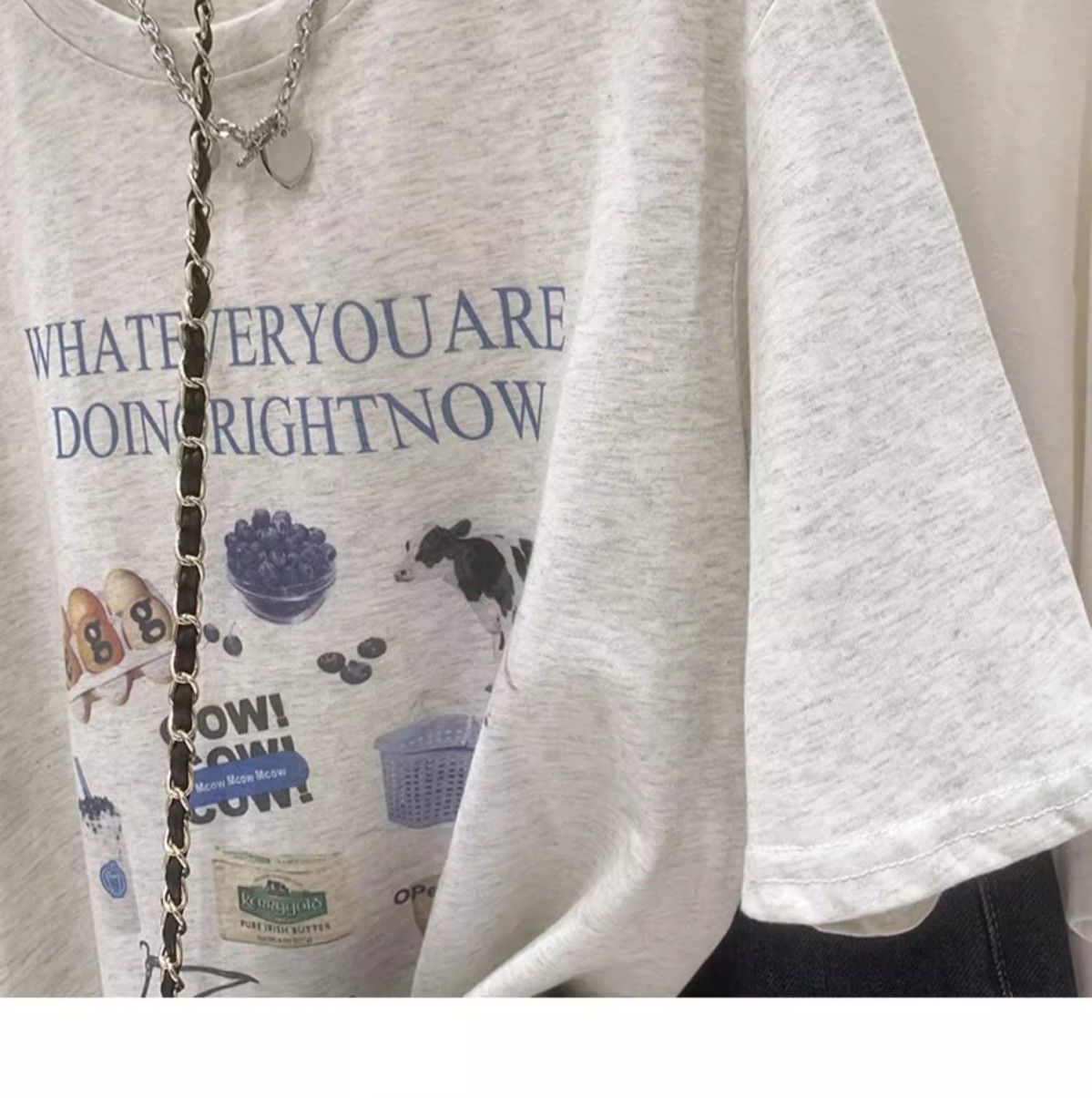 초극세사 모달 심플 한국 스타일 신상 만화 프린트 티셔츠 여성 여름 2026 루즈핏 반팔 상의 트렌디스토어 가기