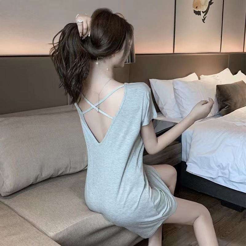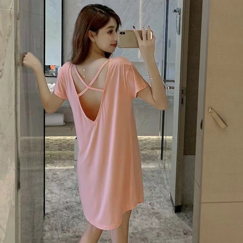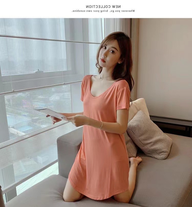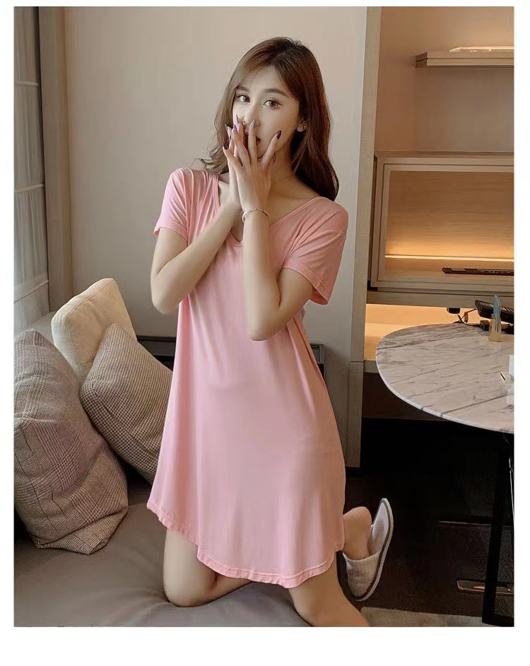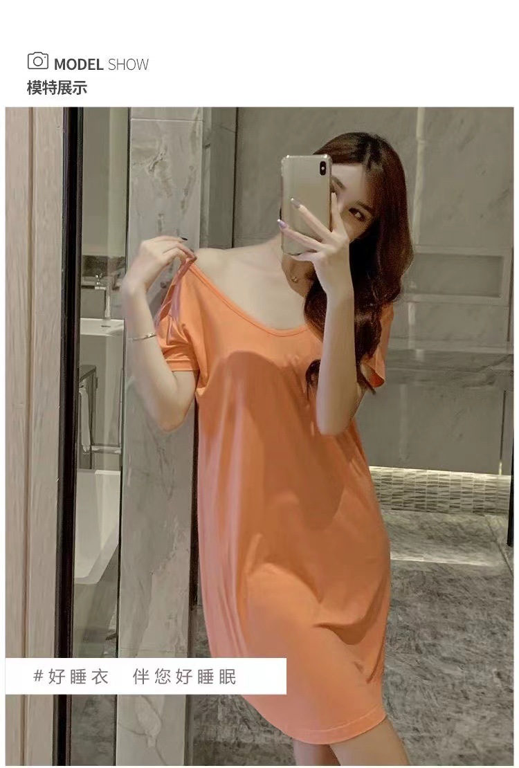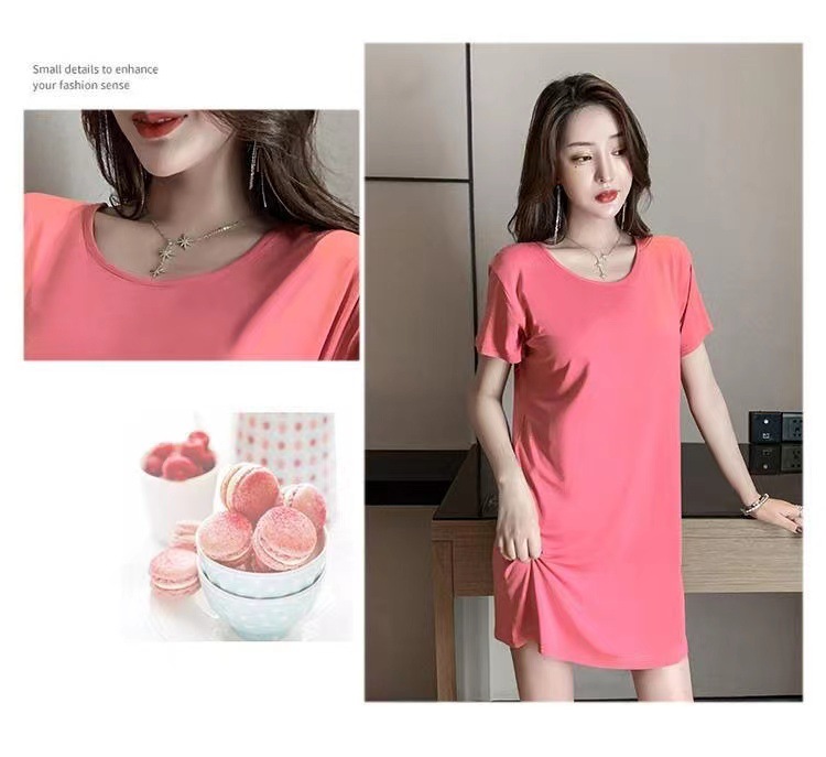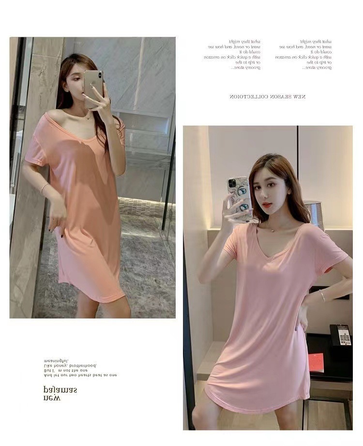 TikTok 여름 나이트 드레스 여성의 모달 얇은 사이버 축하 핫 새로운 짧은 소매 섹시한 임산부 잠옷 홈 옷스토어 가기