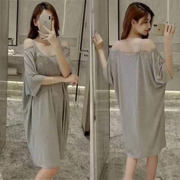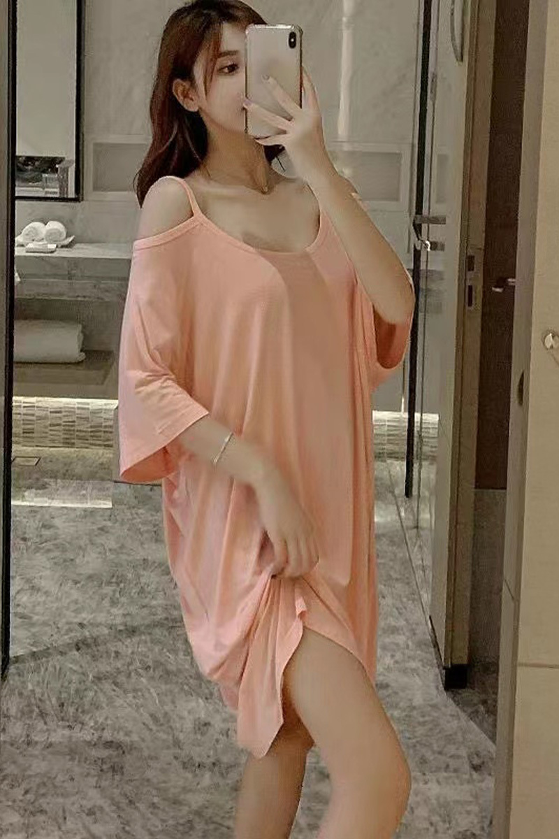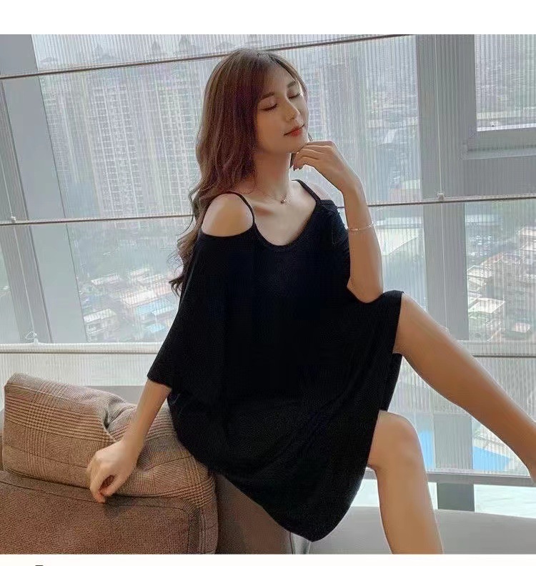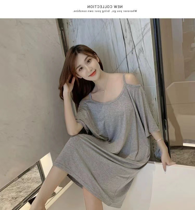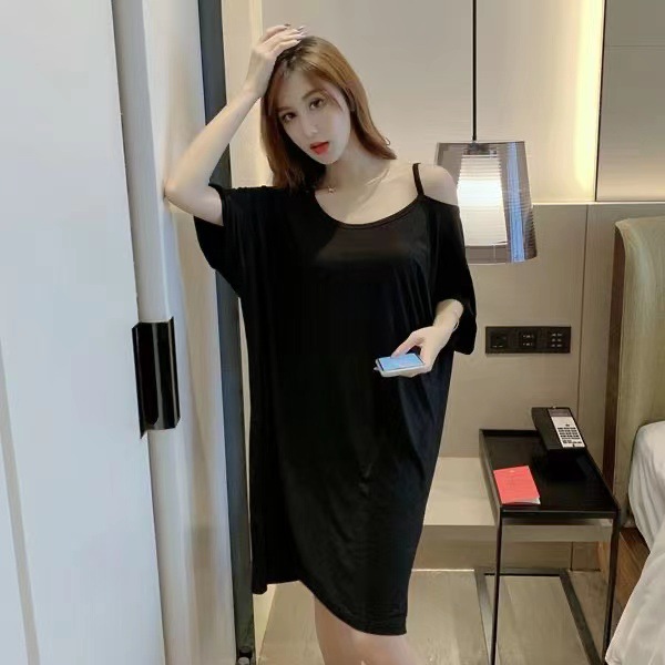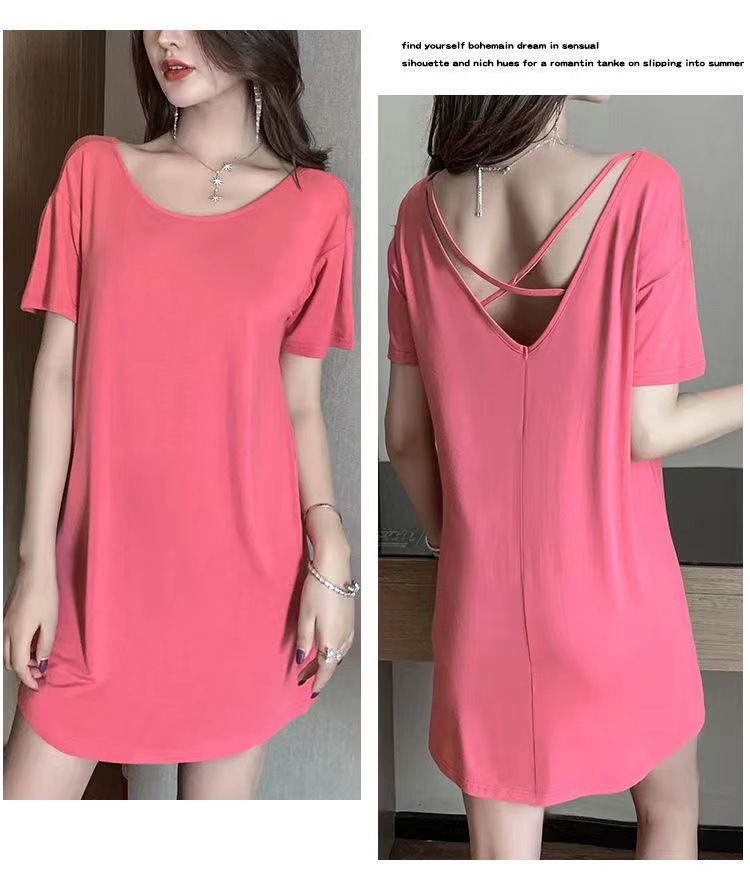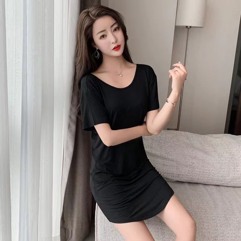 TikTok 여름 나이트 드레스 여성의 모달 얇은 사이버 축하 핫 새로운 짧은 소매 섹시한 임산부 잠옷 홈 옷스토어 가기