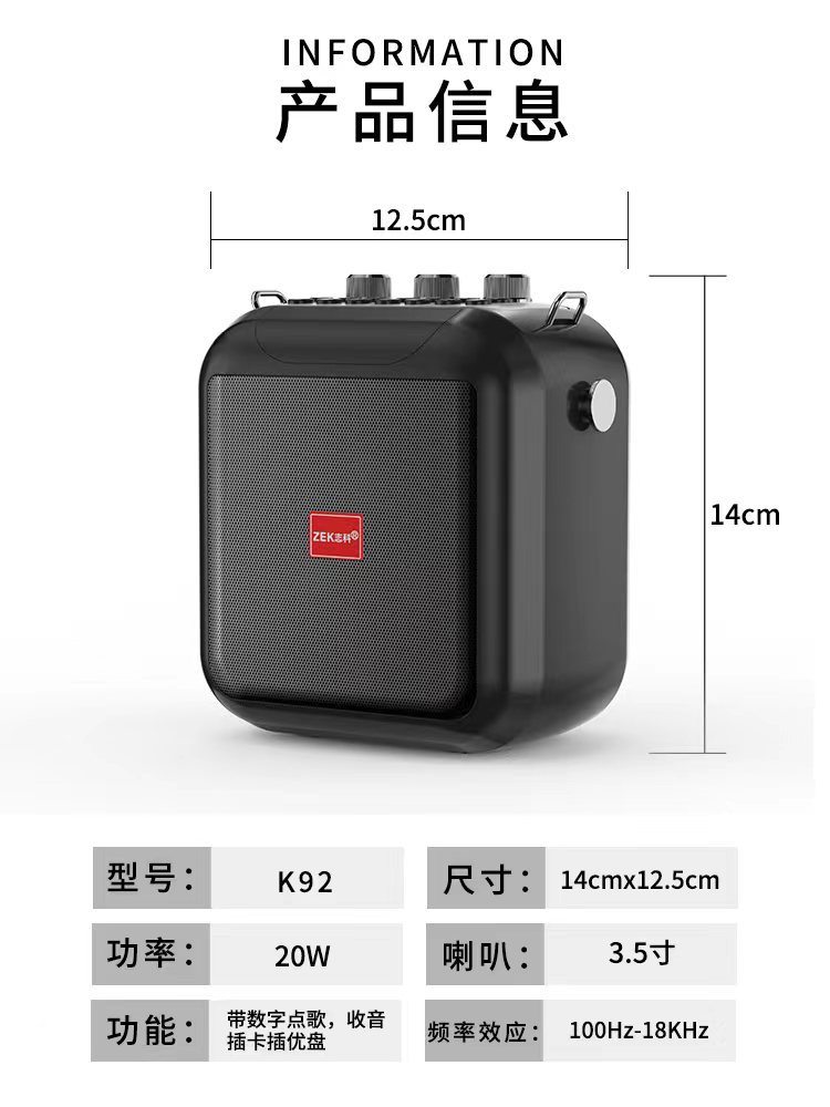 Zhike K92 휴대용 블루투스 오디오 휴대용 고성능 야외 스피커 K 노래 오디오 카드 USB스토어 가기