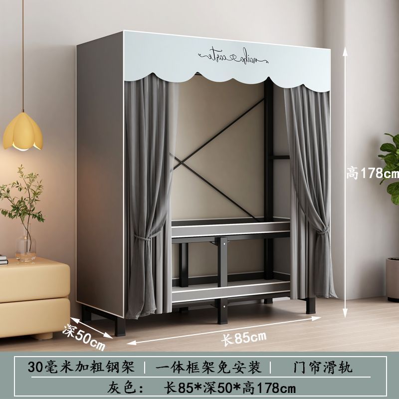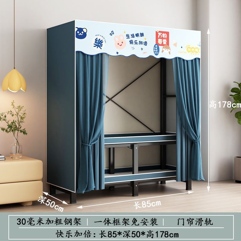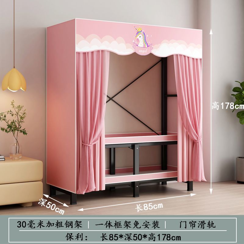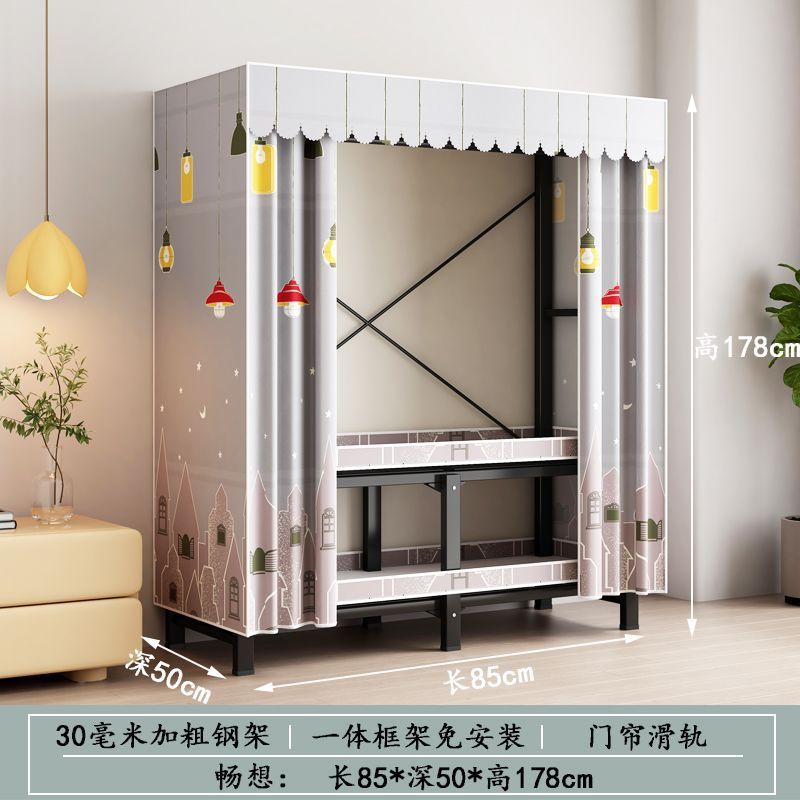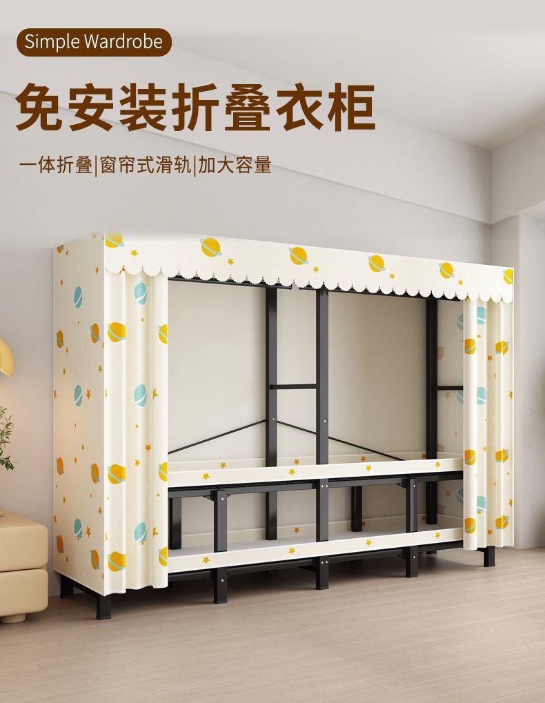 원피스 접이식 설치 무료 간단한 옷장 홈 침실 굵게 강화 된 풀 스틸 프레임 옷장 룸 보관 캐비닛