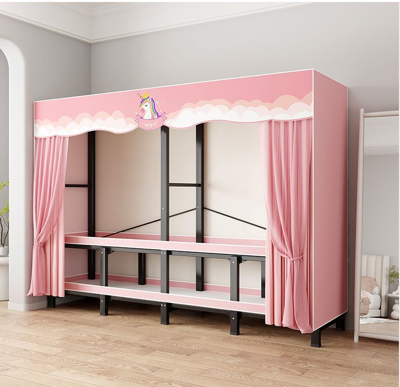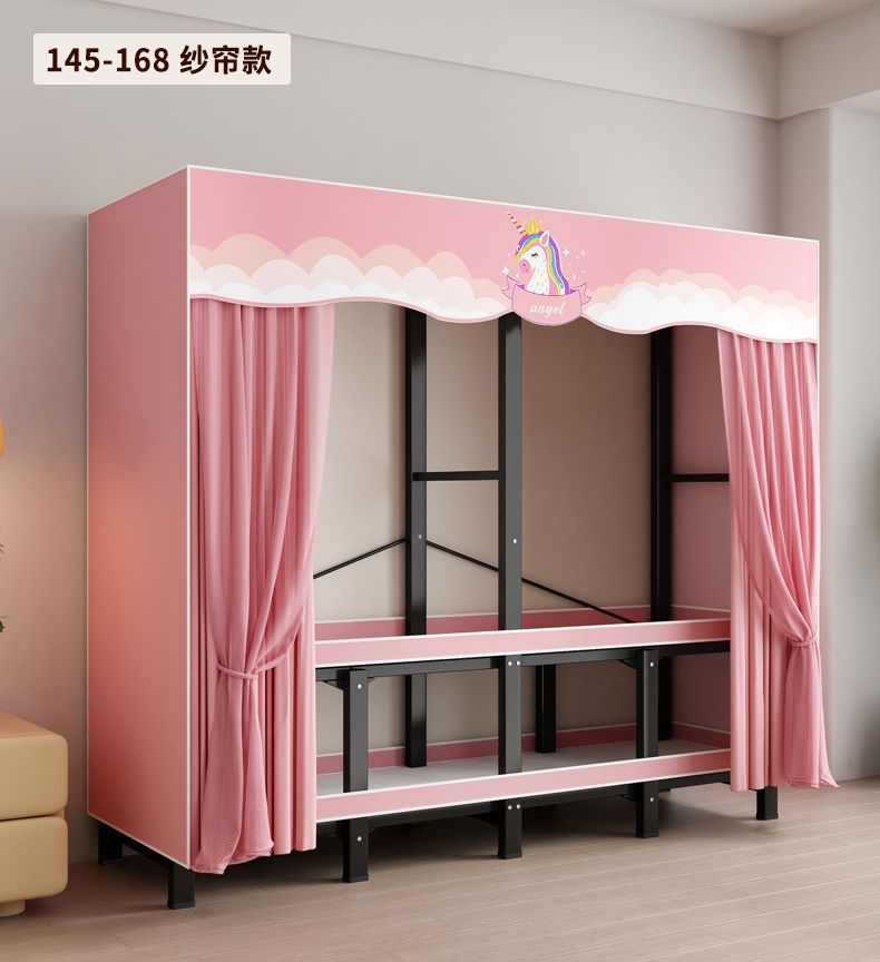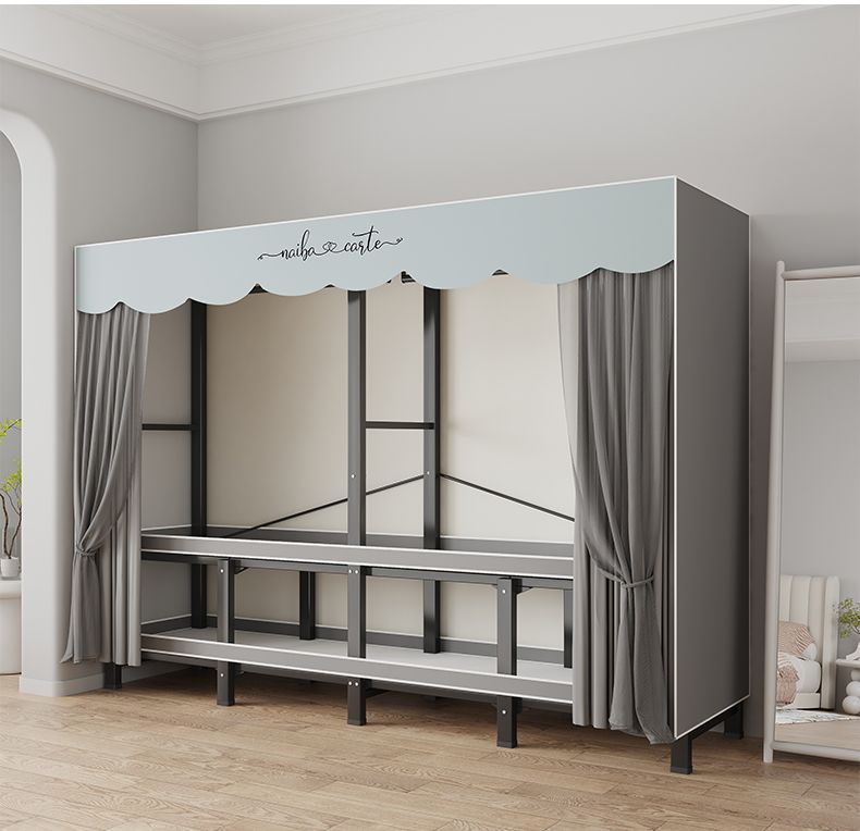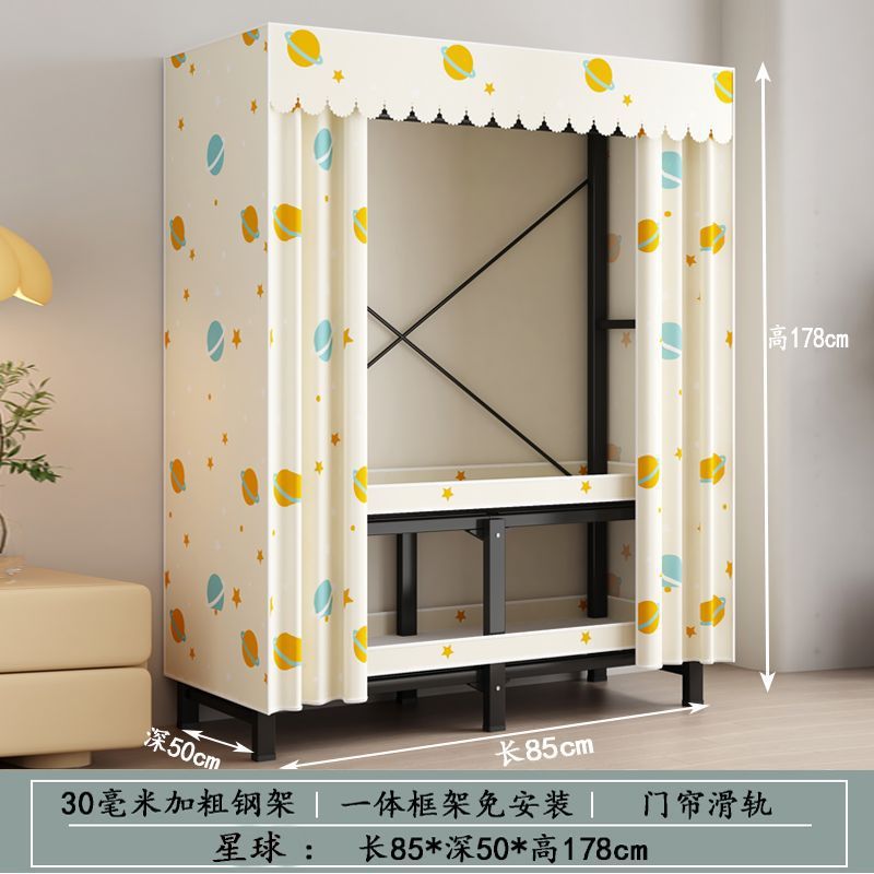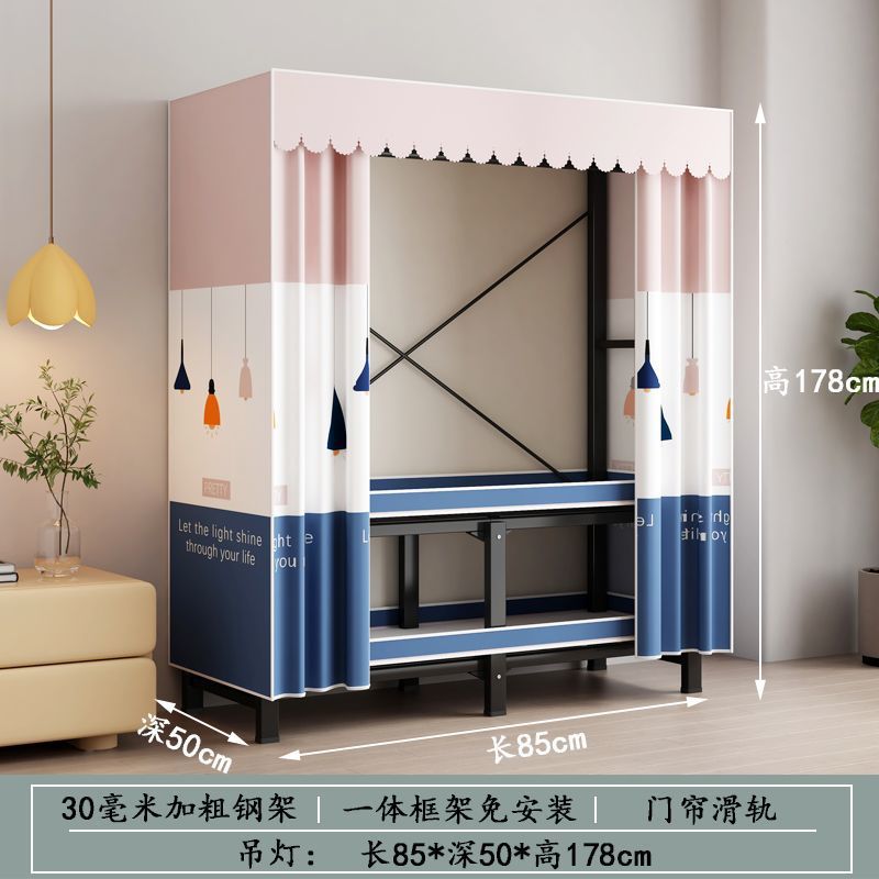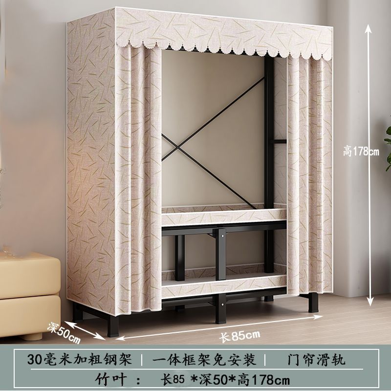원피스 접이식 설치 무료 간단한 옷장 홈 침실 굵게 강화 된 풀 스틸 프레임 옷장 룸 보관 캐비닛