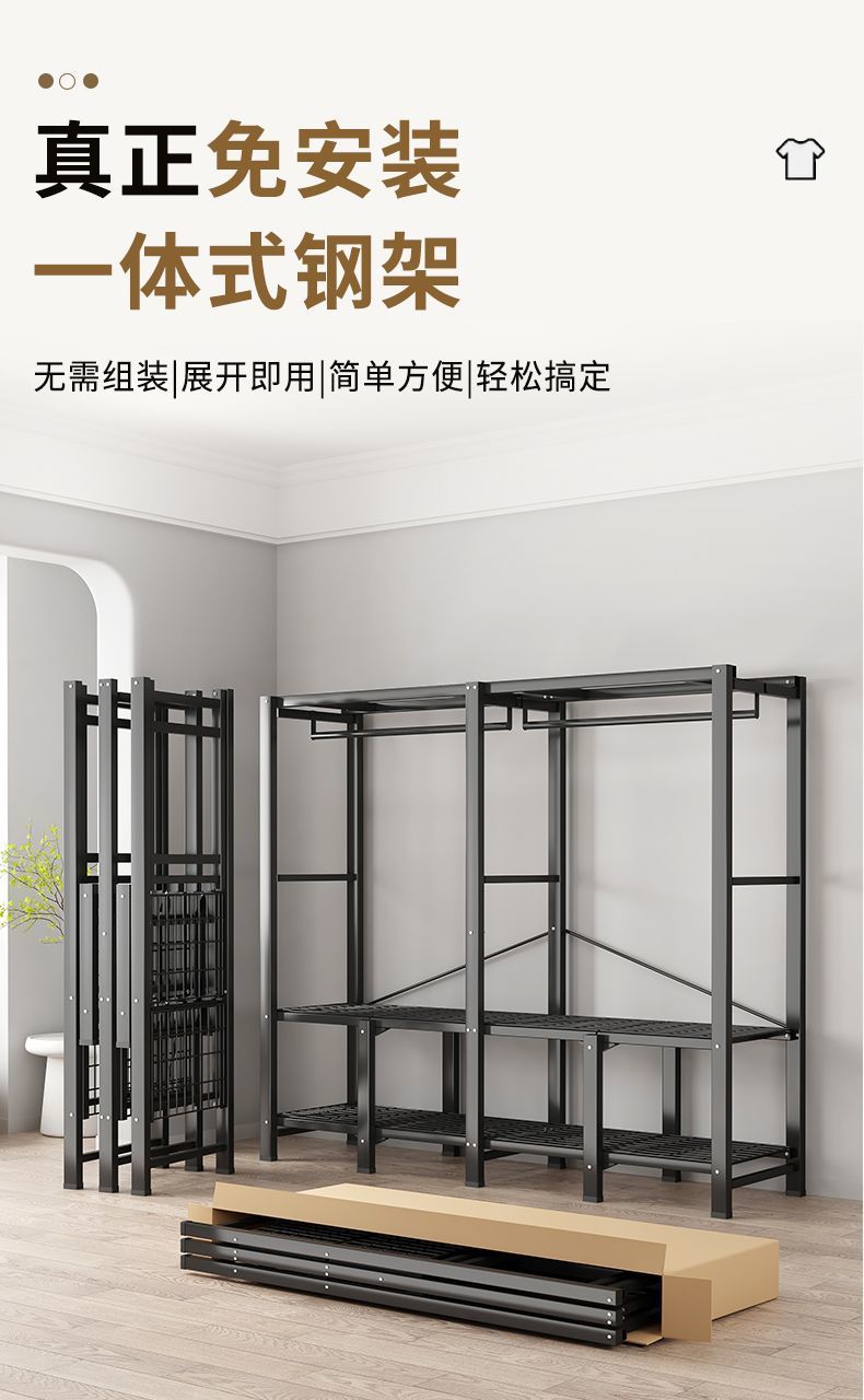 원피스 접이식 설치 무료 간단한 옷장 홈 침실 굵게 강화 된 풀 스틸 프레임 옷장 룸 보관 캐비닛스토어 가기