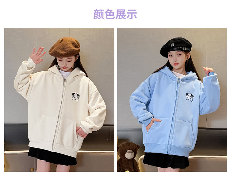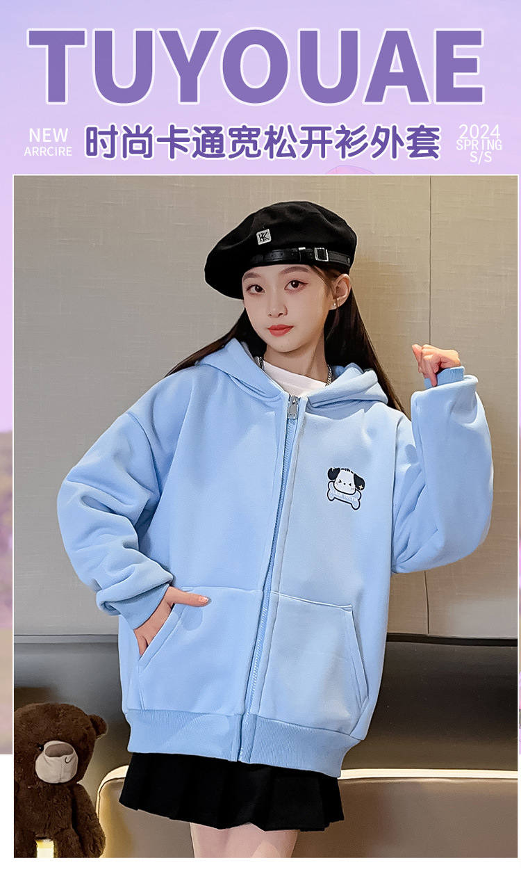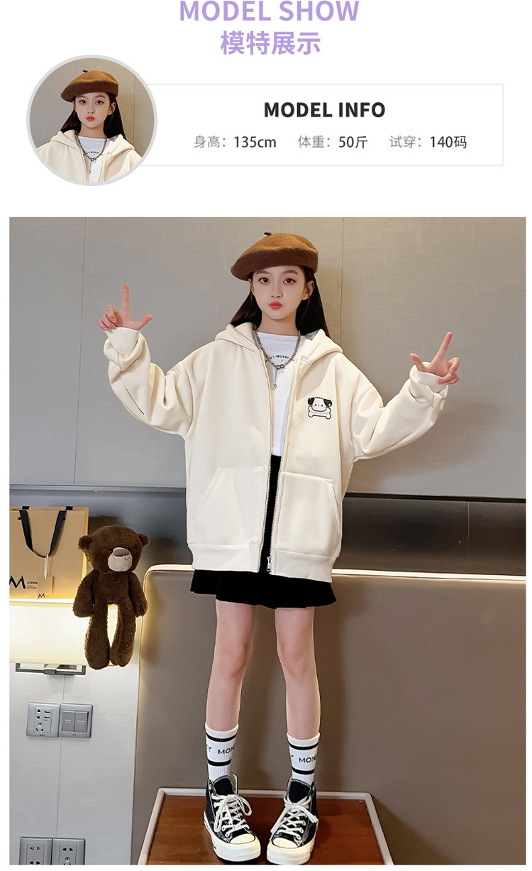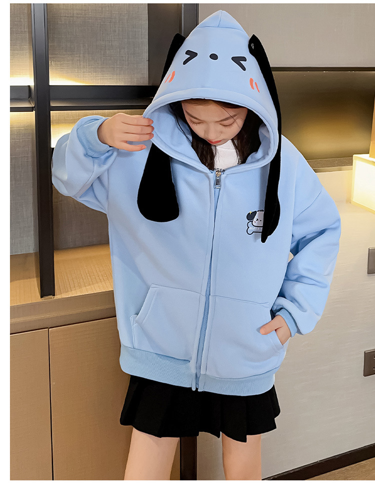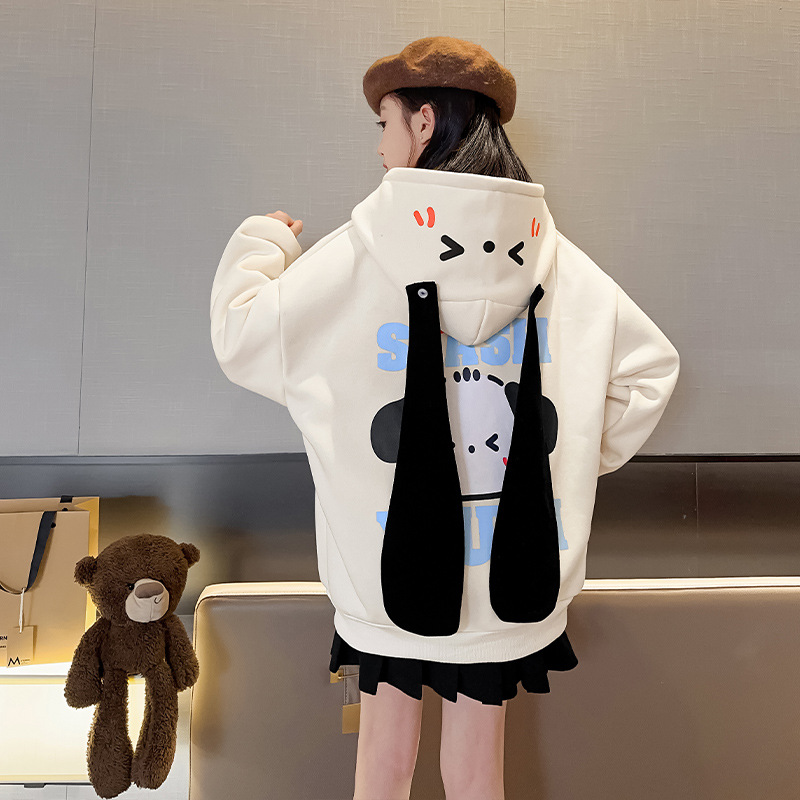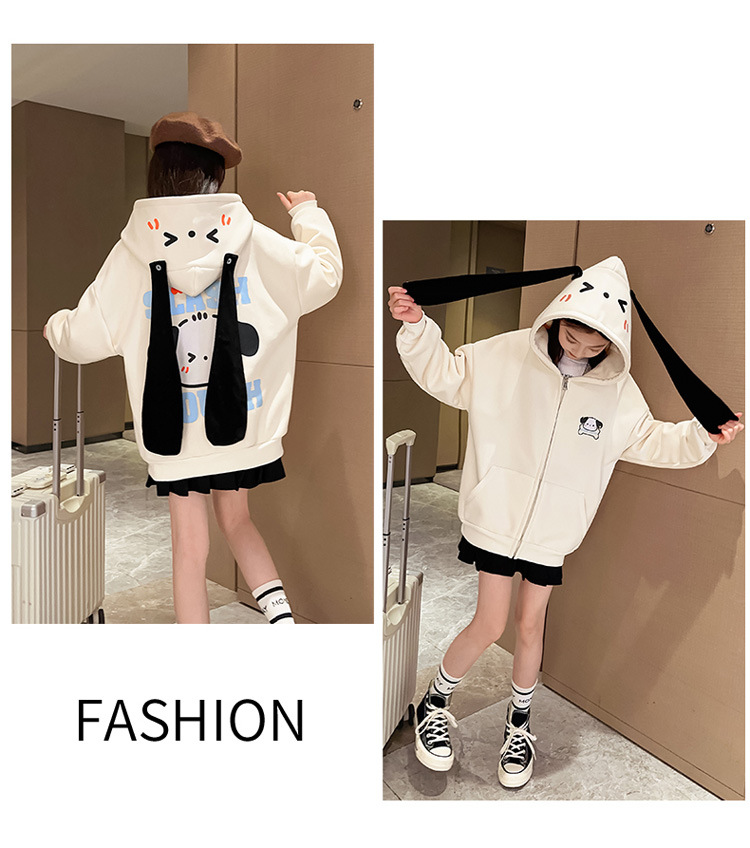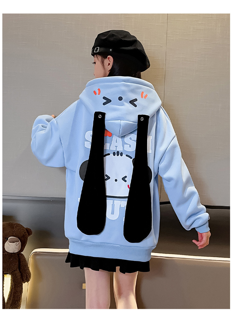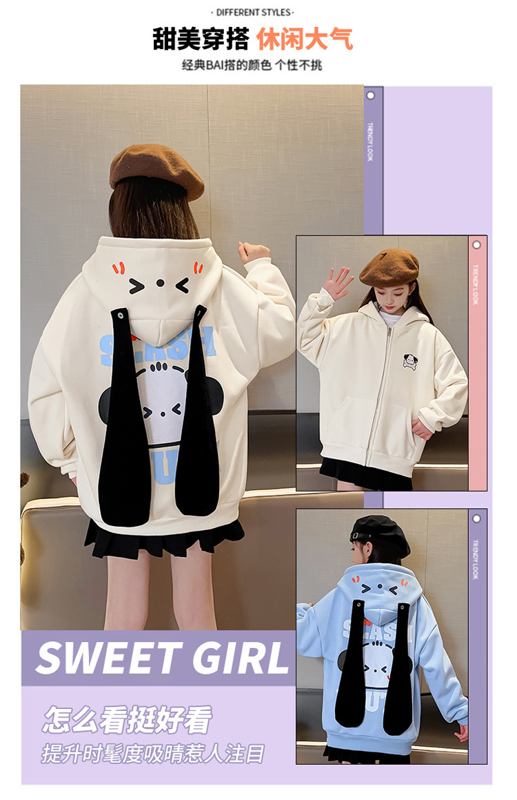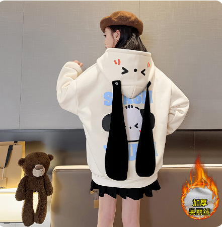 여아 가을 겨울 후드 재킷 새로운 스타일 중대형 어린이 벨벳 두꺼운 파차 개 긴 귀 긴팔 스웨트 셔츠