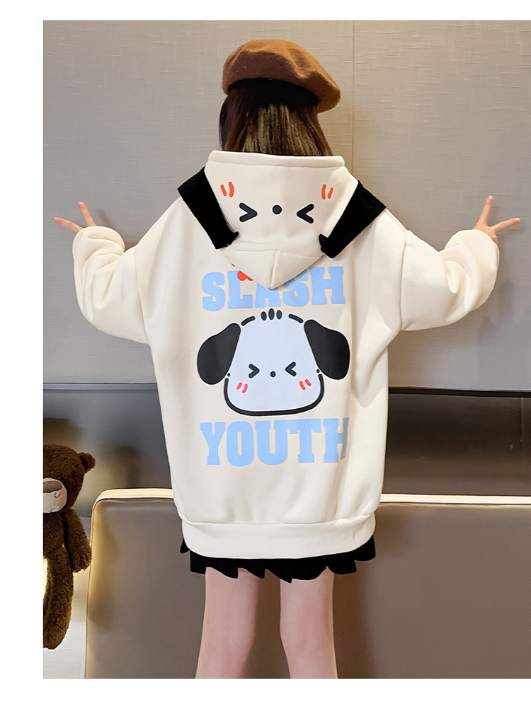 여아 가을 겨울 후드 재킷 새로운 스타일 중대형 어린이 벨벳 두꺼운 파차 개 긴 귀 긴팔 스웨트 셔츠스토어 가기