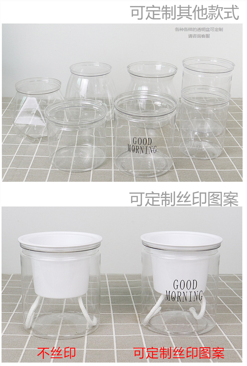 투명한 게으른 꽃 냄비 자동 흡수 라운드 플라스틱 수경 좋은 아침 냄비 창조적 인 다육 꽃 냄비 애완 동물 부는 병스토어 가기