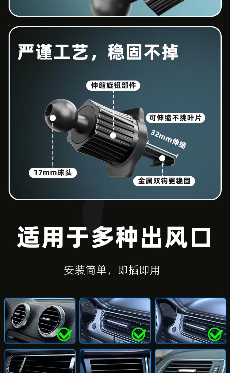 신형 차량용 휴대폰 거치대 자동차 에어벤트 범용 베이스 듀얼 훅 나선형 금속 클립 후크 도매