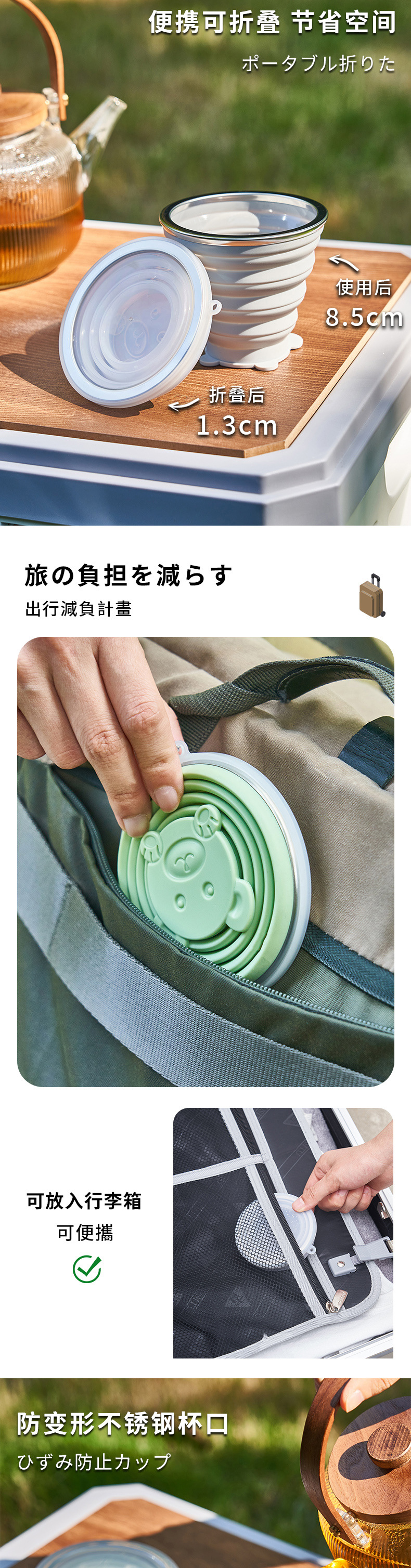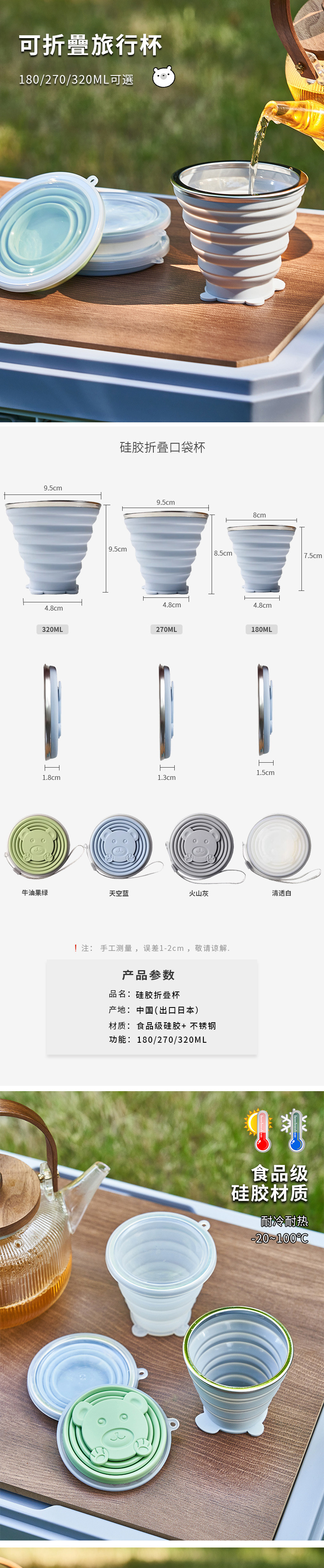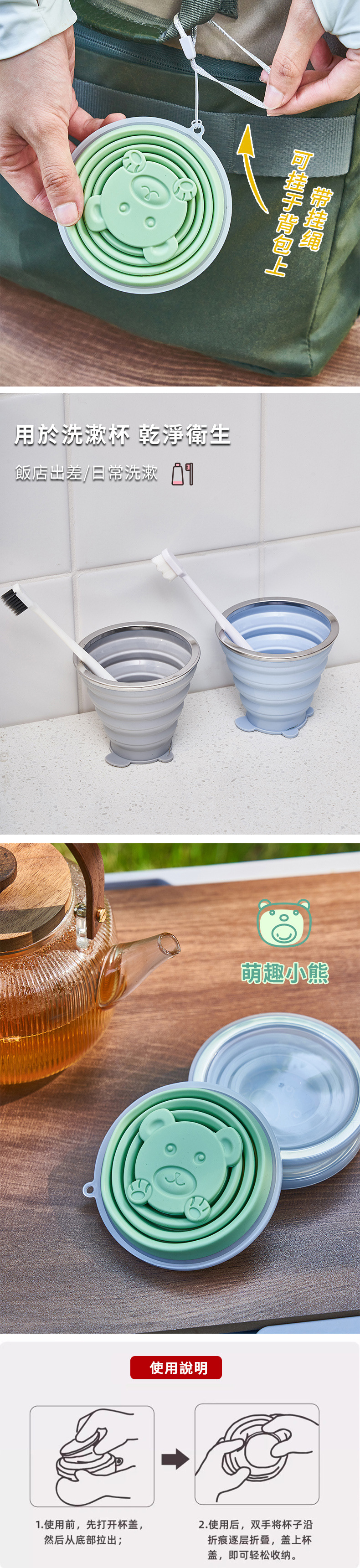 商品名称:硅胶卡通折叠杯 小号180ml  中号270ml   大号320ml