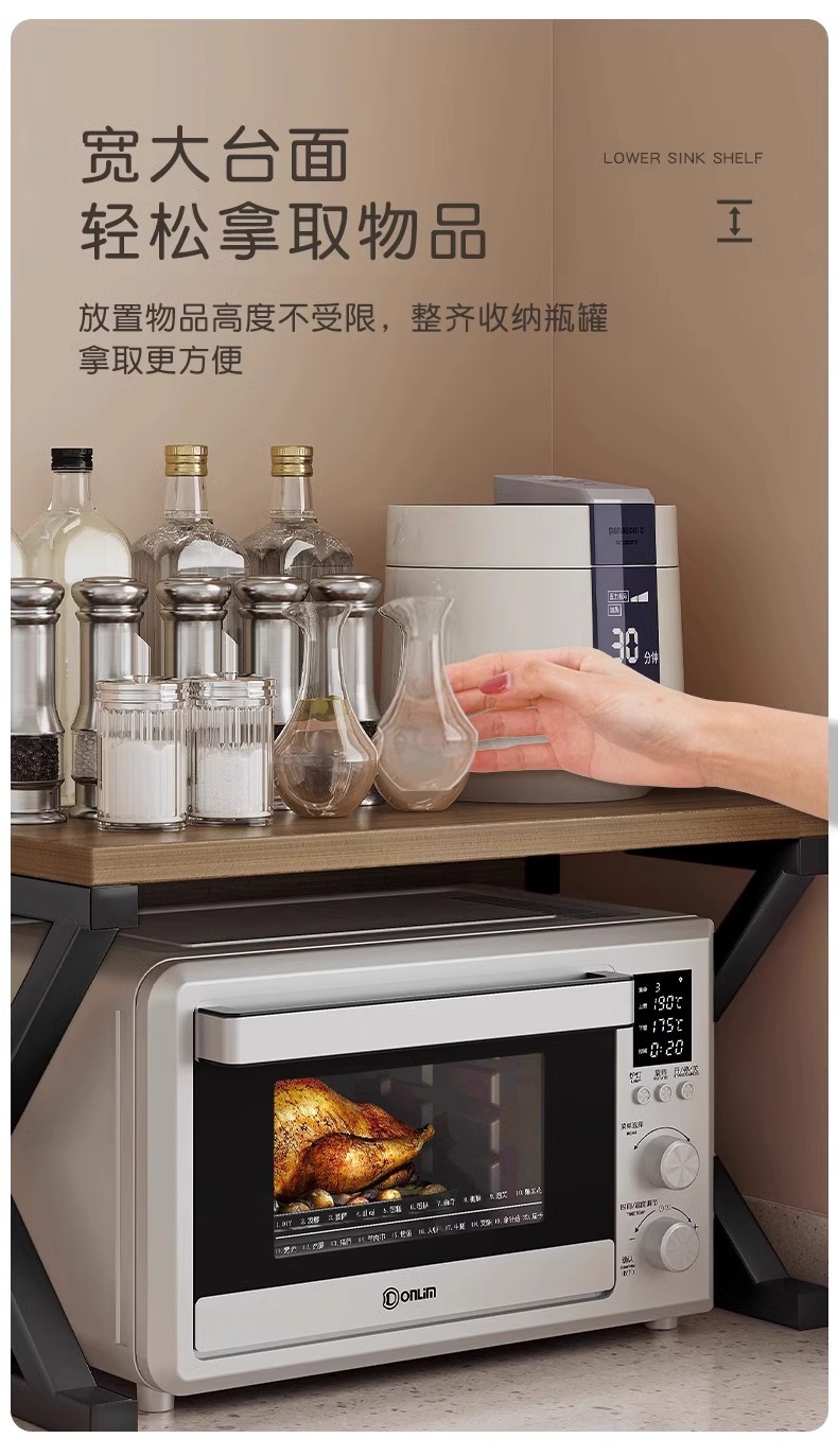 주방 스토리지 랙 카운터 탑 스토리지 랙 더블 레이어 오븐 전자 레인지 선반 데스크탑 스토리지 랙 가정용 용품스토어 가기
