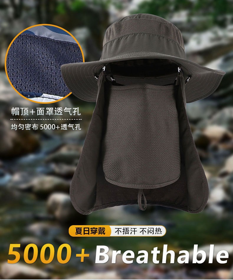남성용 자외선 차단 모자, 여름 자외선 차단 어부 모자, 야외 등산 및 낚시 모자, 얼굴을 가리는 탈착식 태양 모자