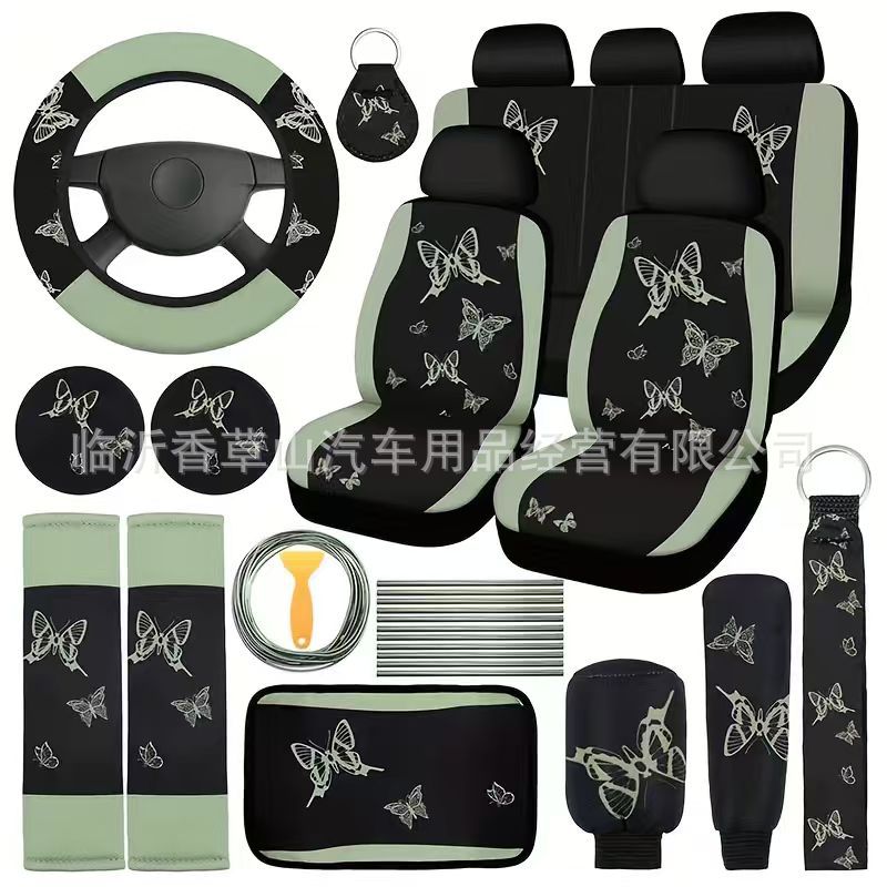국경을 넘는 자동차 용품 나비 자동차 핸들 커버 나비 시트 커버 인테리어 액세서리 나비 세트 41종 세트