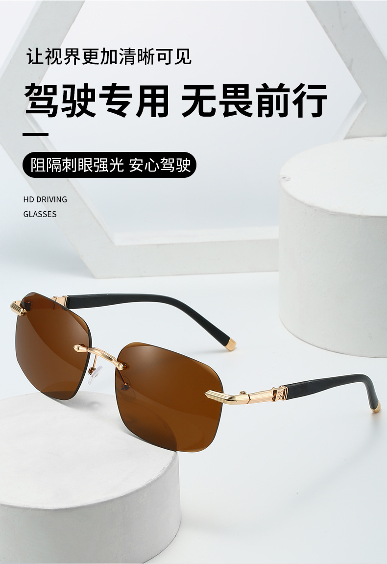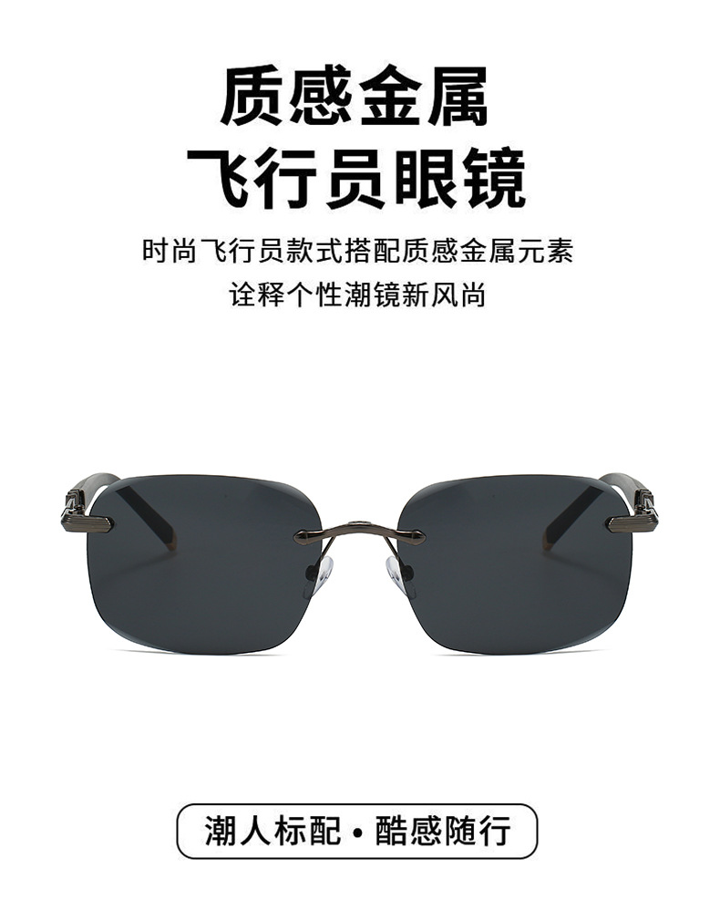 2024 트렌디한 새로운 남성용 무테 컷 에지 금속 선글라스 낚시 및 운전 특수 안경 스트리트 스타일 패션 선글라스