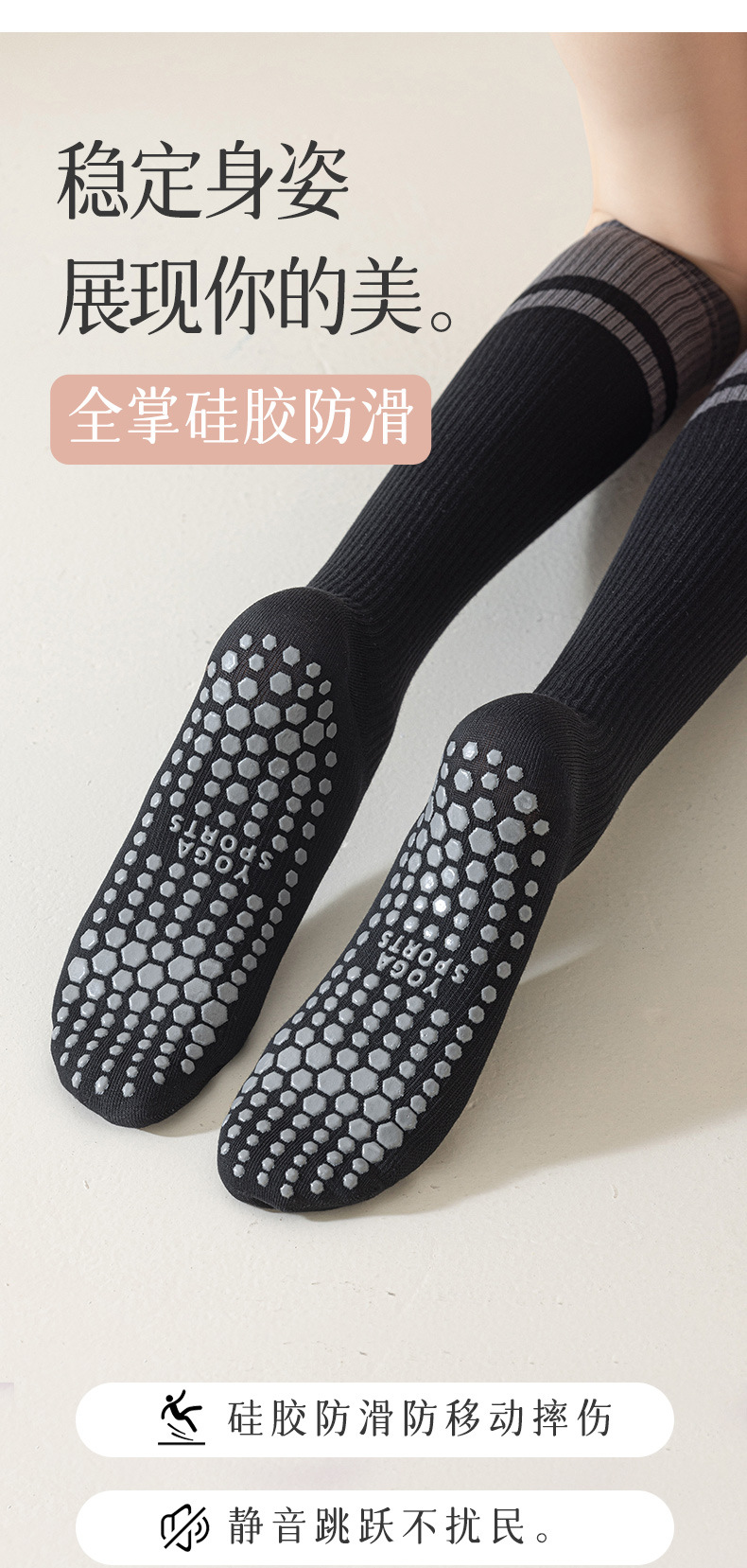 요가 양말 여성용 미끄럼 방지 중간 길이 전문 압박 종아리 필라테스 가을 겨울 줄넘기 달리기 운동 피트니스스토어 가기