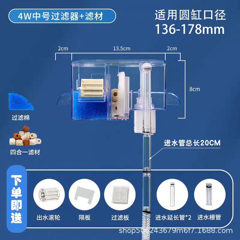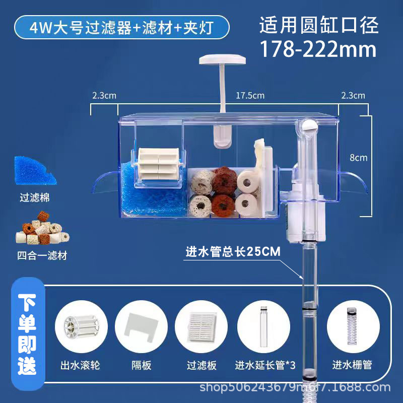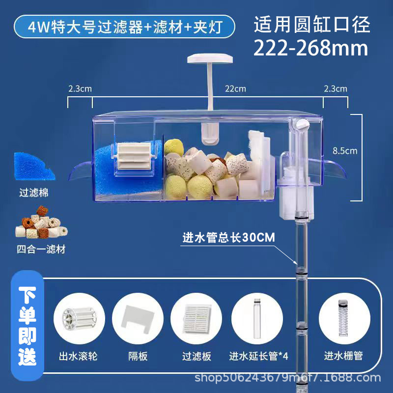 • 아크릴 중간 직경 28cm 실린더 + 초대형 808 필터 + 필터 재료 + 클램프 라이트