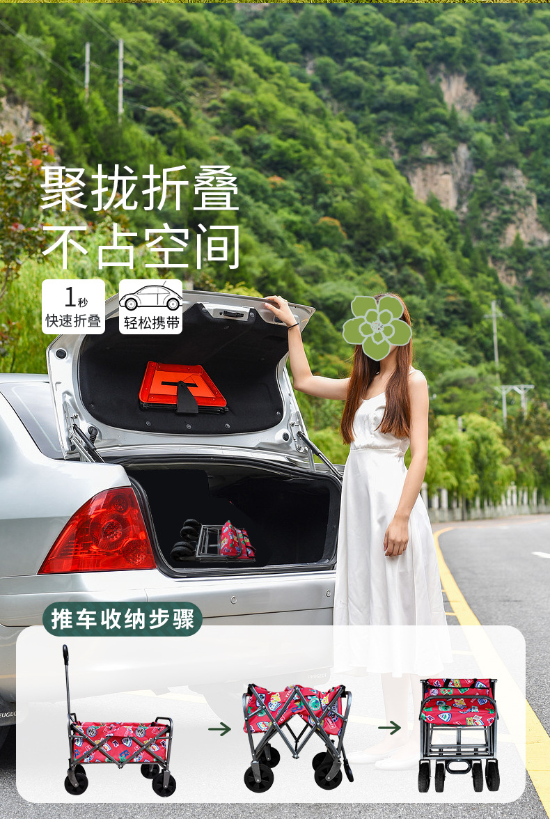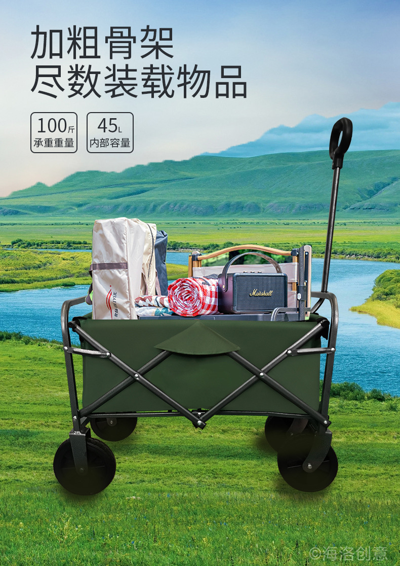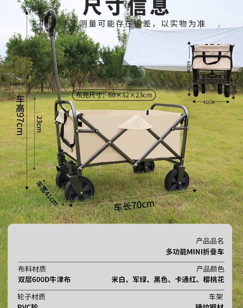 露营手推车营地拖车户外可折叠野营小拉车野餐车儿童可躺