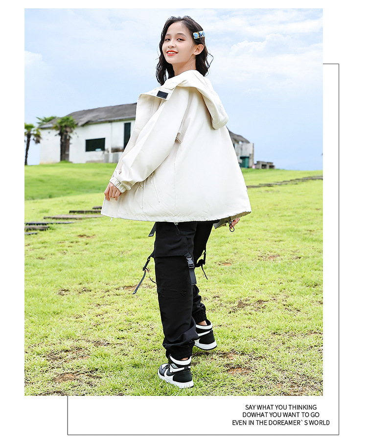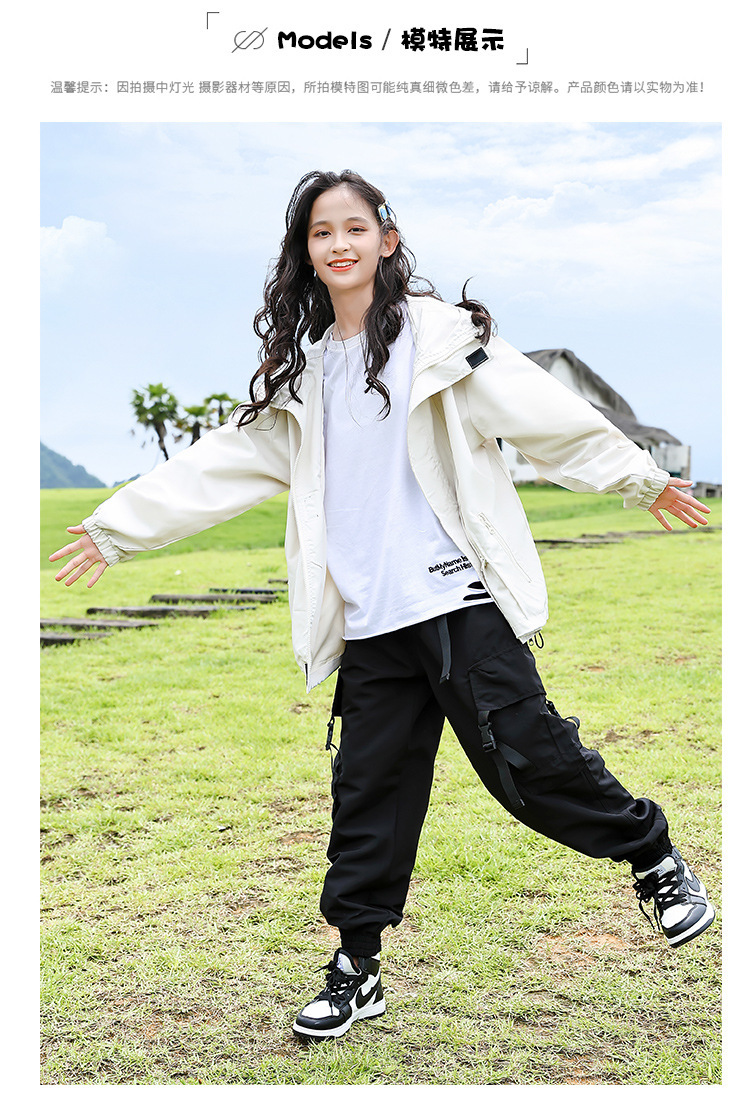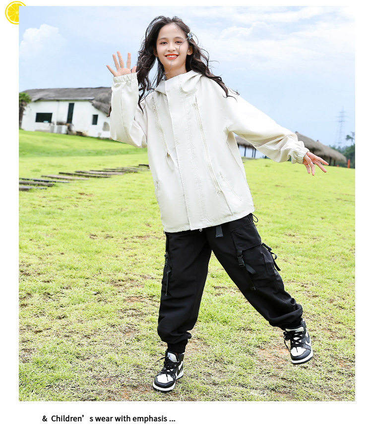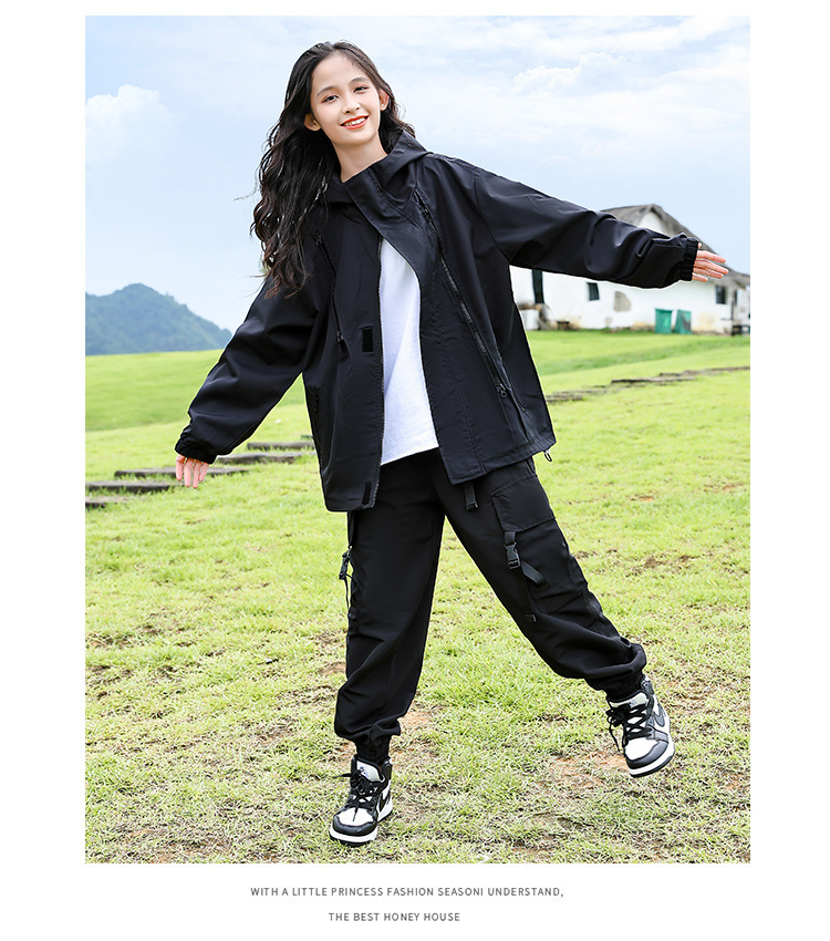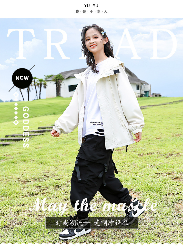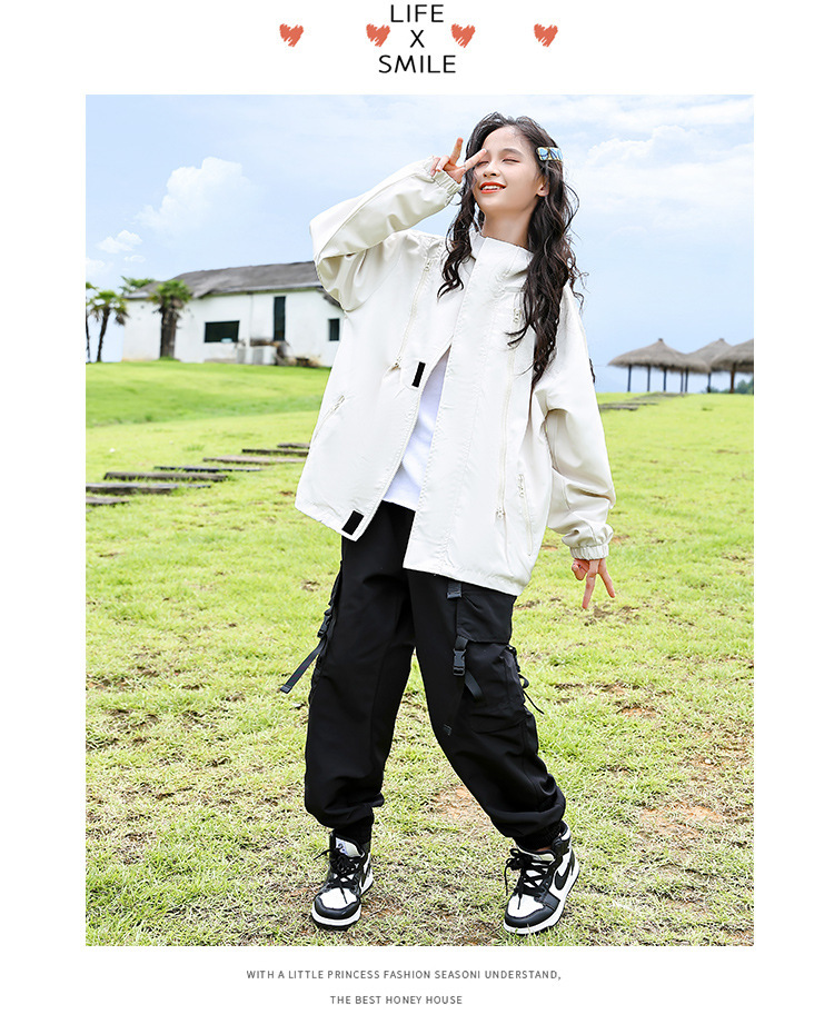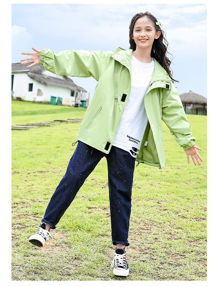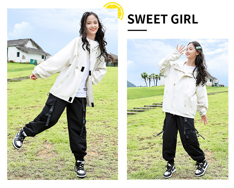 소녀 가을 작업복 코트 2024 새로운 어린이 서양식 스포츠 레저 코트 큰 어린이 후드 소박한 코트