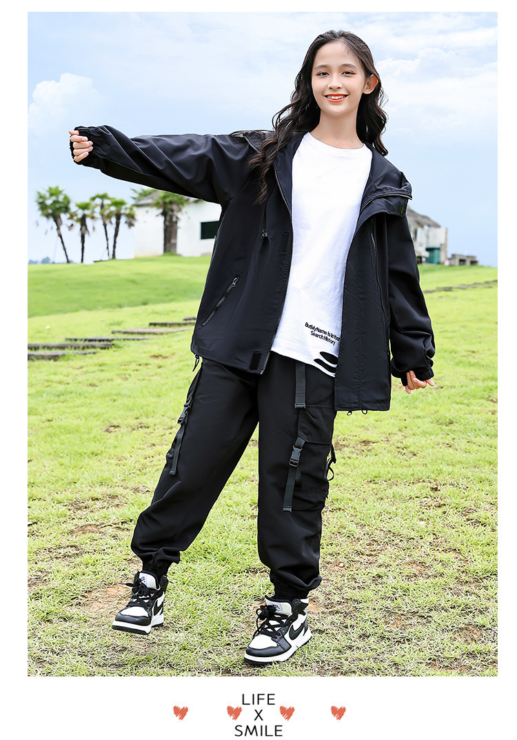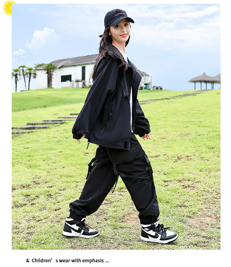 소녀 가을 작업복 코트 2024 새로운 어린이 서양식 스포츠 레저 코트 큰 어린이 후드 소박한 코트스토어 가기