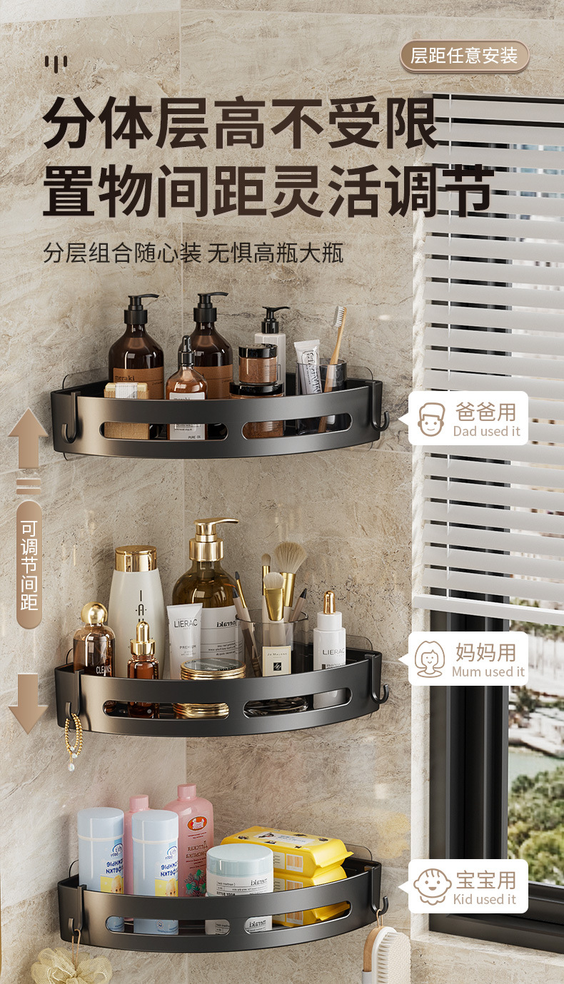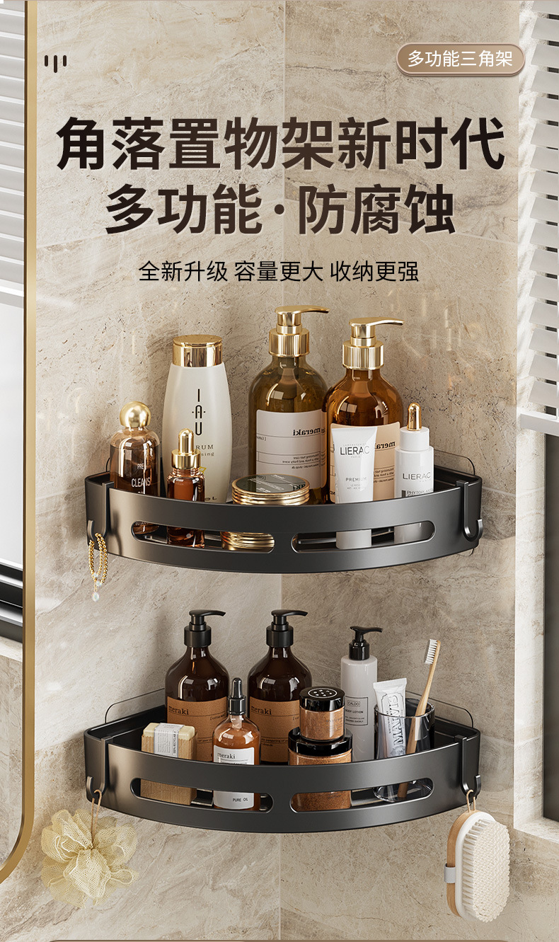 국경 간 다기능 샤워 보관 랙 화장실 비 천공 벽걸이 화장실 보관 삼각형 랙스토어 가기